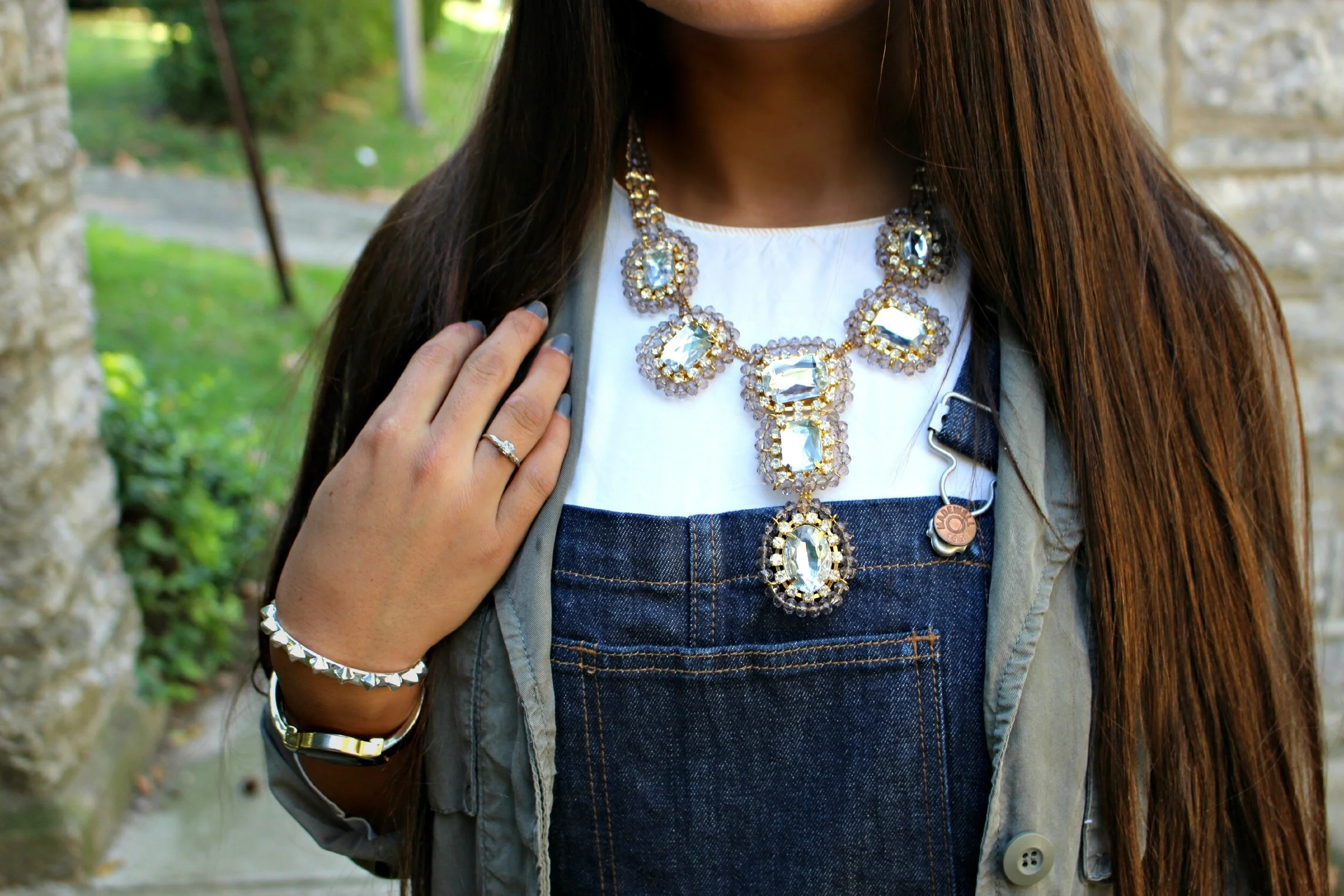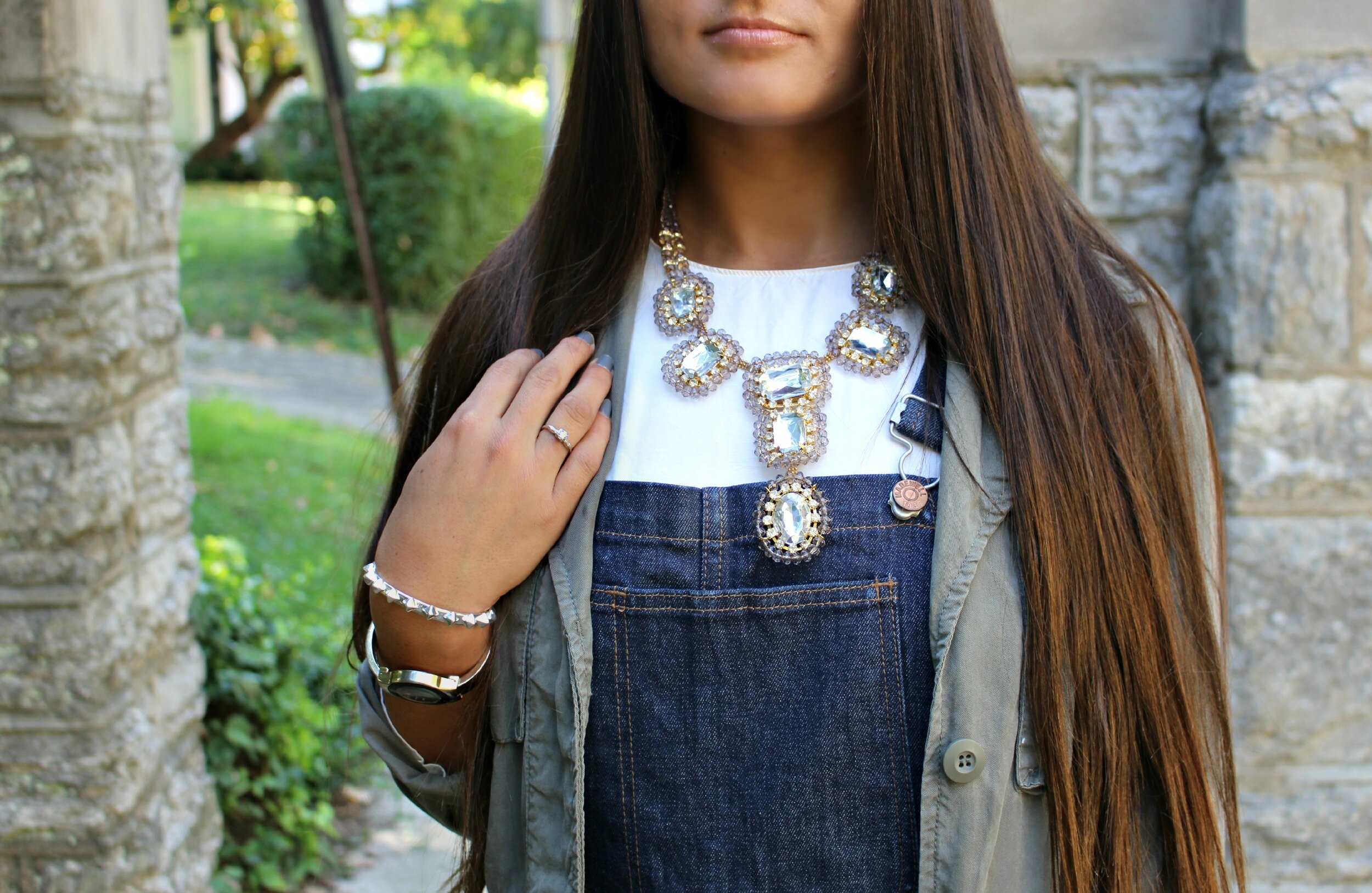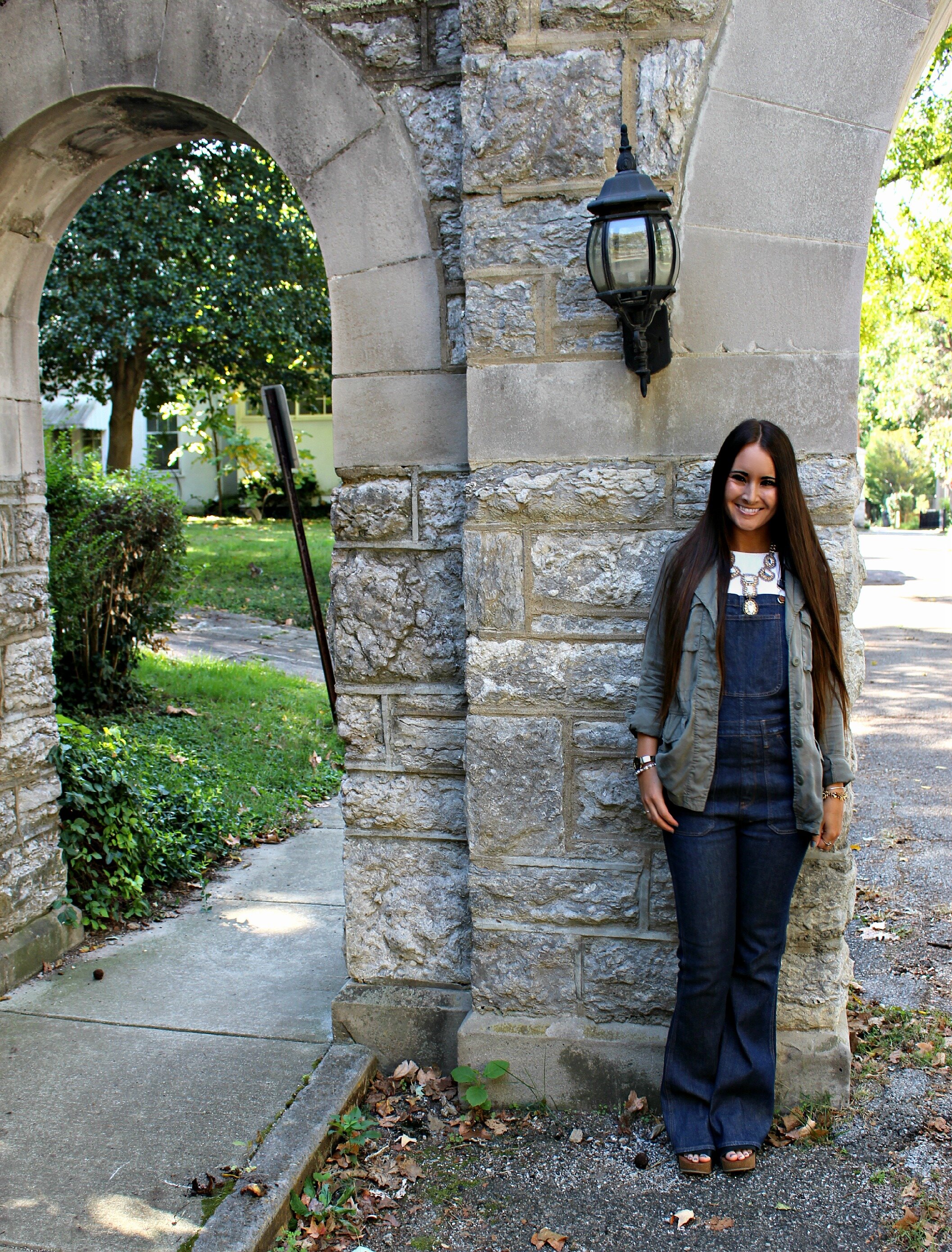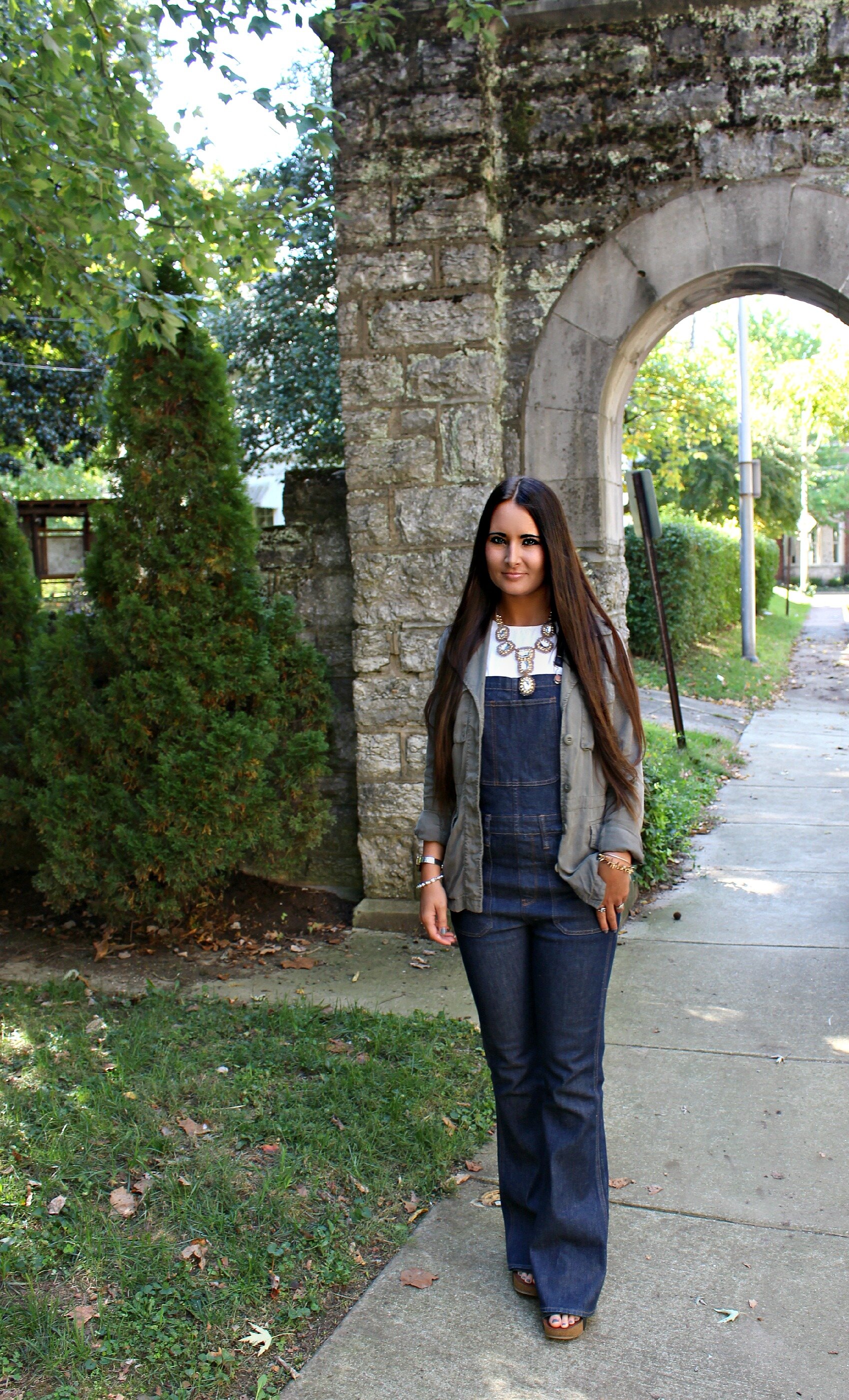 It's official, overalls are my new obsession for fall. Thanks to a tip from one of my friends I ordered these new "flea market flare" overalls from Madewell. I haven't purchased any denim from Madewell before so I wasn't sure what to expect, but I am thrilled with the fit! They look like authentic 70's flared overalls with a true high-waist cut (which is a major plus for me). I'm tempted to order some more jeans from them now that I have a better idea of how good they fit and what wonderful quality they are! I paired them with a classic white, long-sleeved boxy blouse underneath and a worn-in utility jacket on top. If you don't have a utility jacket it's a must-have light-weight jacket for fall layering and you will find yourself wearing it with just about everything! This one is several years old but still one of my most worn pieces year after year! I added some chunky wedges and a statement necklace to dress up the look a little! I can't wait to try these overalls with different outfits- what do you think I should pair them with next?