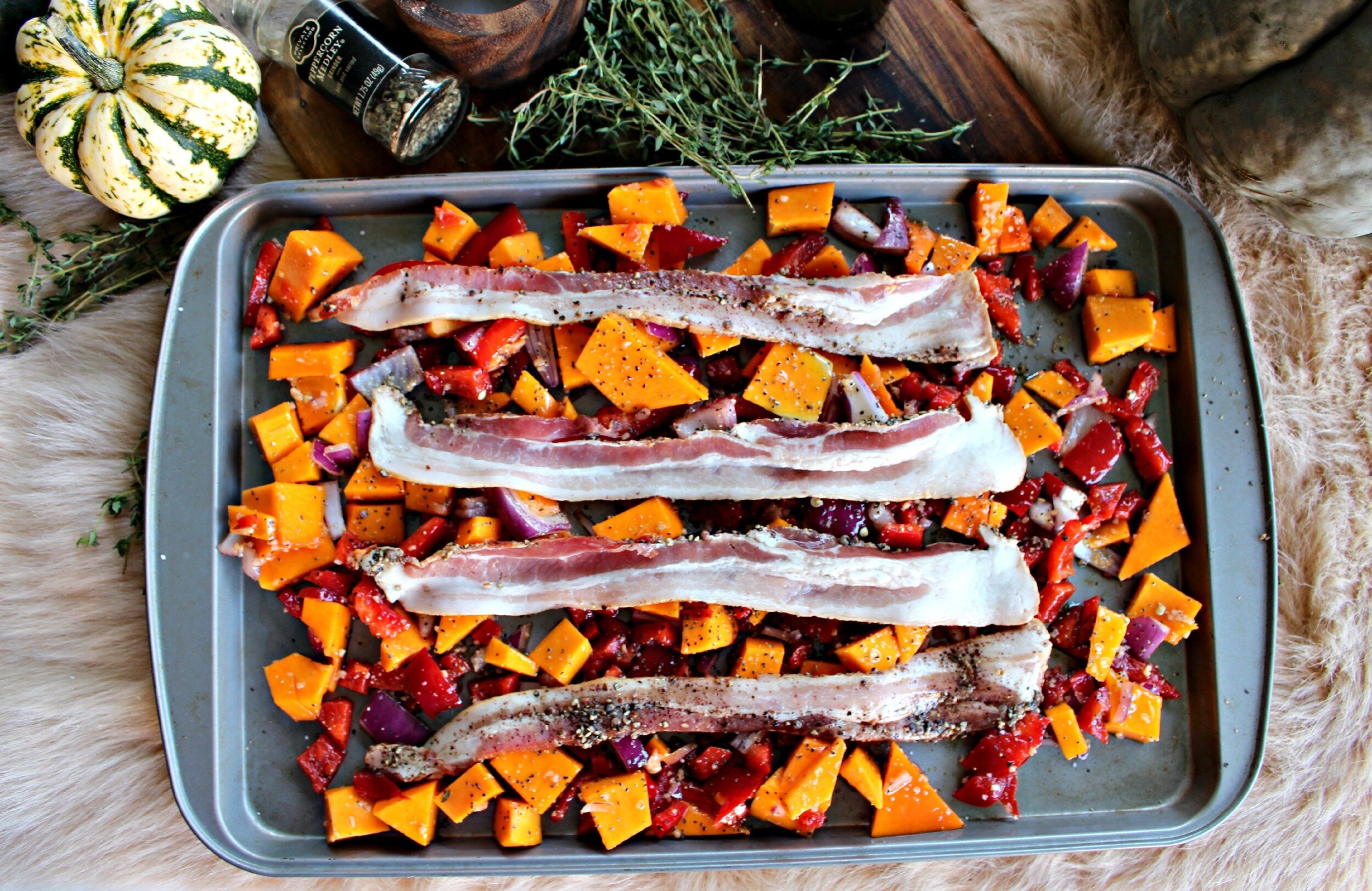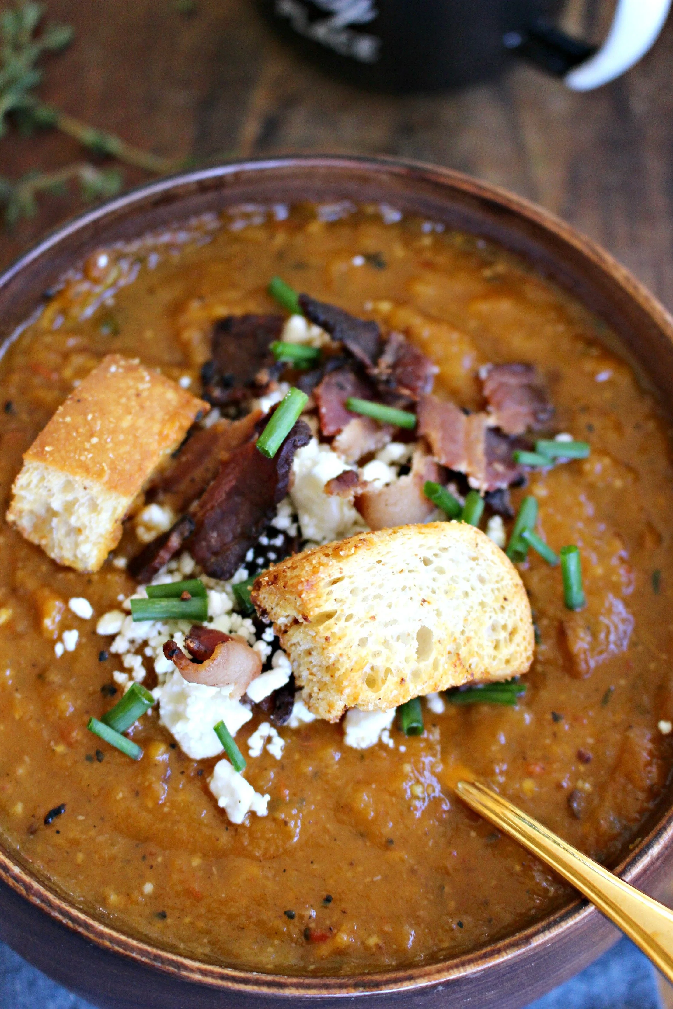 Roasted Butternut Squash, Red Pepper, + Bacon Soup