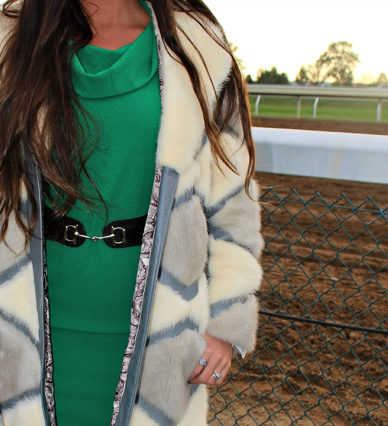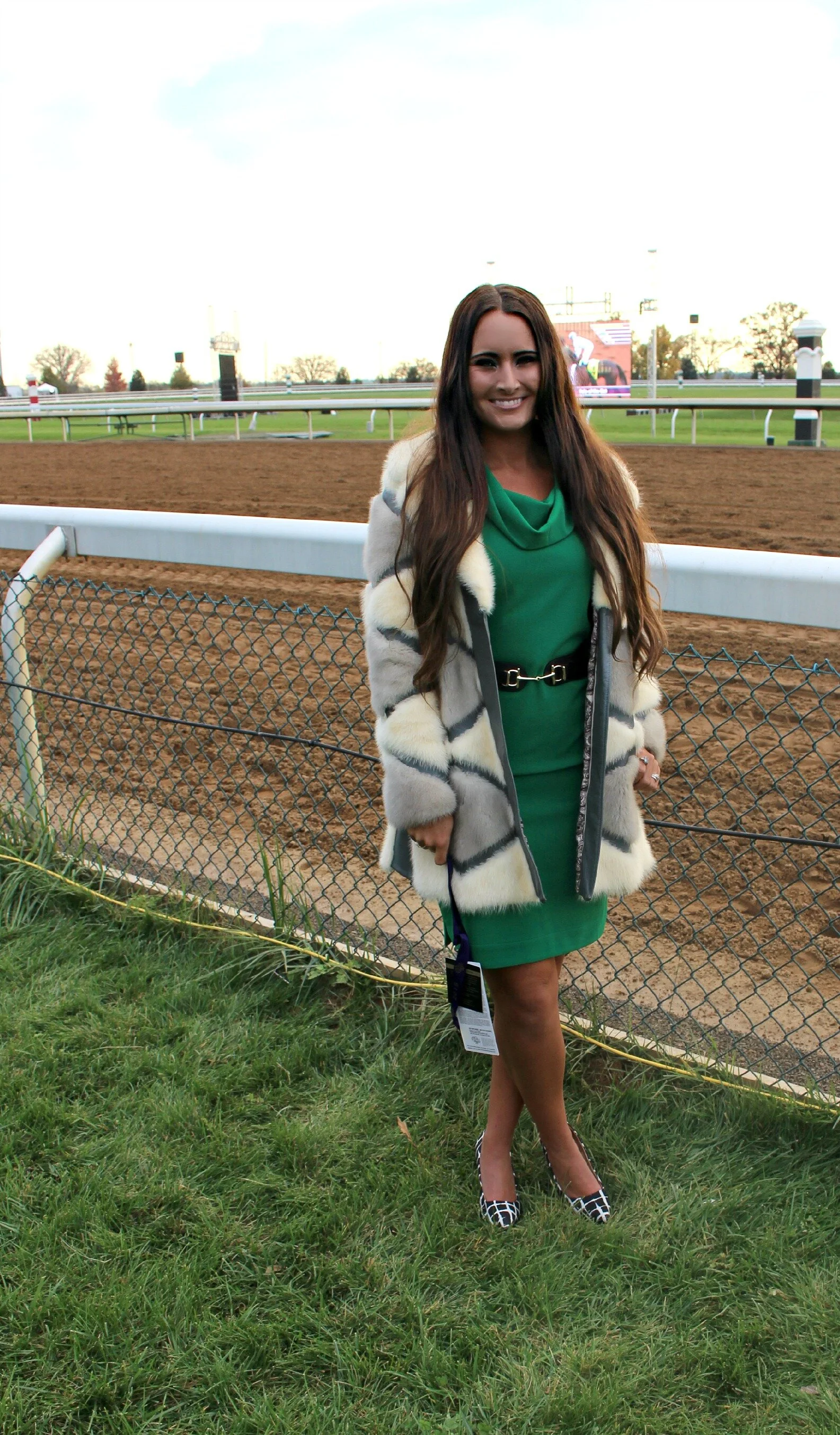 This weekend one was of the most exciting and historic Lexington has seen in a long time! I was thrilled to have the opportunity to attend the first day of racing of the Breeder's Cup hosted at Lexington's own Keeneland Racetrack. Of course the most exciting part of the races for me is the fashion! There is an old-fashioned, lady-like flair to race-day fashion that I just love, and everyone really goes all out with their outfits. I loved the bold color of this kelly green dress and the classic, simple cut. I added the horse-bit belt for a little equestrian touch and the shoes for a pop of print (they are from Target's latest collaboration and I am LOVING all their plaids!). The coat is one of (way too) many vintage coats I have collected over the years and is a vintage mink with gray leather panels. Nothing adds a glamorous touch to a fall/winter outfit like a fabulous vintage coat, AND you can have an entire collection for the price of a single new coat! You never know where you will find one that just fits perfectly: grandma's closet, the local thrift store, a vintage shop, or even a garage sale! We had so much fun at the races and I hope that Lexington gets the opportunity to host this wonderful event again in the future!