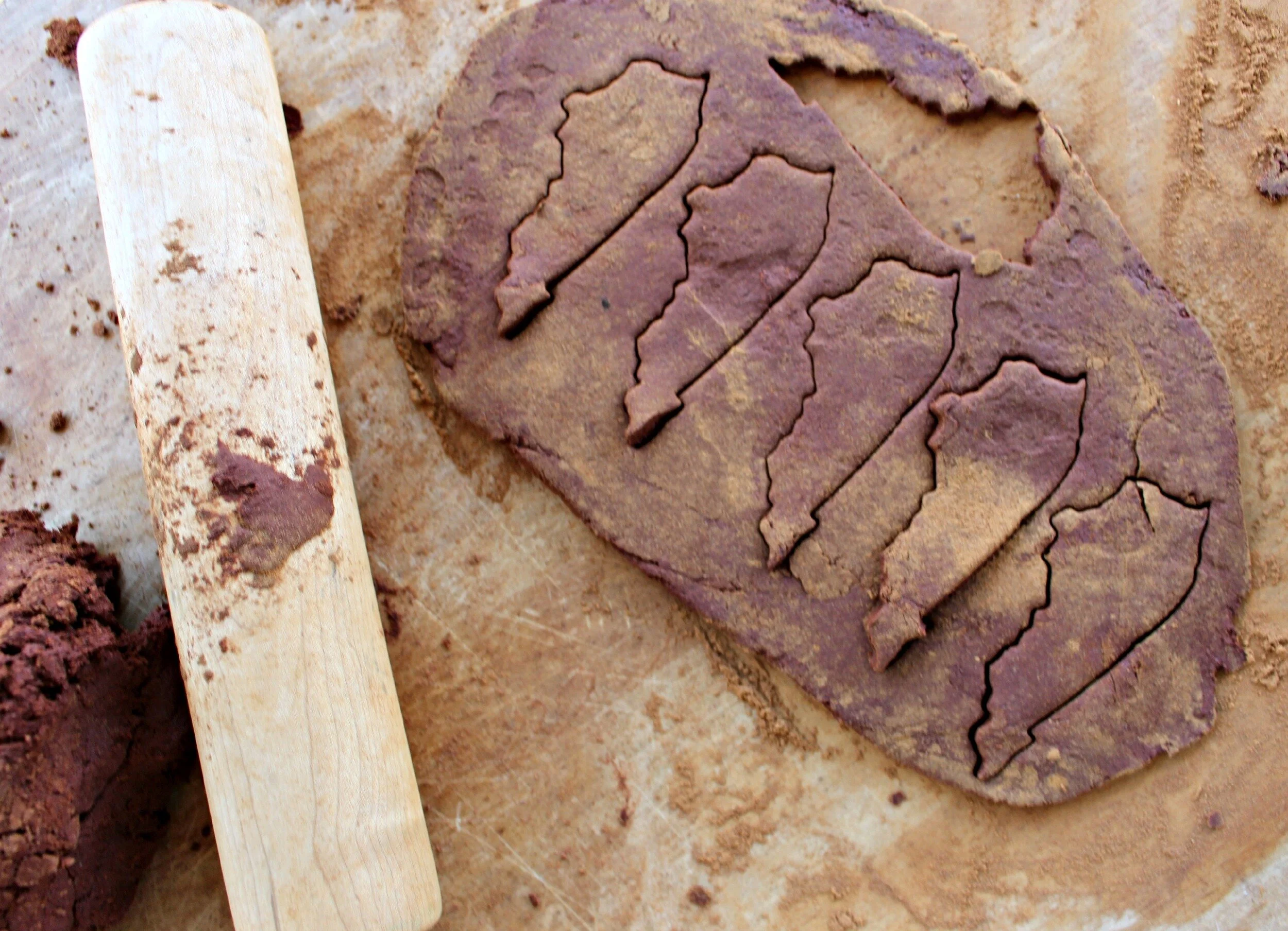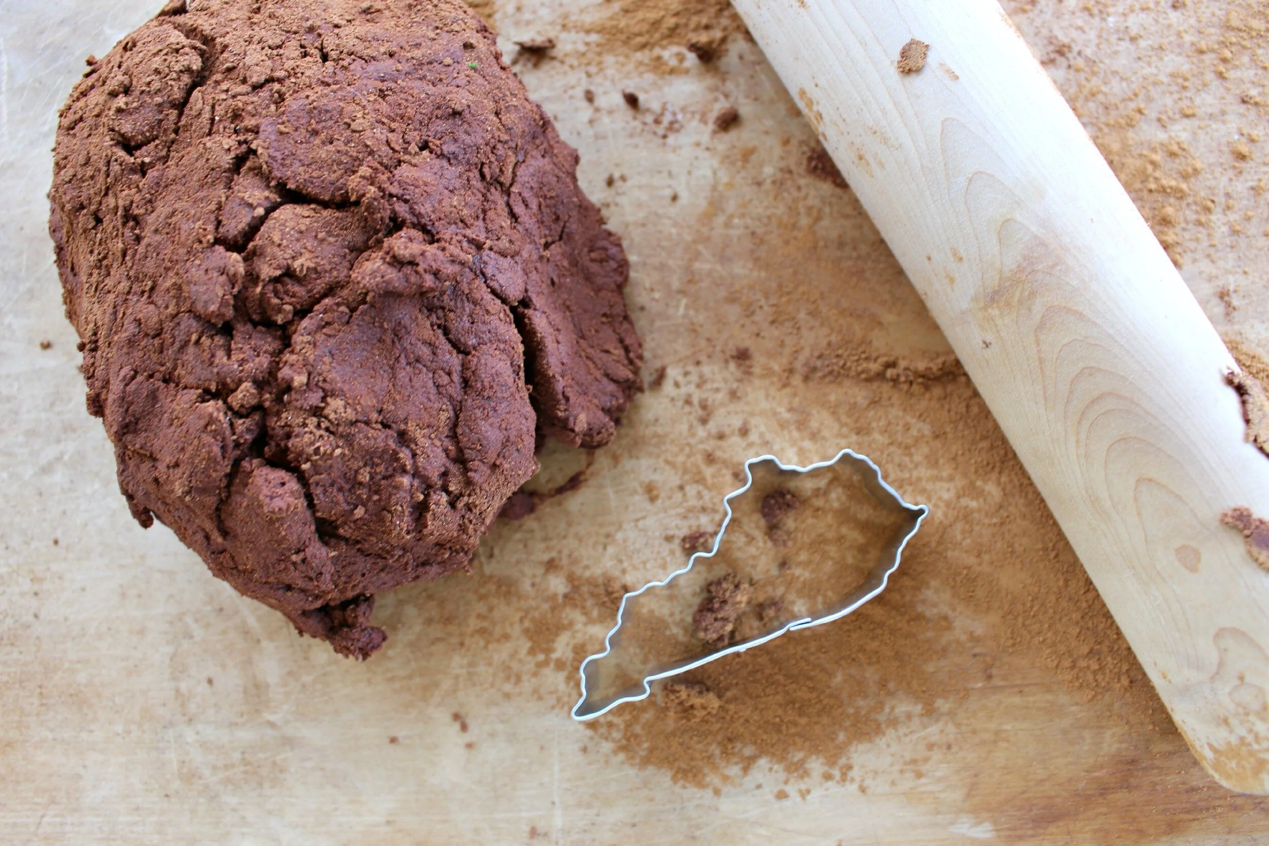 Use a cookie cutter to cut out as many shapes as you can on your rolled out portion of dough.