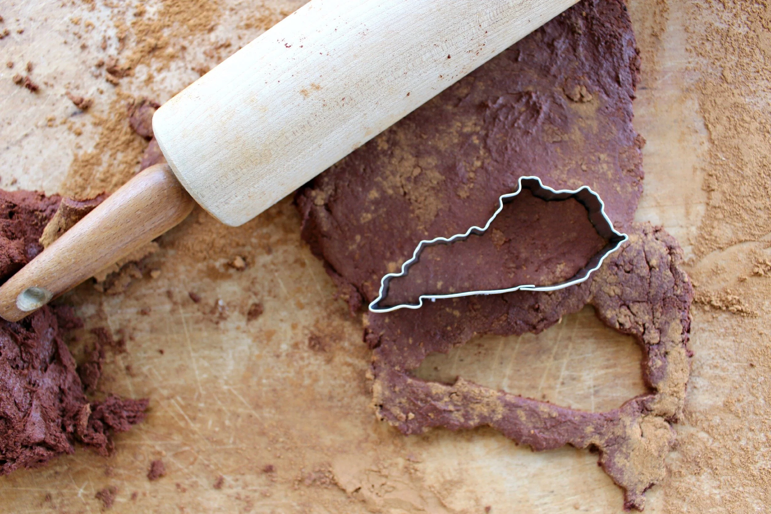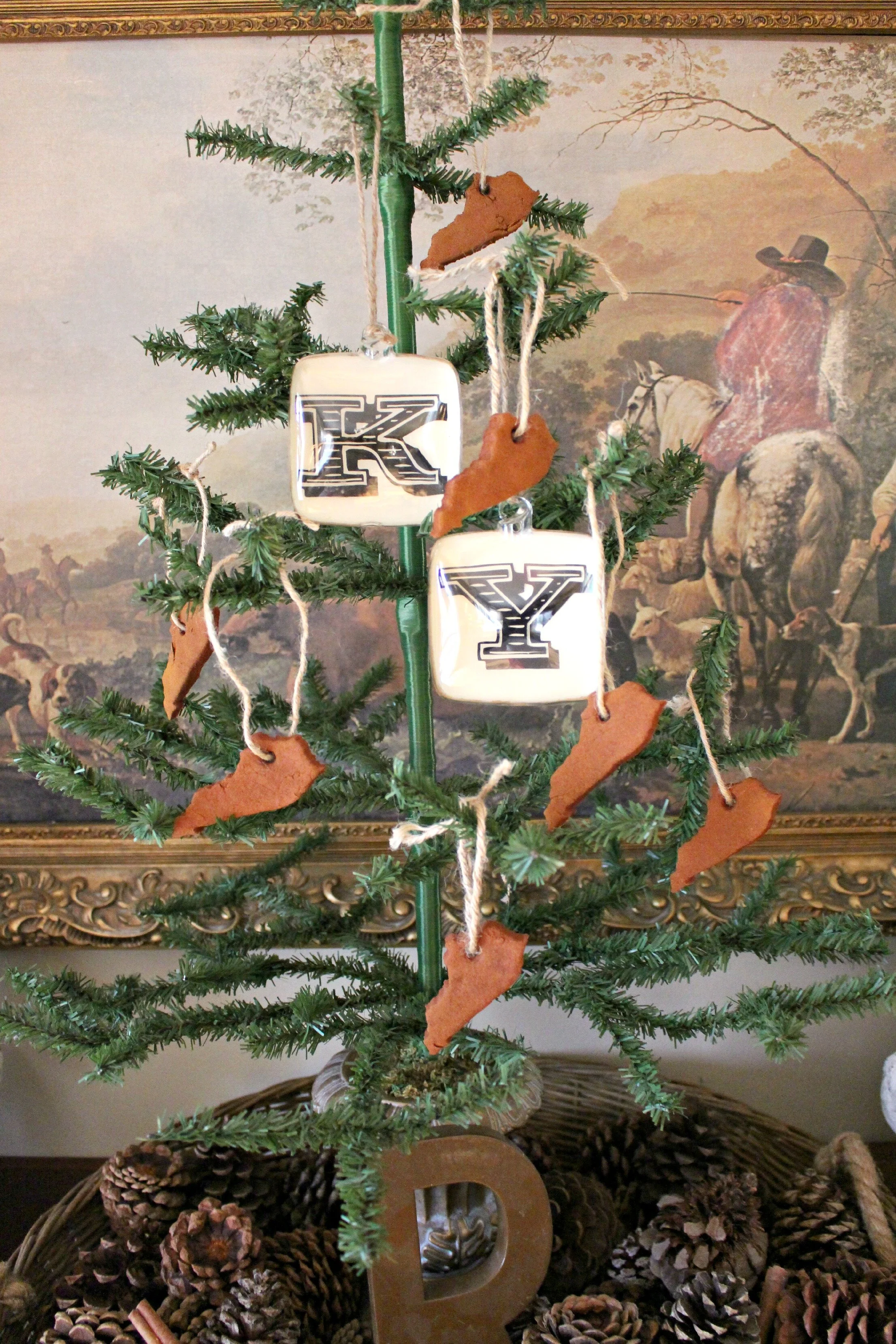 One of the best parts of Christmas are all the old-fashioned holiday traditions.  Homemade ornaments are reminiscent of a simpler time when fancy glass ornaments weren't available to the masses and many people used simple ingredients to create their own Christmas ornaments each year.  Stringing popcorn or cranberries, hanging pinecones or nuts, and even these simple cinnamon ornaments are all examples of homemade ornaments.  These cinnamon ornaments can be customized with any shape or size of cookie cutter and the recipe is so easy, making it a great activity for children of all ages.  I used our Kentucky cookie cutter for my ornaments and I love the way they turned out!