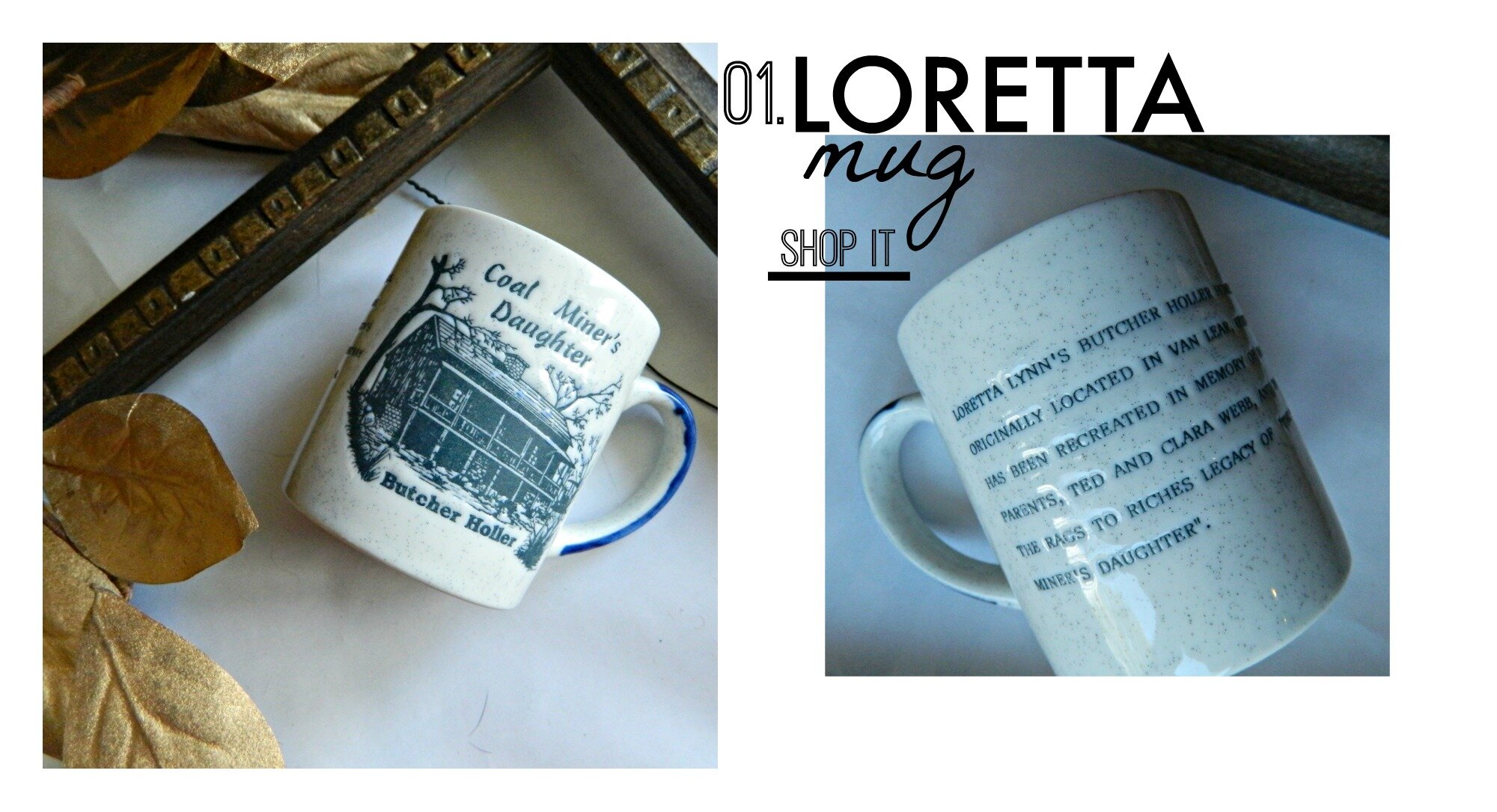 I just love Loretta Lynn and "Coal Miner's Daughter" is one of my all-time favorite movies, so when I spotted this vintage mug at an estate sale, I could hardly believe my eyes! This treasure is an authentic vintage souvenir from the 70s from Loretta Lynn's birthplace right here in Kentucky. A perfect gift for any Loretta lover- you can shop it now here.