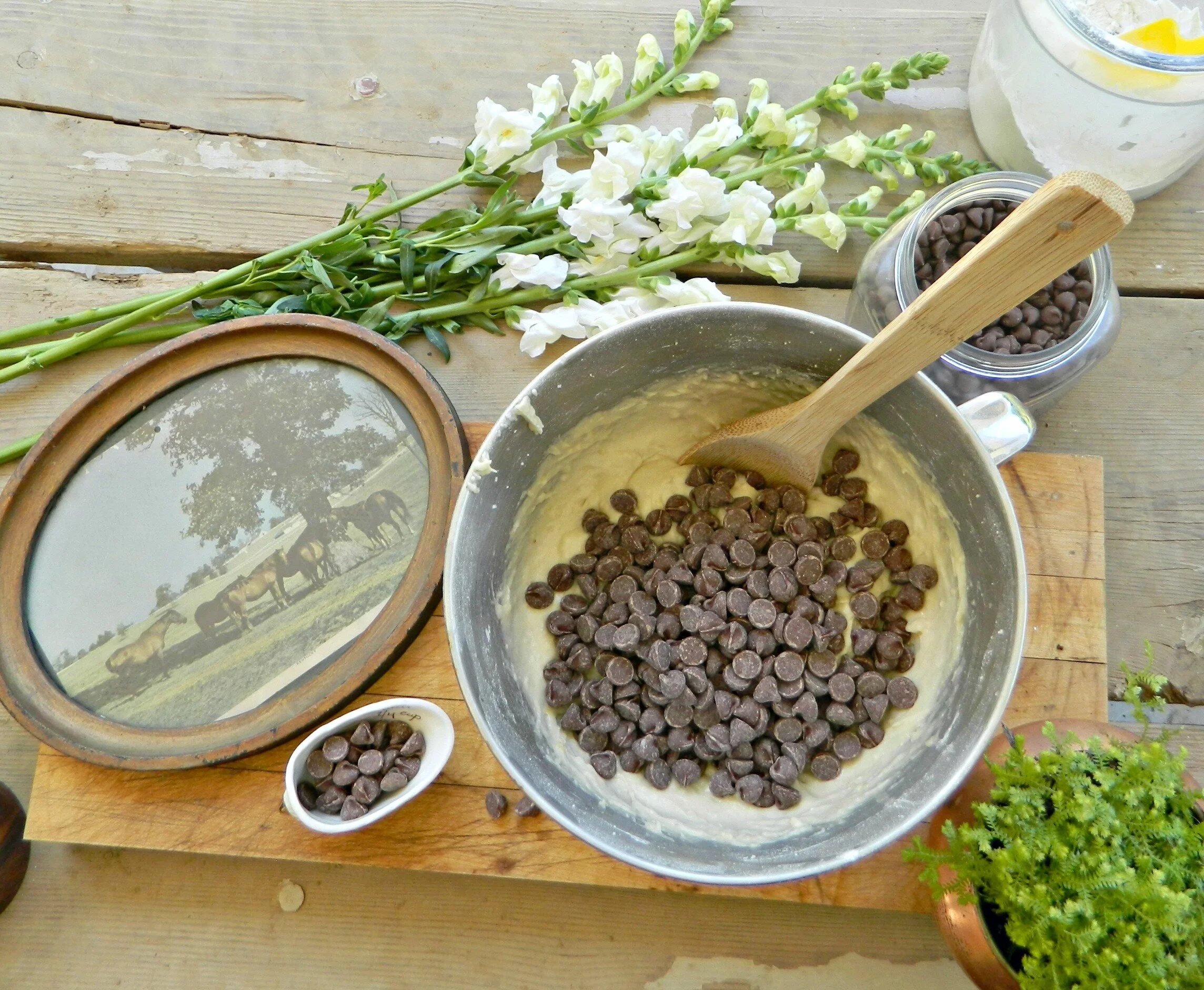 Remove your mixing bowl from your stand mixer and carefully fold in your chocolate chips with a spoon.