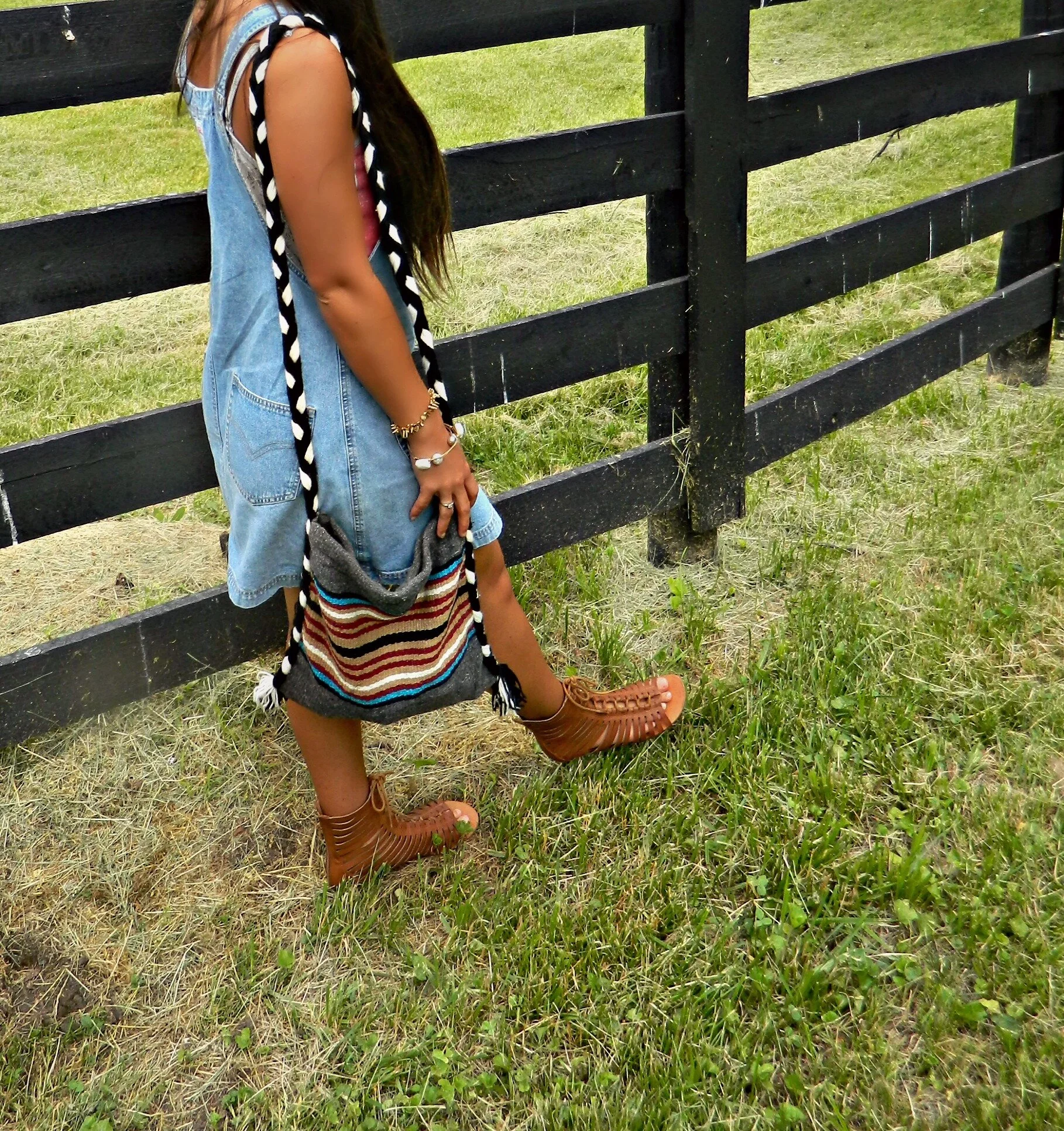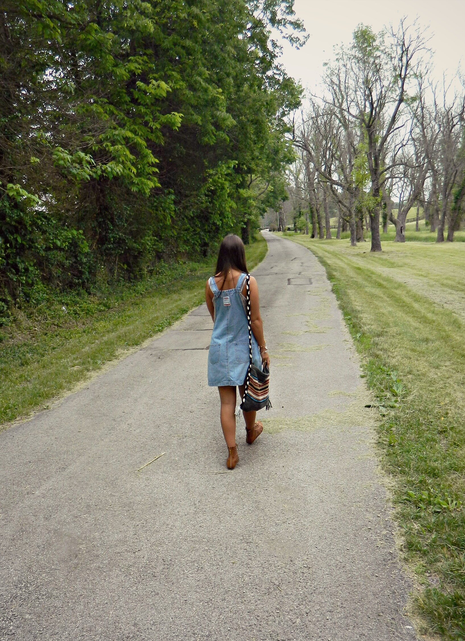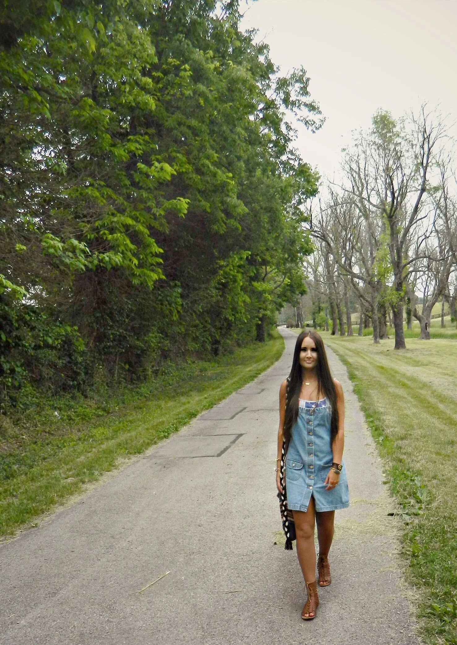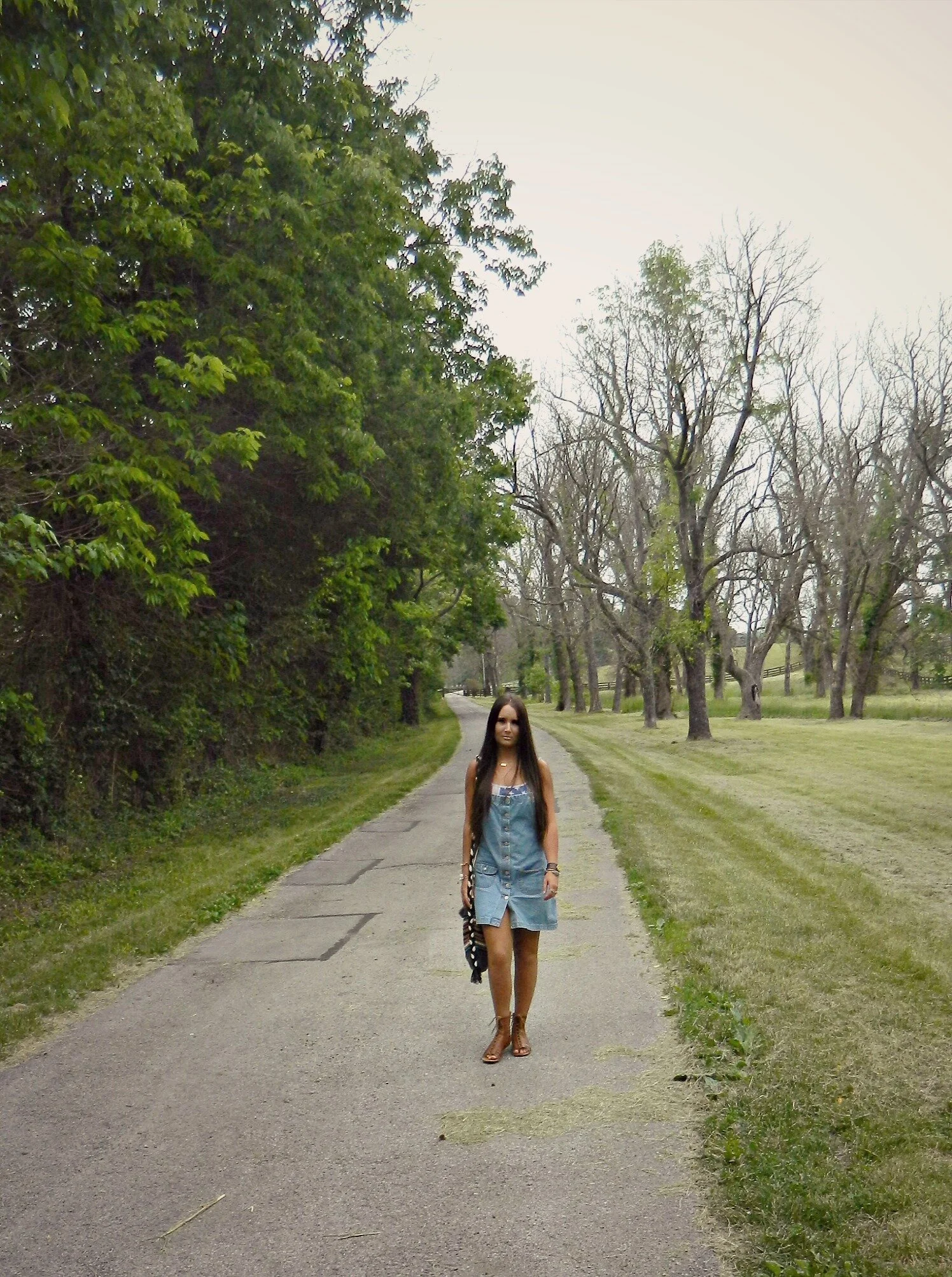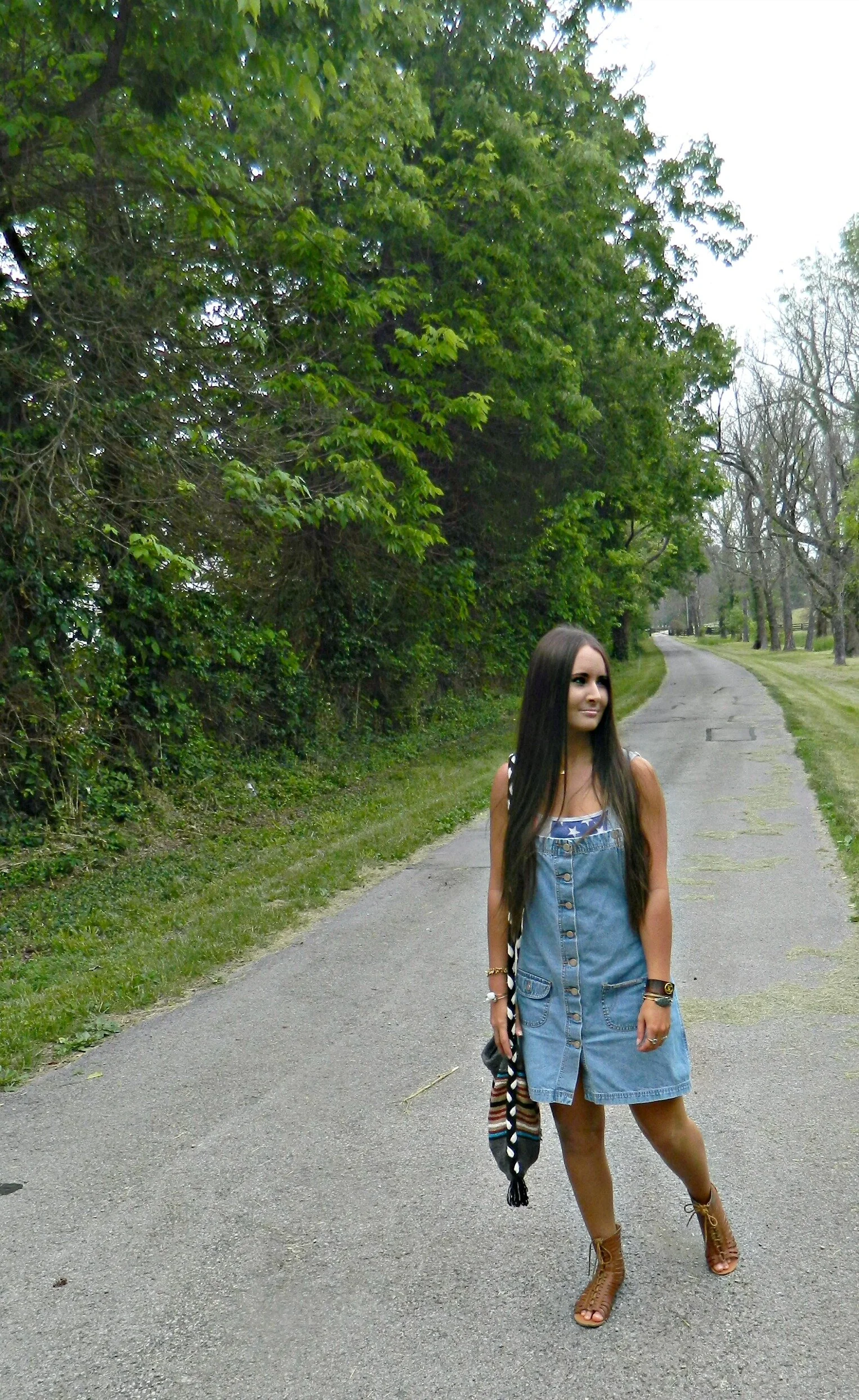 Vintage denim dress: Thrifted; American flag tank: Forever21; Lace-up sandals: TJMaxx; Pow-wow bag- Miss Molly Vintage; Jewels: Stella + Dot, Bourbon and Boweties