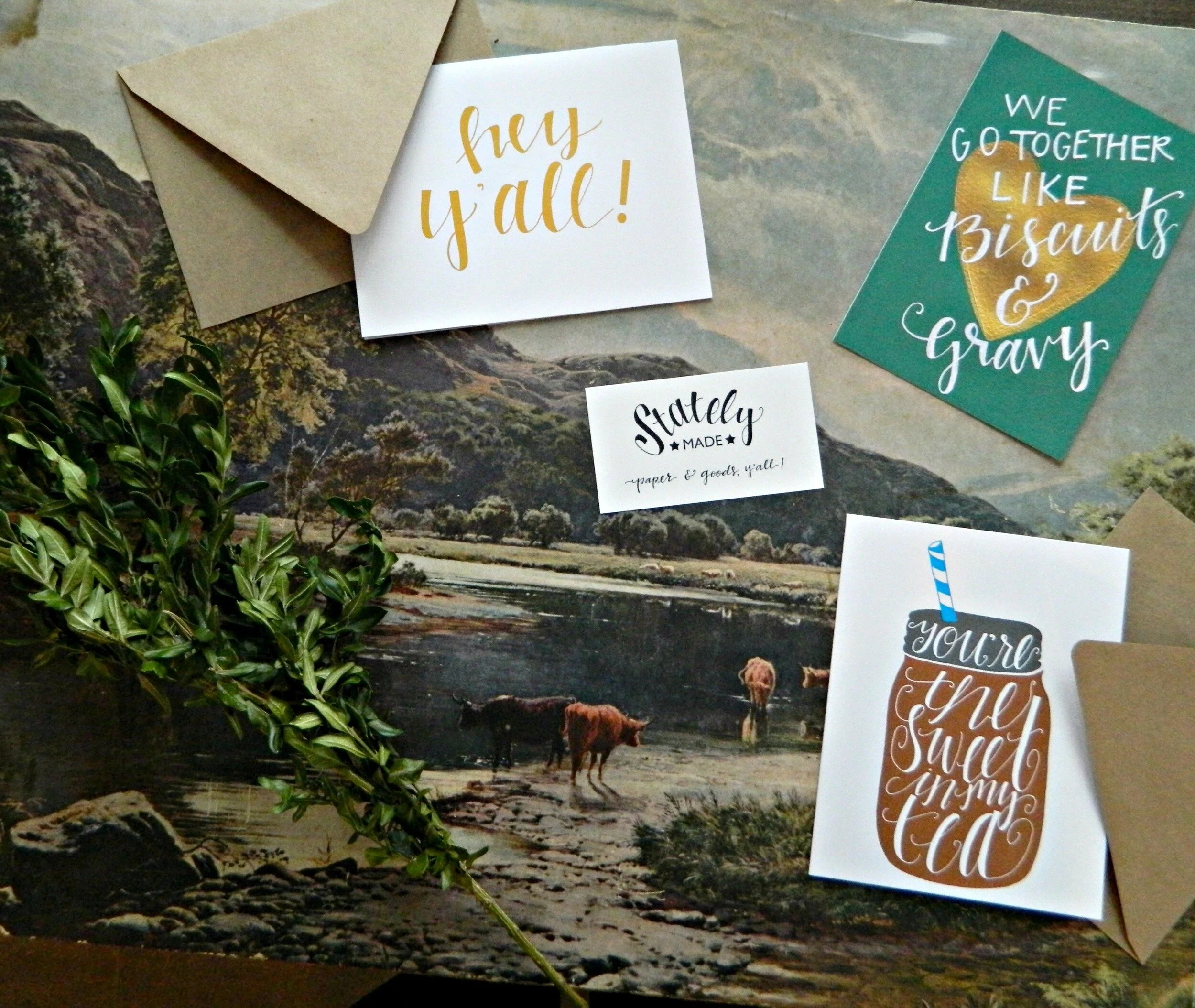 I just LOVE all our new greeting cards from Antiquaria, Amy Heitman, and Stately Made! These are all small businesses and artists that I discovered via Etsy, and I fell in love with each of their unique styles and kitschy, vintage looks! We now have a unique and adorable card for just about any occasion! Which one of our new cards is your favorite?
