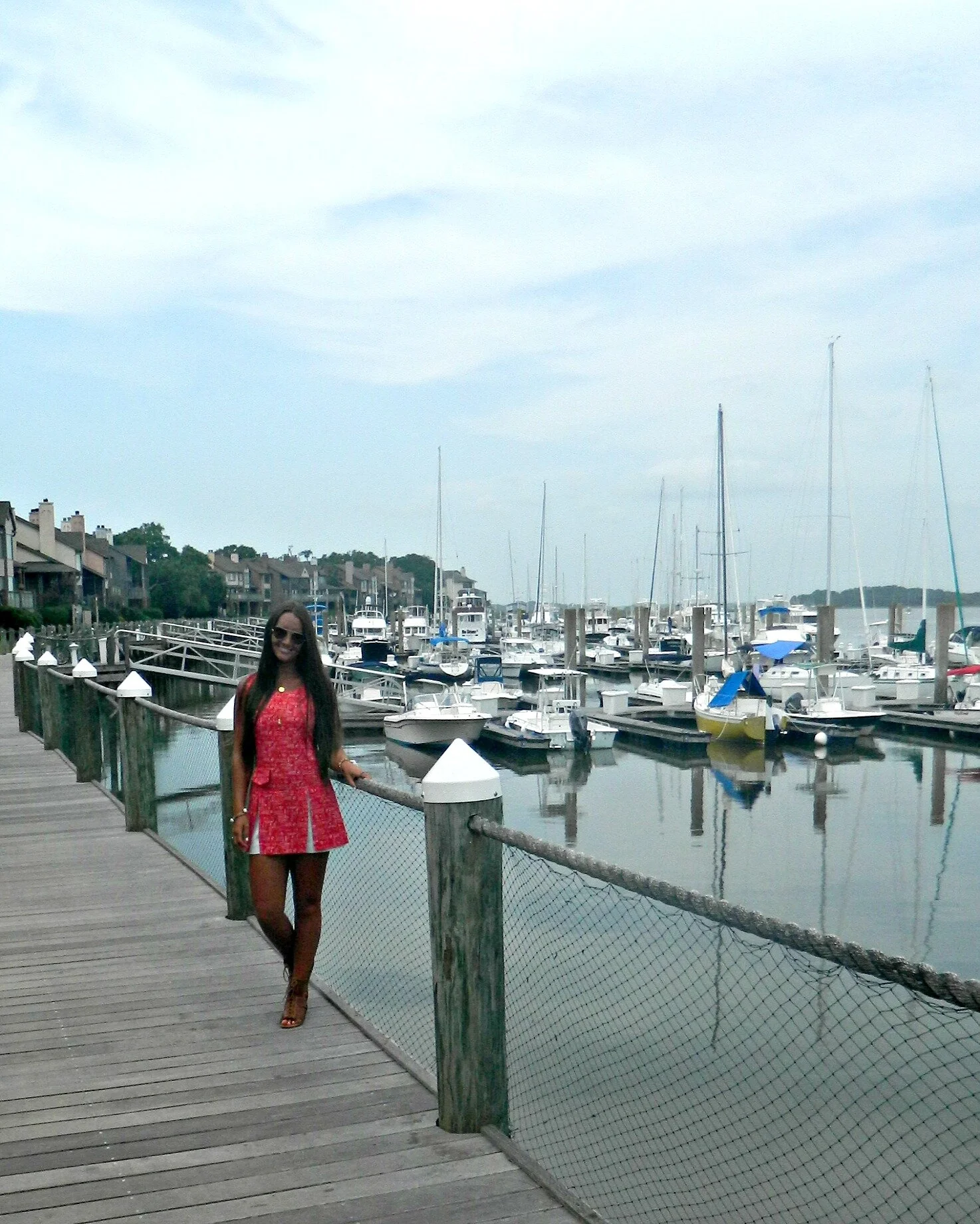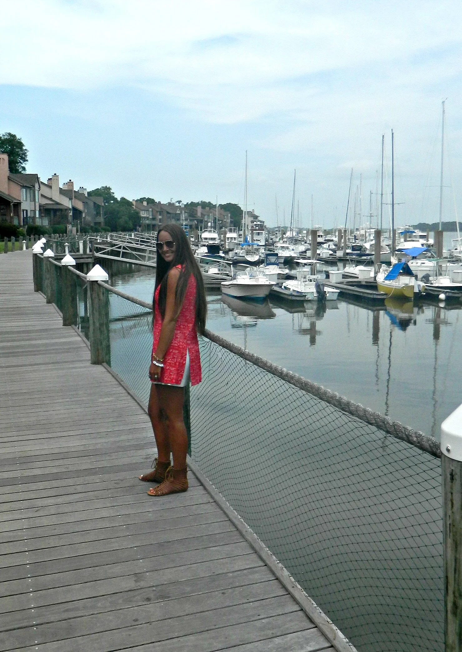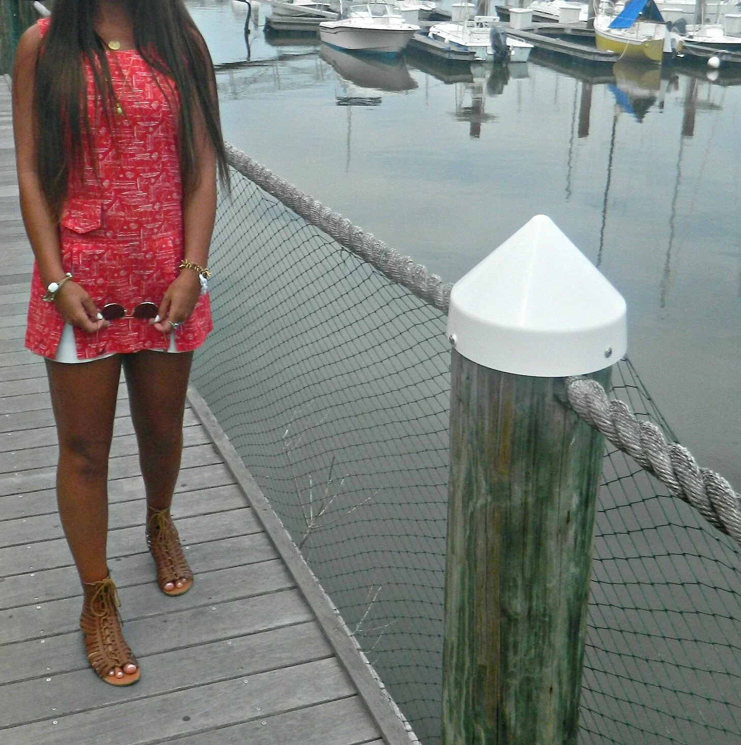 Nothing screams summertime like a cute nautical print! Nautical truly never goes out of style and has been a popular trend in just about every decade. When a spotted this adorable sailboat jumper years ago while working at Street Scene Vintage, I knew it was made for me! Thank goodness it fit perfectly and still is one of my favorite vintage pieces years later. It has a little pocket on the front and shorts underneath that are hidden by the split skirt (Hurry- there is even an identical one in blue now for sale on Etsy!). Rompers are one of my favorite styles to wear in the summer because they always have that vintage flair and are the perfect casual piece for everyday wear. I topped off the look with my favorite lace-up sandals and some layered necklaces: a sweet dainty, pineapple charm necklace from local Stella Bella boutique and my monogram charm necklace from Stella and Dot.