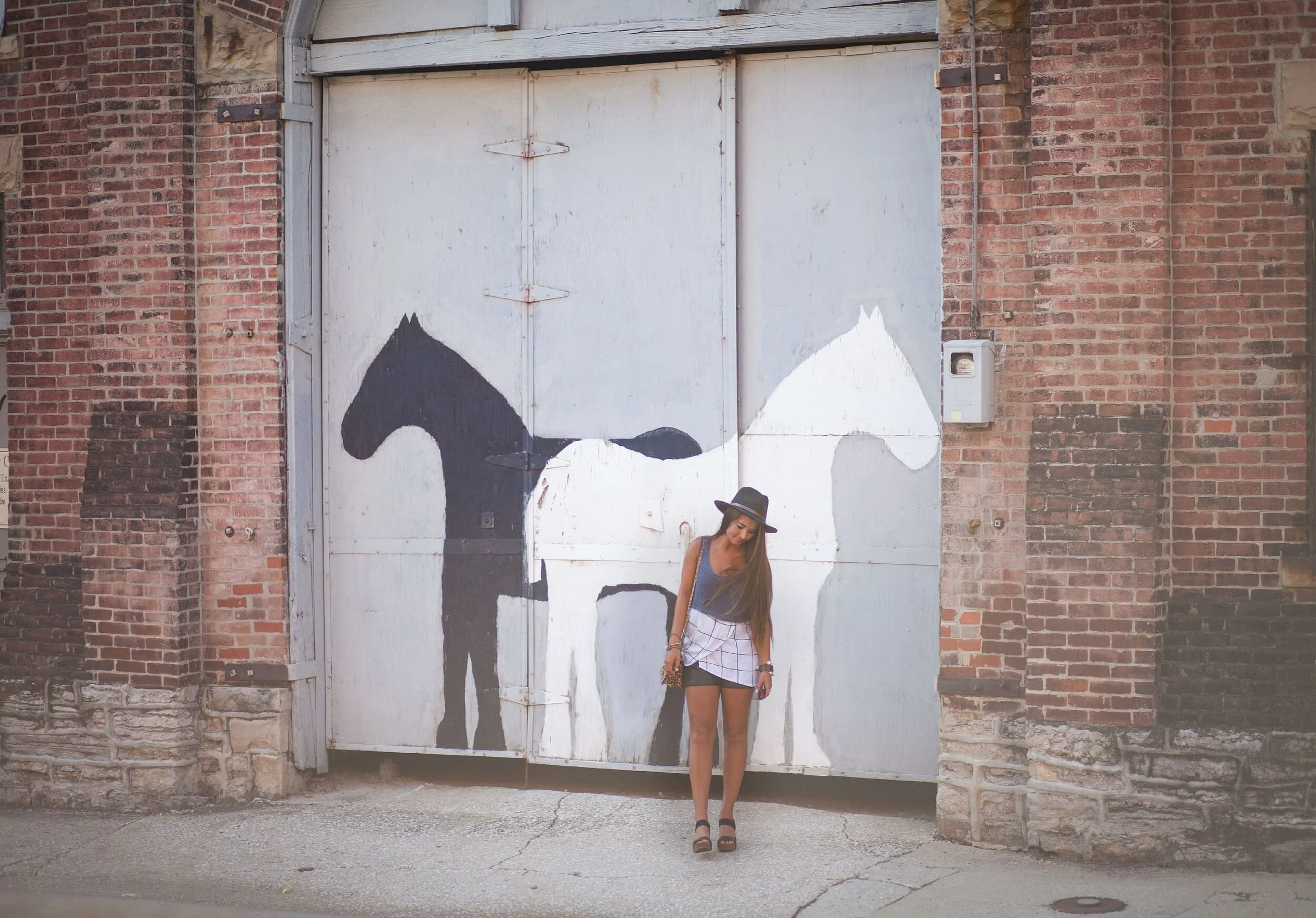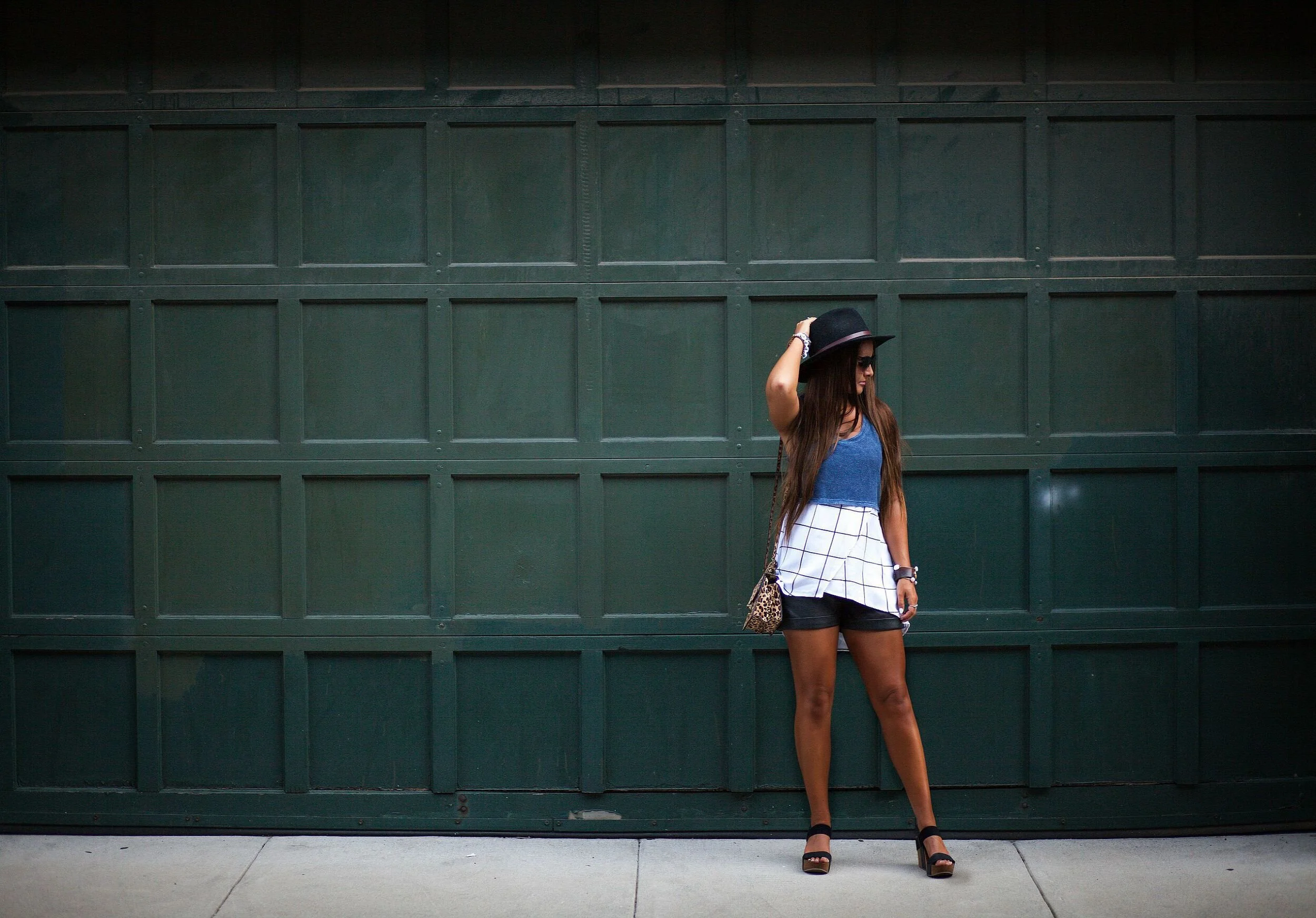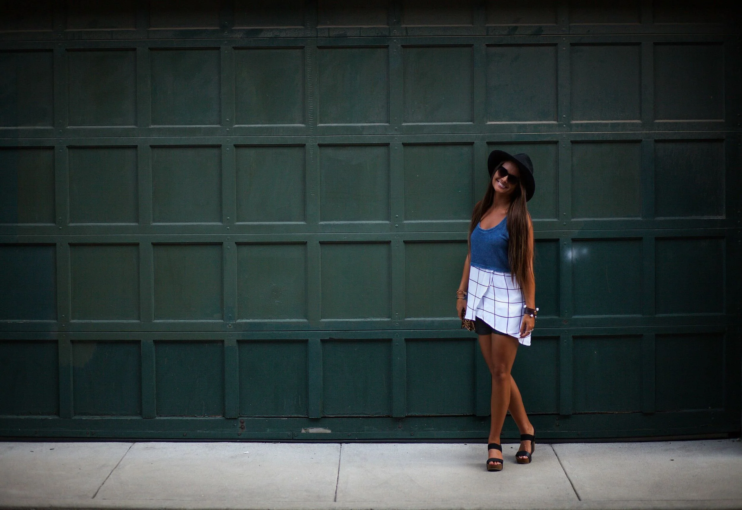 When it comes to fashion, I truly believe there are no rules. Wear what you love, take chances, and wear what you feel comfortable in and you will always look great. For example, most might say that leather is only for winter, but when you find the most perfectly fitting pair of leather shorts while thrifting, you just MUST wear them as much as possible. When I happened upon these 80's high-waisted faux-leather shorts while thrifting last year, I grabbed them thinking I could sell them and that they probably would not fit me. Magically they fit perfectly and have been a staple in my closet ever since. They look adorable over tights in the winter and really add a fun edge to any outfit. The key to wearing leather shorts without looking all "hoochie-mama" is to balance them out with flowy, loose-fitting pieces on top. Peasant tops, slouchy button-downs, or unstructured tanks (like the one I'm wearing) all work perfectly. This flowy, tiered tank from Anthropologie (which is now ON SALE!) has a knit scoop-neck top with drapey cotton-rayon blend bottom in contrasting black and white grid-work print. I love the laid-back look of this top that you can easily dress up or down, and it is so comfortable and flattering. I paired it with some simple strappy black wedges, lots of bangles, my favorite vintage hat, and another pop-of-print leopard satchel.