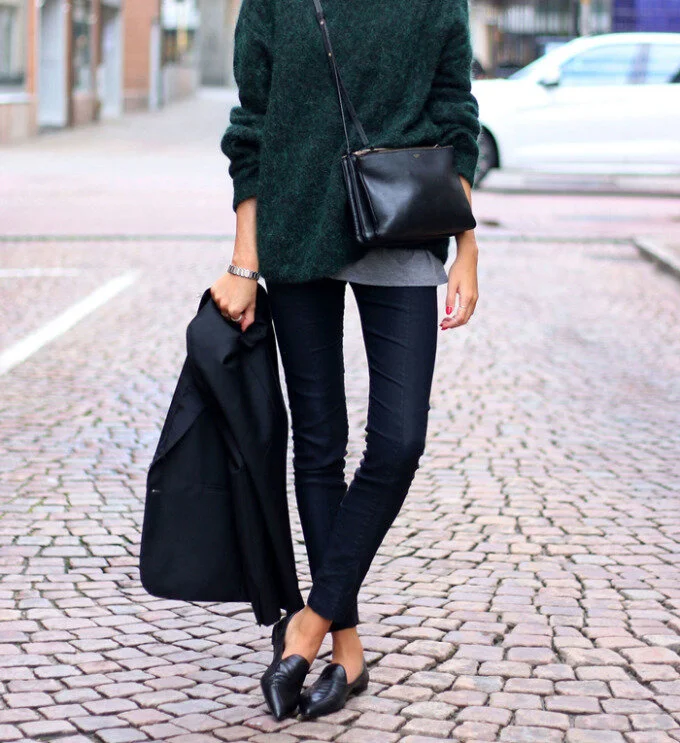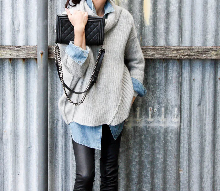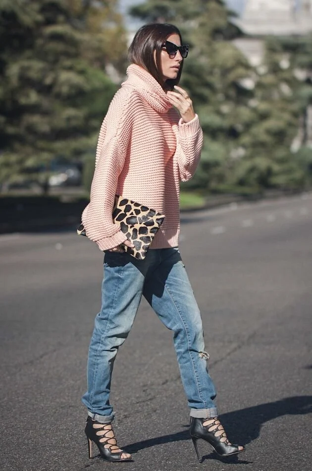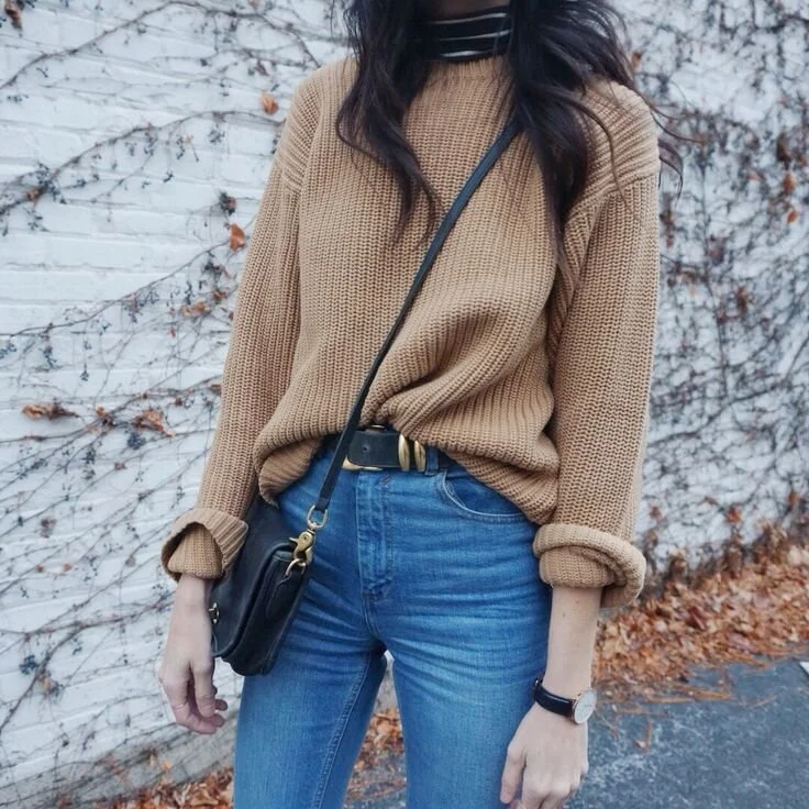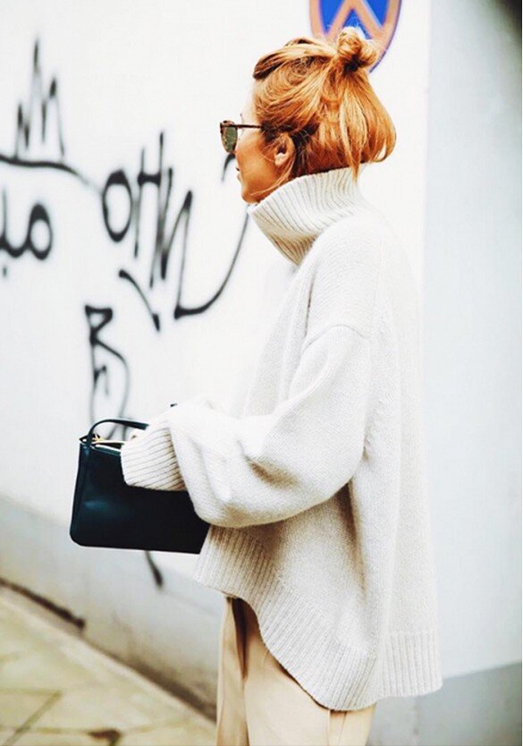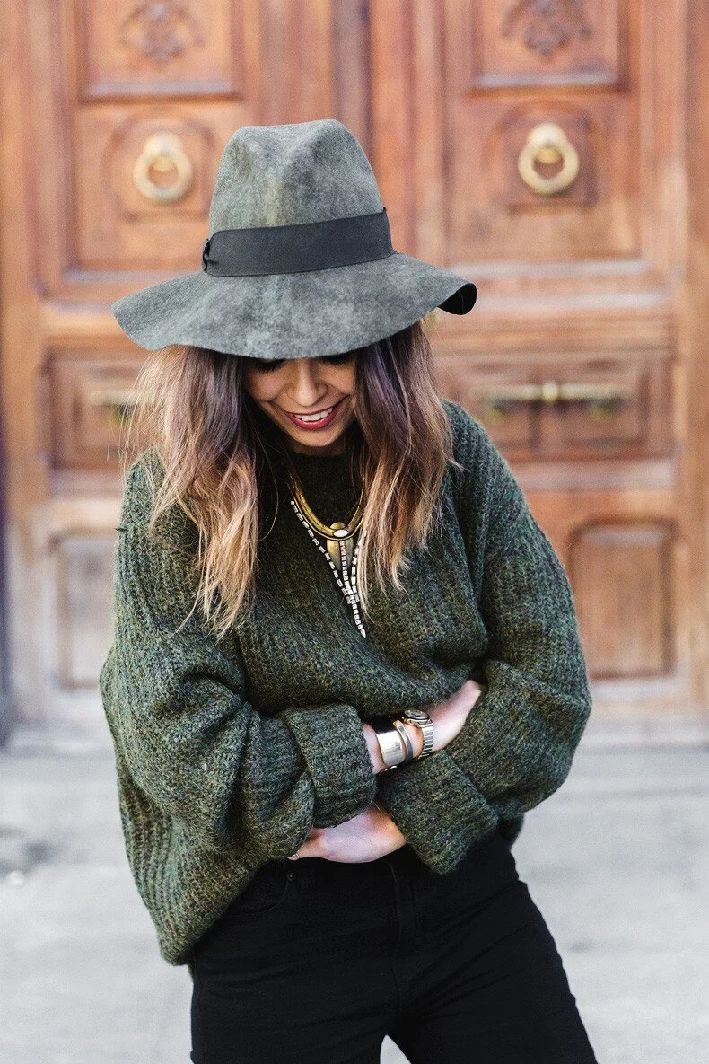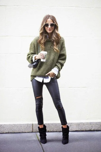 Slouchy, oversized sweaters have become one of my wardrobe staples for fall + winter. There's nothing more comfortable than throwing on one of these perfectly cozy pieces and there's so many ways to make them look chic and pulled together. The best way to find these pieces already perfectly worn-in and on a budget? Buy them vintage! We try to always have a good selection of chunky knits and slouchy sweaters, and usually they are priced under $20! I love layering them over flannels or chambray shirts, but they can also stand alone as a signature piece you will wear year after year. Most opt for a fitted silhouette on the bottom to balance out the look (think skinny jeans, leather pants, or leggings), but don't be afraid to play with different proportions (a la some of these fabulous fashion bloggers below).