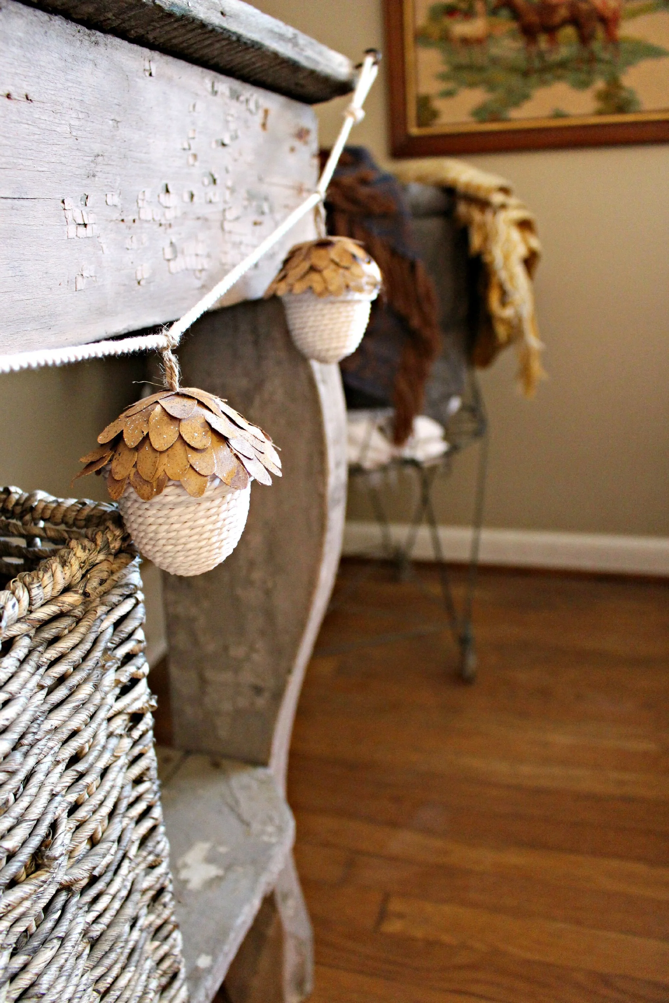 New Items: I love mixing vintage and new, and every year I purchase a few new items to freshen up the space. This year for example, I got the adorable acorn garland from Target (not available online, but check your local store-only $7.99!), as well as some new textured pillows from Target, and a new accent rug by the door. I also got the wreath above my television from Bargain Hunt, but it is Smith & Hawken brand from Target. If you have never been, Bargain Hunt, is similar to Big Lots but with better brands (including TONS of Target stuff). They offer major discounts on items that have been returned to stores, maybe opened, but they are still in perfect condition. They also discount items the longer that they are in stores! Many times you can find items that are at Target right now for half the price. Other places I like to find new decor are Home Goods, TJMaxx, Marshall's, and Hobby Lobby.