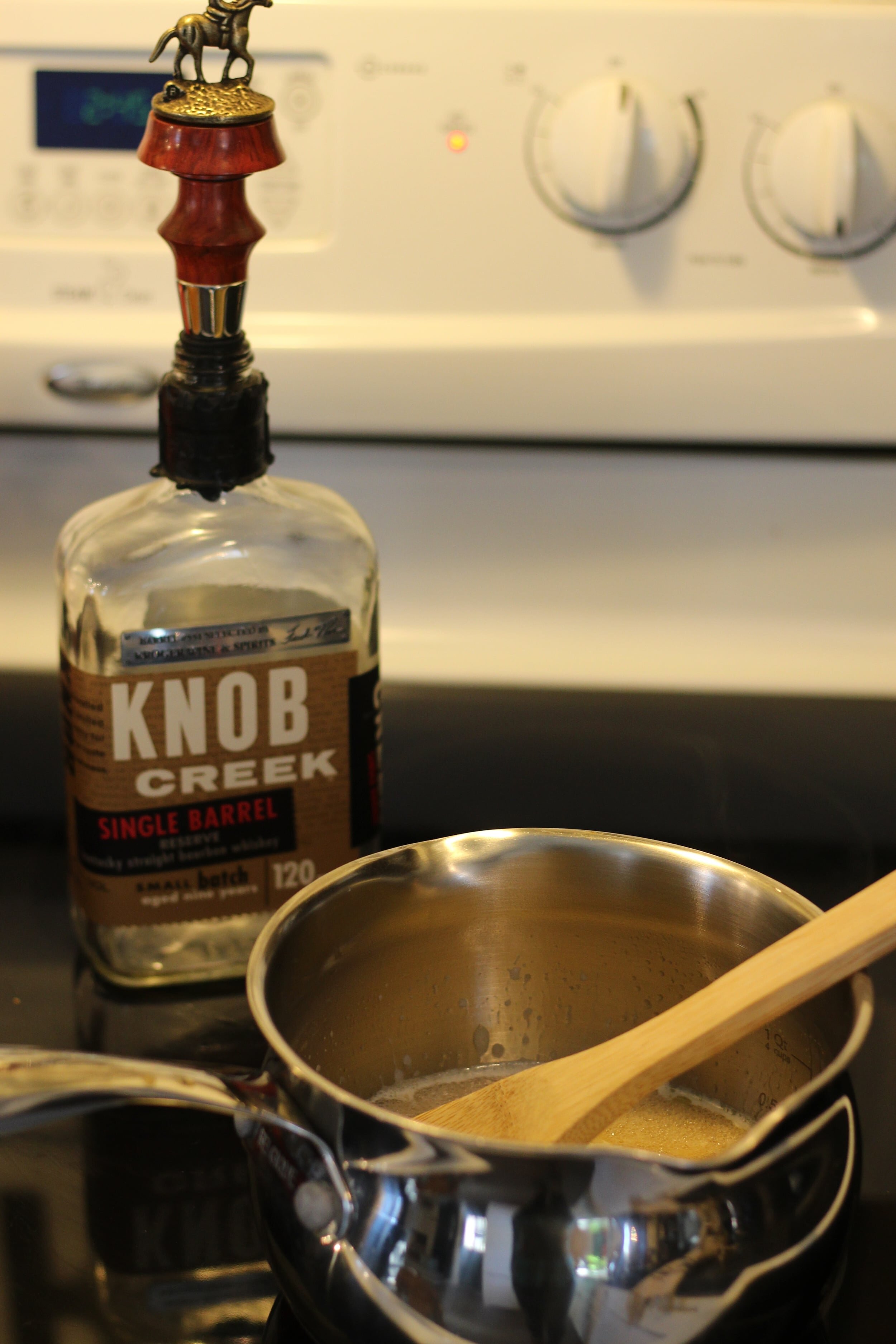 When the cake is done baking you can begin making your glaze. Add your ingredients to a small saucepan on low to medium heat. Stir constantly until your butter is completely melted (do not bring to a boil).