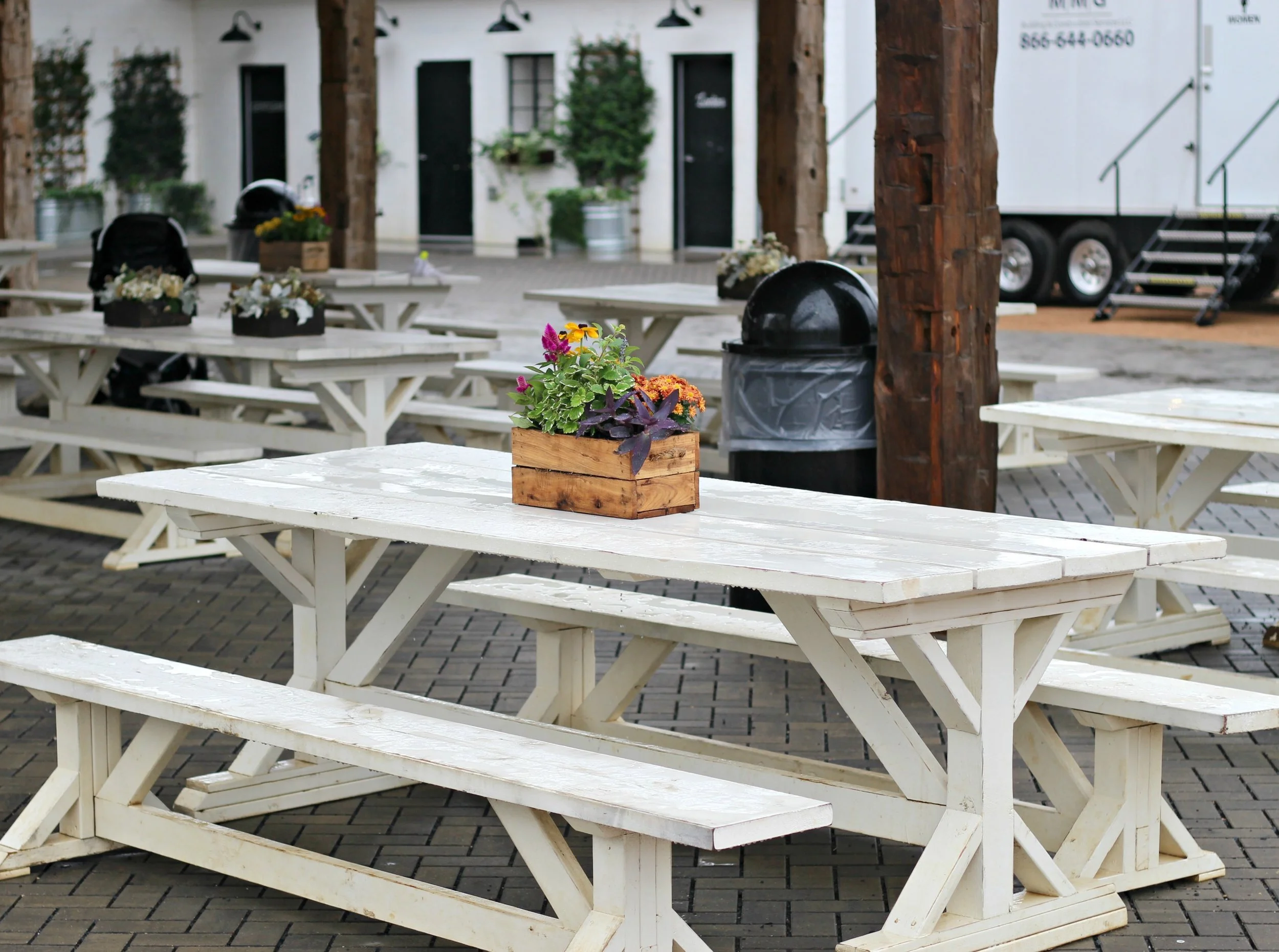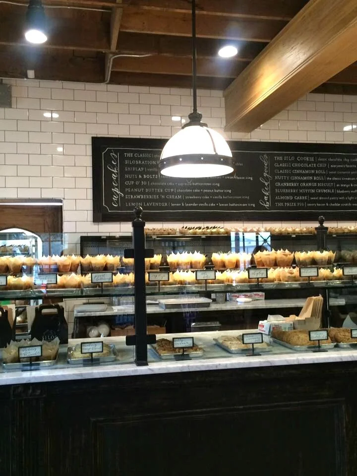 Start with a cupcake or cinnamon roll for breakfast from the bakery- you can sit outside at one of the many tables and enjoy it and also grab a coffee from one of the food trucks! You may remember Common Grounds coffee shop from one of the first episodes of season 1 (Chip and Joanna remodeled the house of the couple who owns the coffee shop!). Common Grounds has a food truck on the Silos grounds and their iced lattes were AMAZING! I am still craving them and trying to replicate them. The inside of the bakery is just dreamy and the cupcakes literally melt in your mouth! I loved all the black and white details, sweet packaging, and cute names of all the cupcakes. We got lucky on day two and walked right in the bakery when it first opened, but the other days the line was wrapped out the door and down the block! I'm sure it is not that busy on non-Silobration weekends but keep in mind that it is a very popular place!