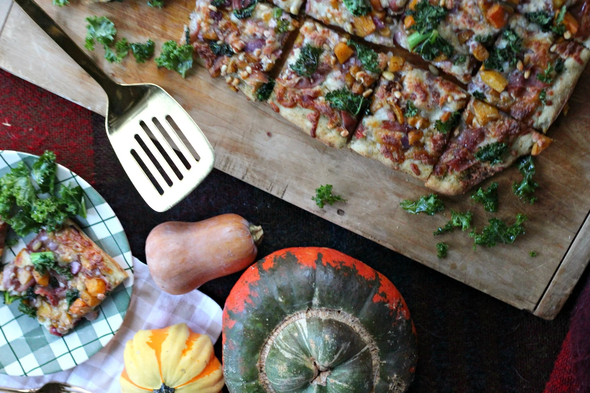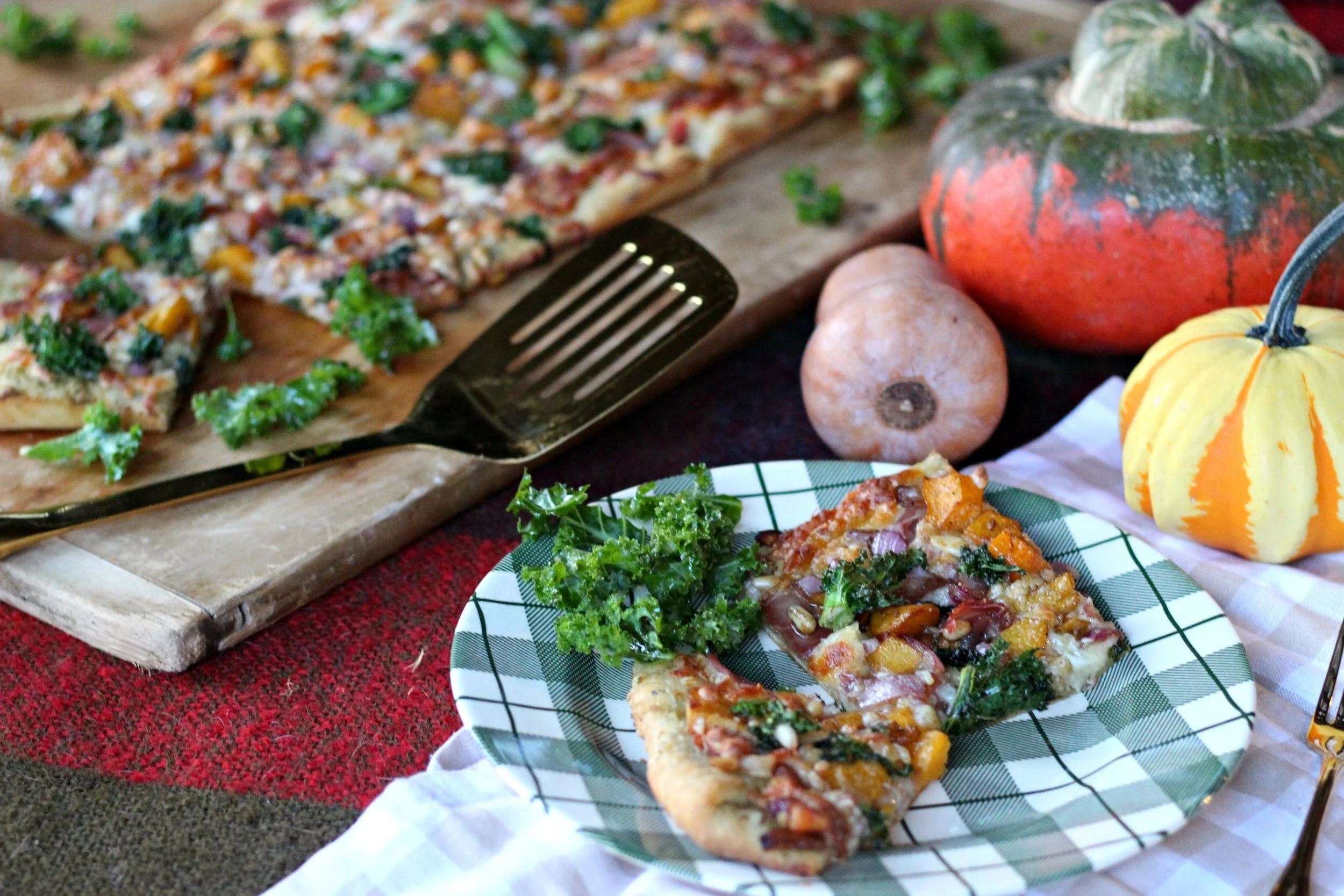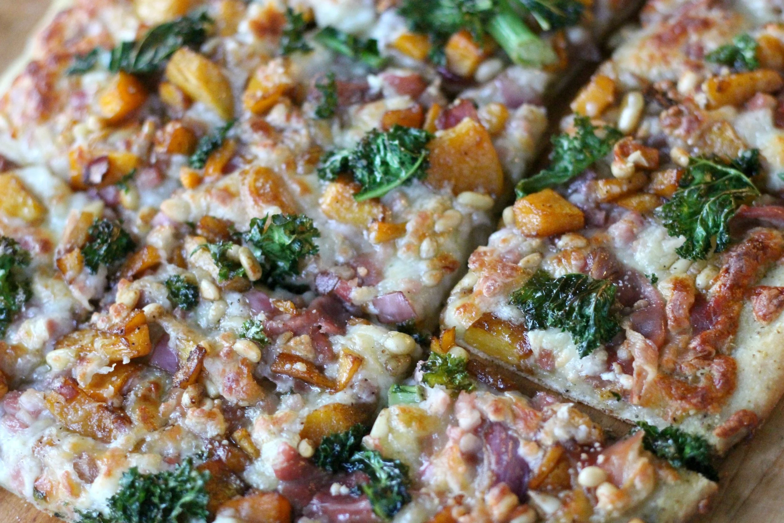 Autumn Butternut Squash, Kale, + Prosciutto Pizza