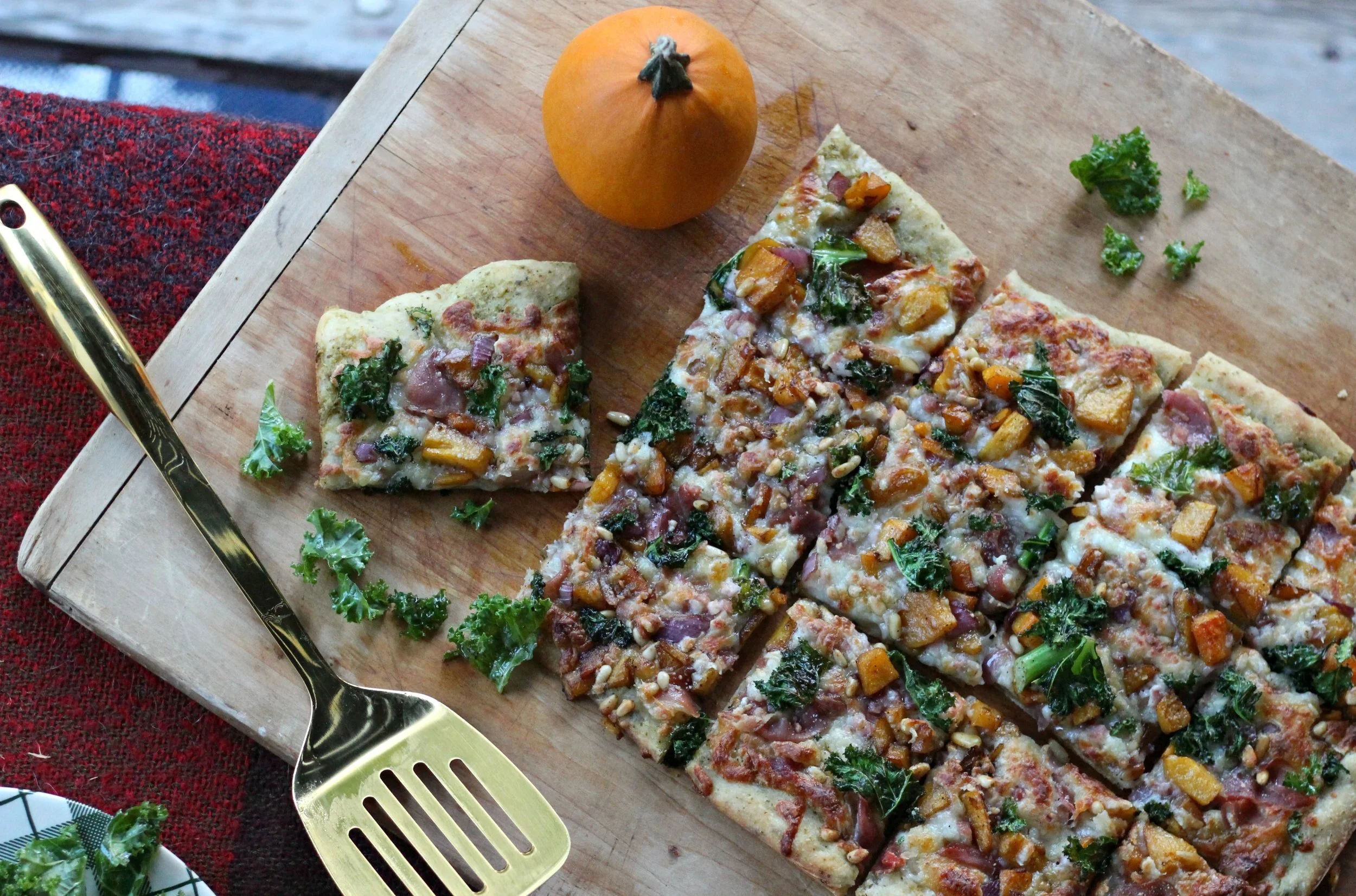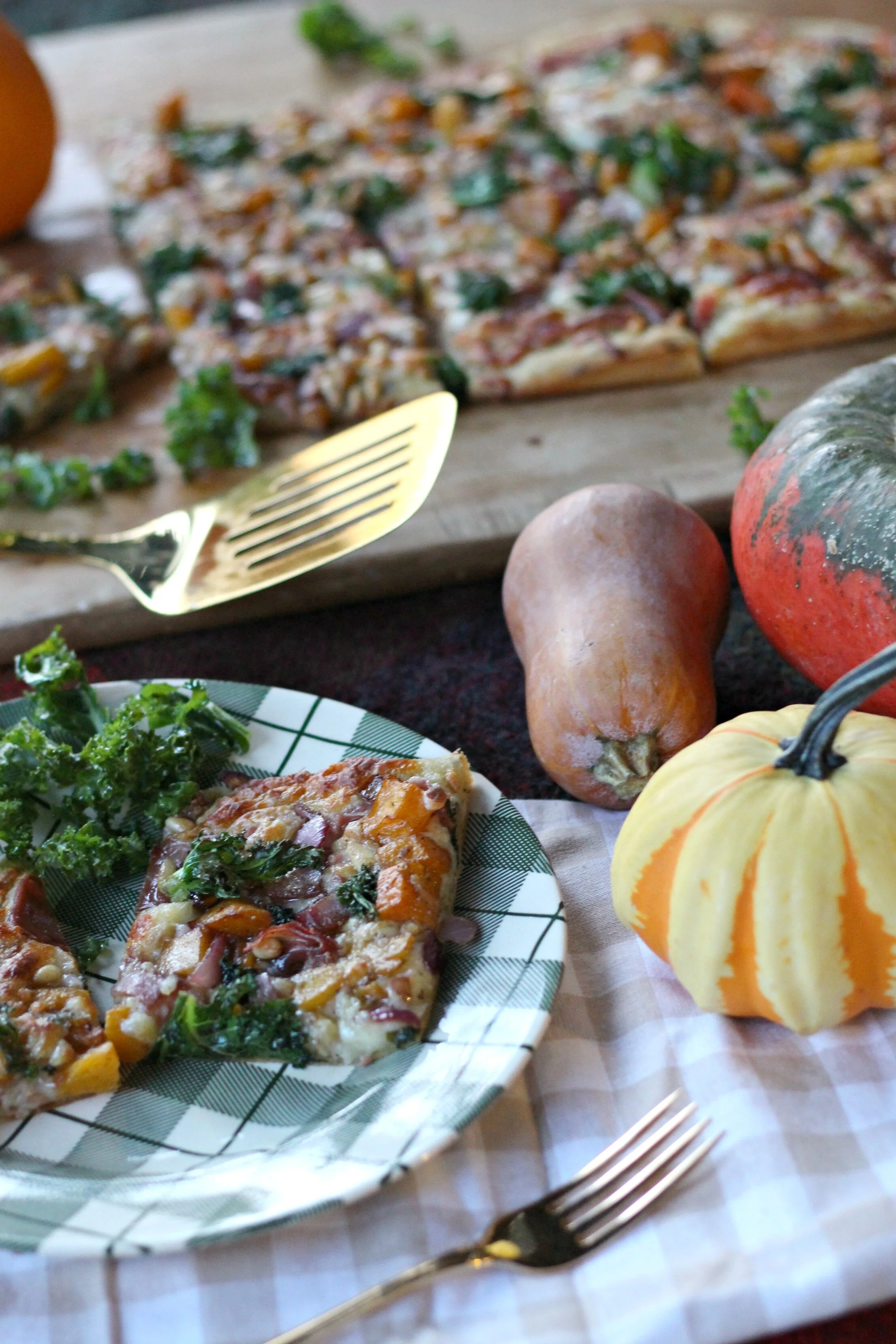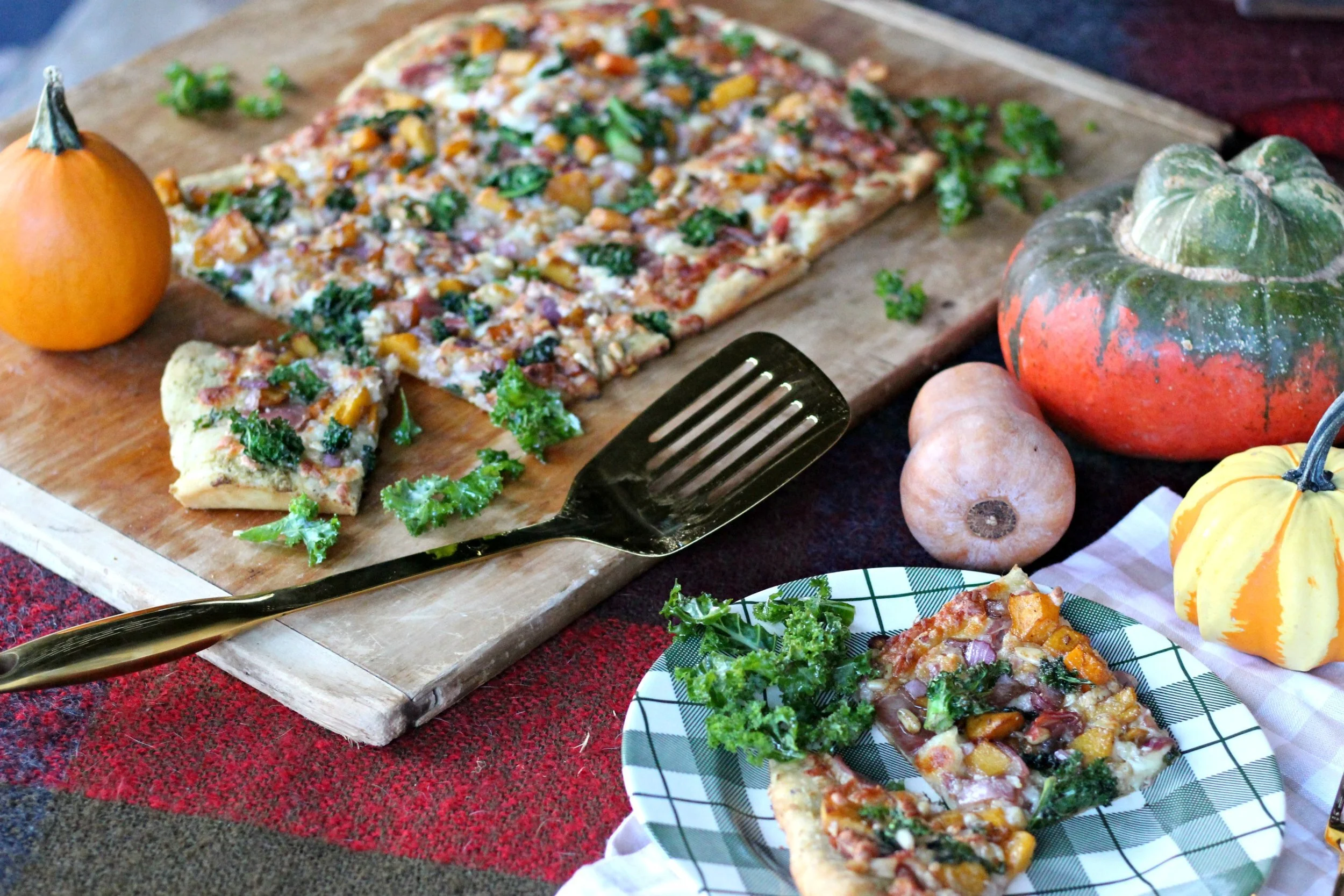 Autumn Butternut Squash, Kale, + Prosciutto Pizza