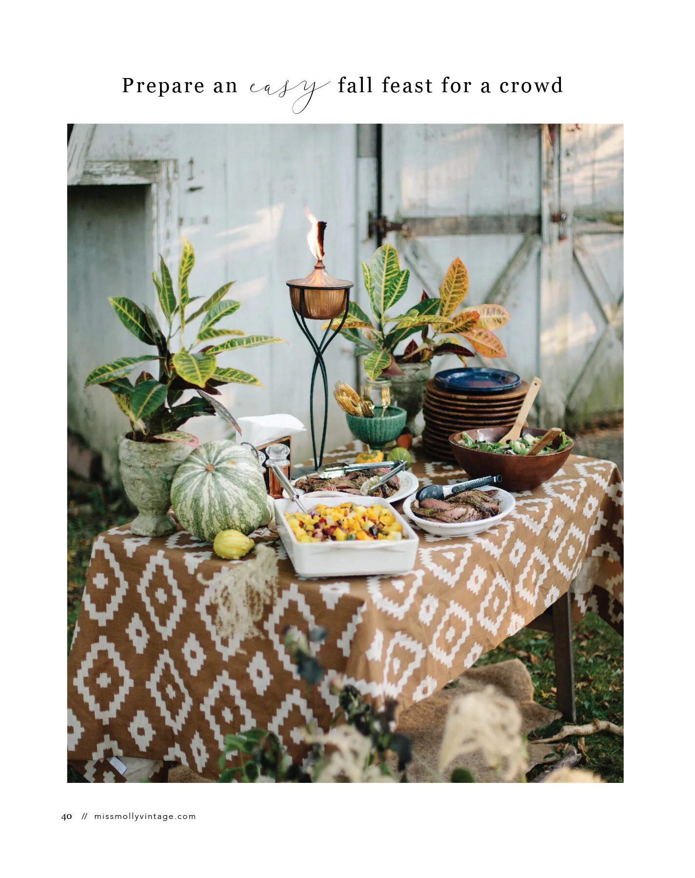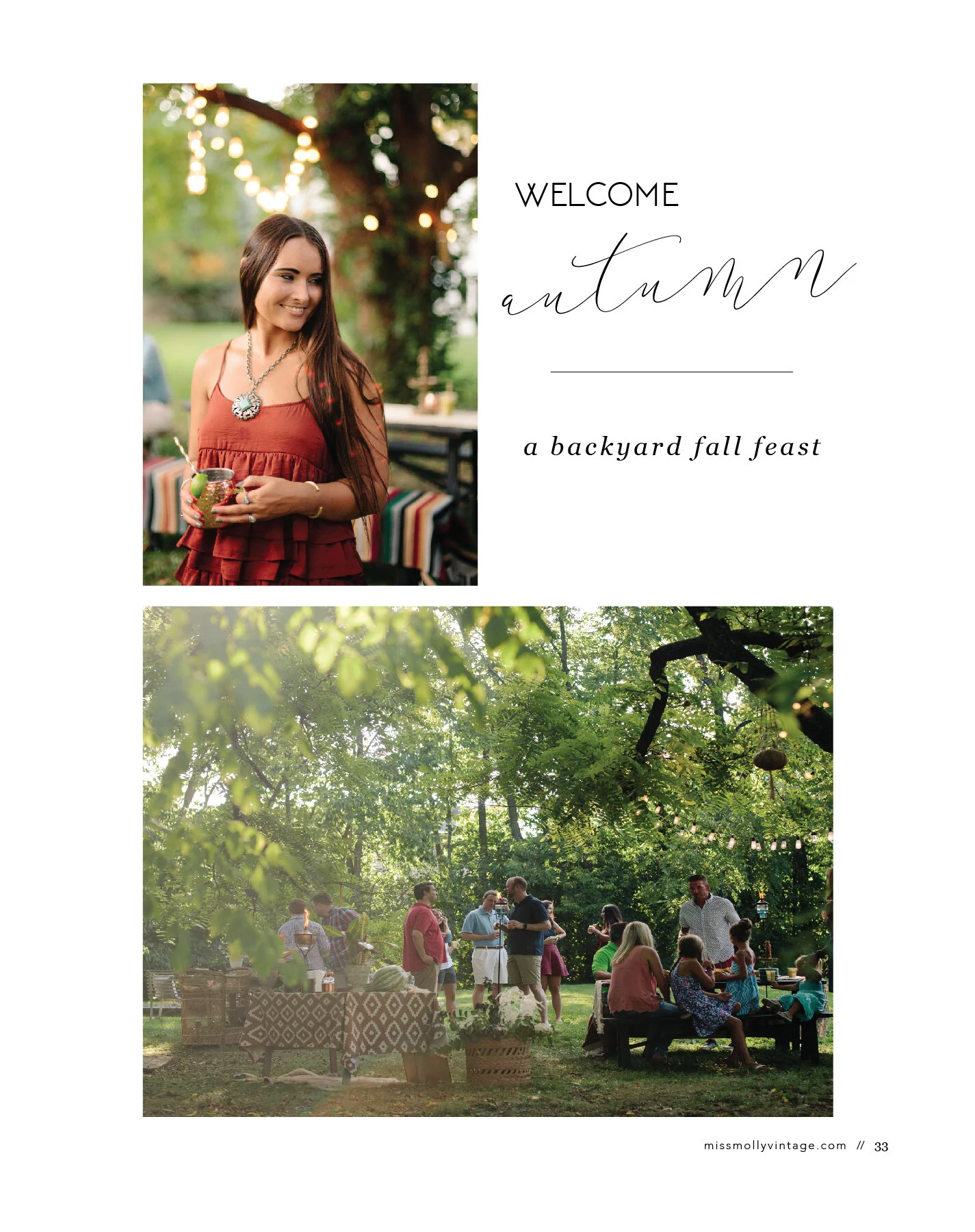 I hope you all enjoyed part I of our autumn lookbook and I'm excited to share the final part today! This might be my favorite portion of the lookbook and some of my favorite pictures to date! We hosted a fall backyard party with some of our closest friends and Sarah perfectly captured every detail. Entertaining and planning for parties has always been one of my favorite things to do, so I've shared all my tips, recipes, + ideas for hosting your own fall gathering! I love that we incorporated all these new elements into the lookbook this year, making it more than just a catalog but something you can keep for fall inspiration and ideas each year. As always I try to only share easy and simple recipes and plenty of tips for transforming your space on a budget but with plenty of vintage flair! Be sure to check out the complete lookbook here with a full page, larger layout that's easy to read. Below you can preview the entire second portion of the lookbook + shop all the items featured! Enjoy!