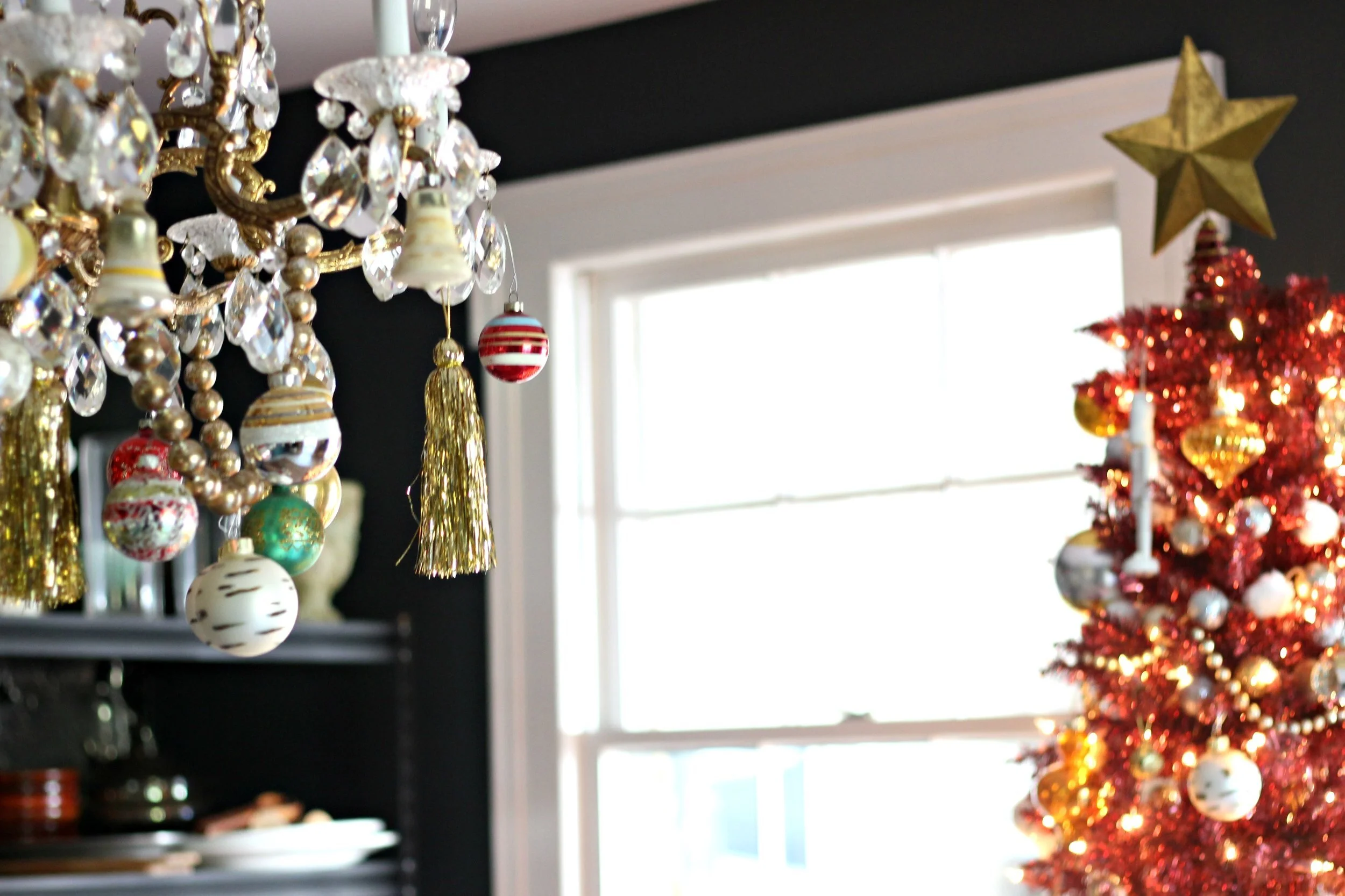 Tree ornaments + chandelier ornaments: mostly vintage/ some from Target + At Home