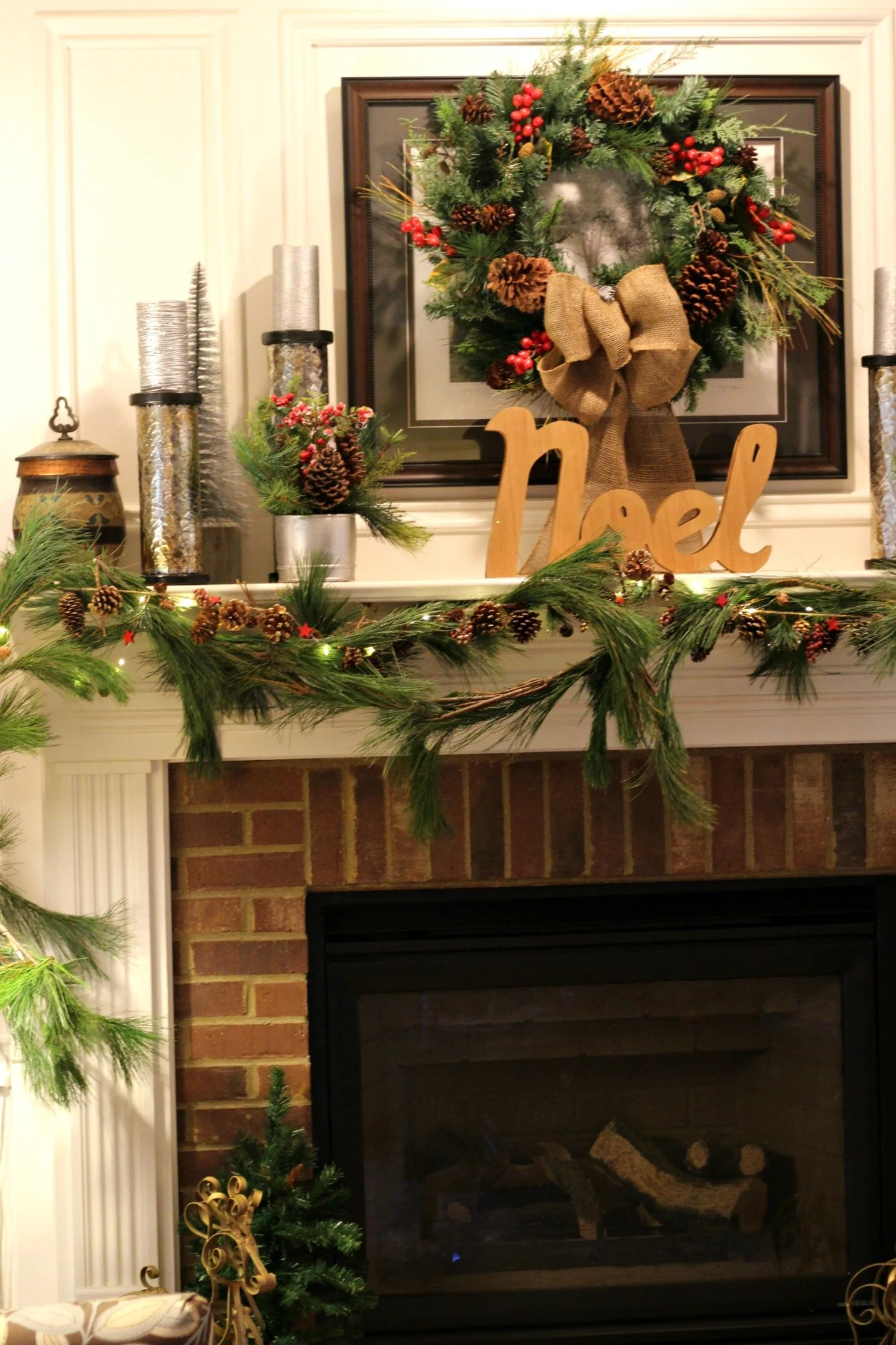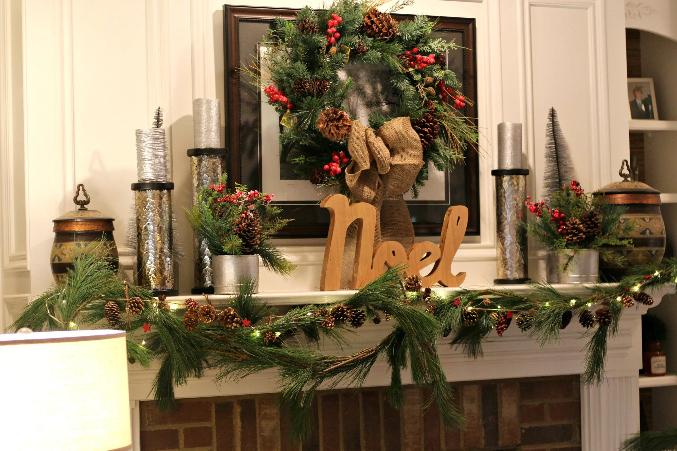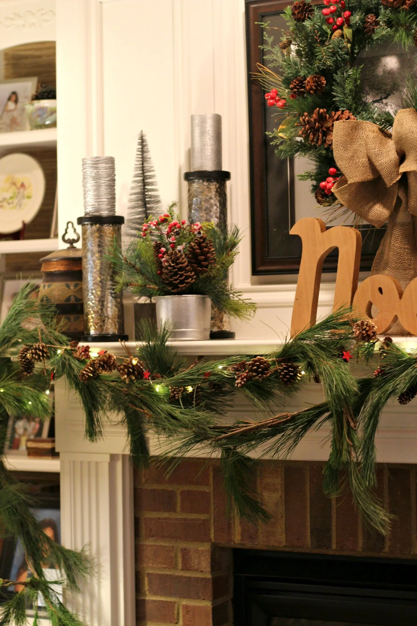 We were working with a budget of $100 to shop for items for this mantle and we came in just under that total. I also kept a few items that she had already on the mantle like the jars, and candlesticks, which I purchased new candles (from Homegoods) for that felt more "holiday" themed. For the garland on the mantle, I mixed a fresh pine garland from Trader Joe's with a pinecone garland from Michael's and some LED twinkle lights (from Target). The twinkle lights from Target were perfect because they also had little pinecones and red stars mixed in with them. The wreath, mini Christmas trees, silver bottle brush trees, and gold metal reindeer were all thrifting finds and the grand total for all of those items was under $40! The wooden "Noel" sign also came from Michael's, while the small pinecone arrangements in silver pots came from Homegoods. The look is simple + classic and the great thing is that most of these decorations are not so obviously Christmas, so they could also stay up throughout the winter months too!