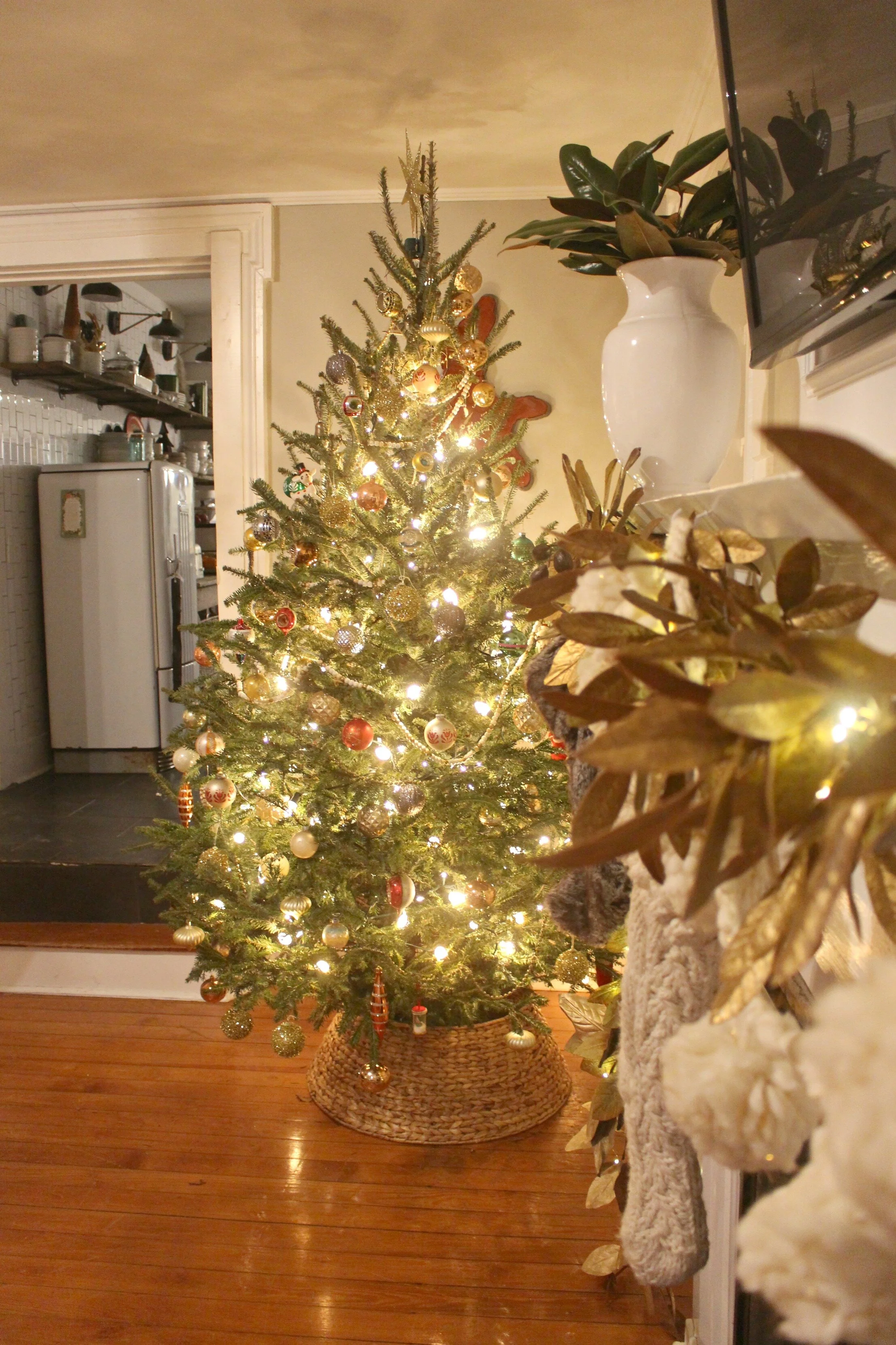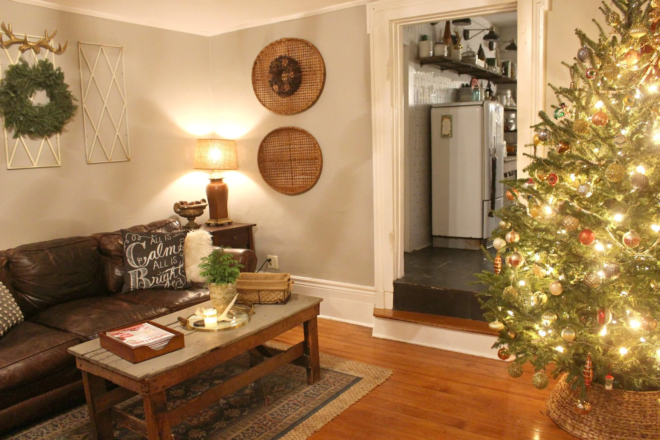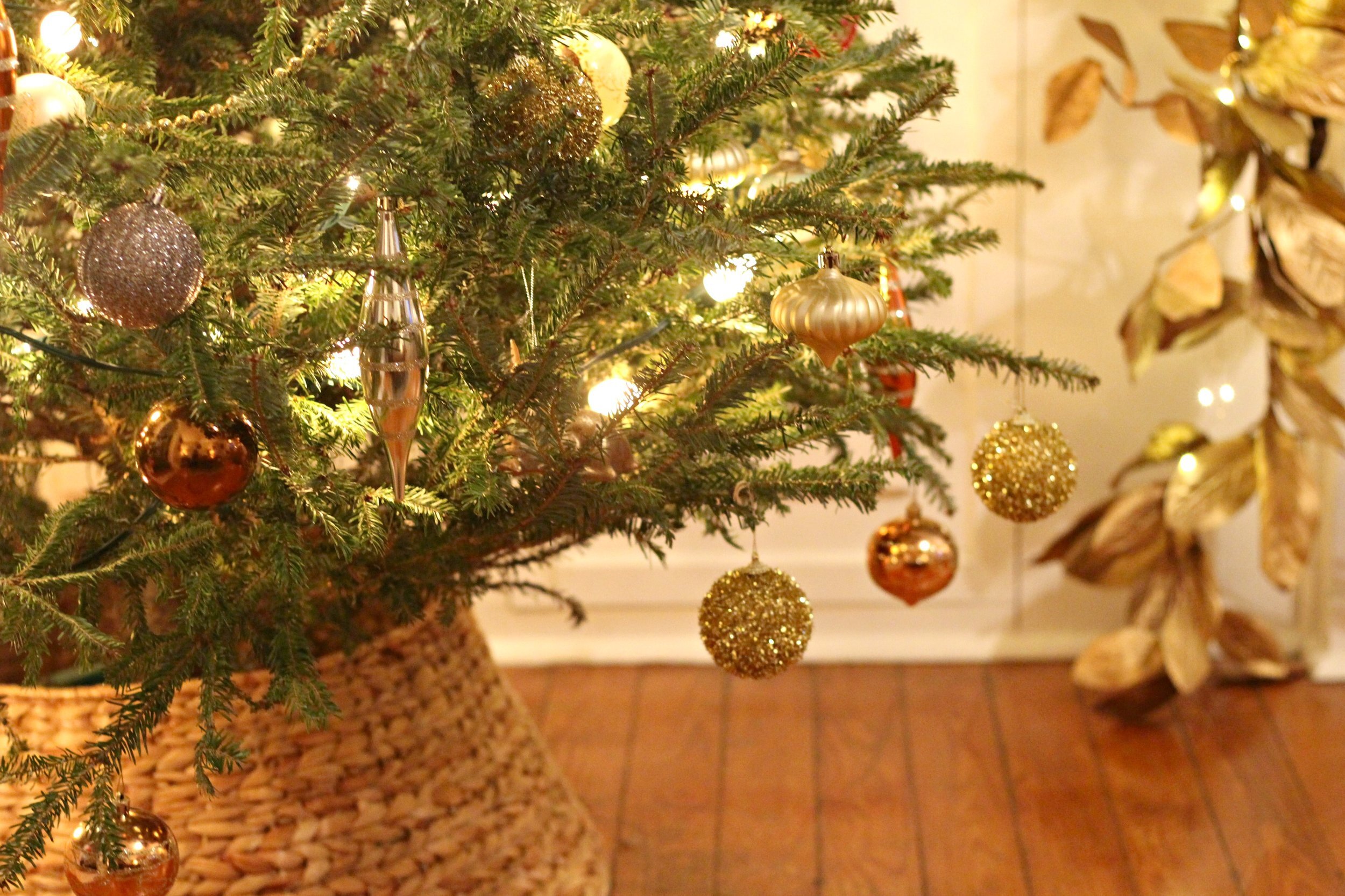 My other favorite find in here is my new basket tree "ring" from Hayneedle. I had seen similar styles like this at Pottery Barn and Anthropologie, but they were always too expensive for me. Hayneedle's are right at $50 and fit around a standard round tree stand for a unique, textured look that is so much more chic than a standard tree skirt. I've linked all my decor including this tree skirt at the end of this post (if you have any questions about anything not mentioned, just ask!). You can check out the before and after of our living room here for details on paint colors, lighting, furniture + more.