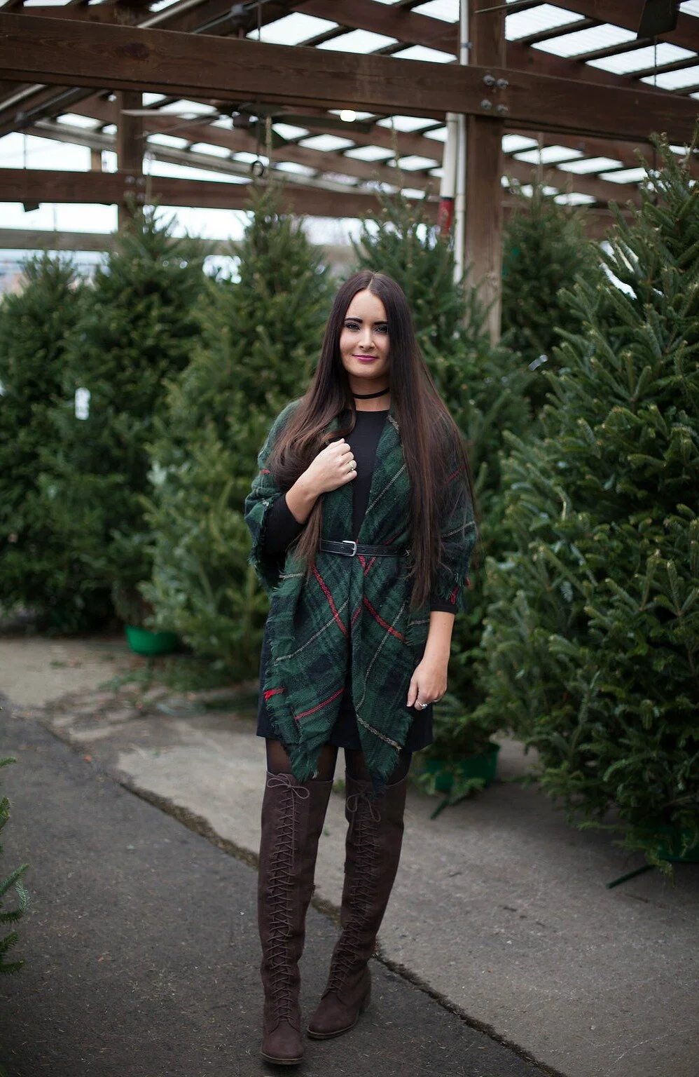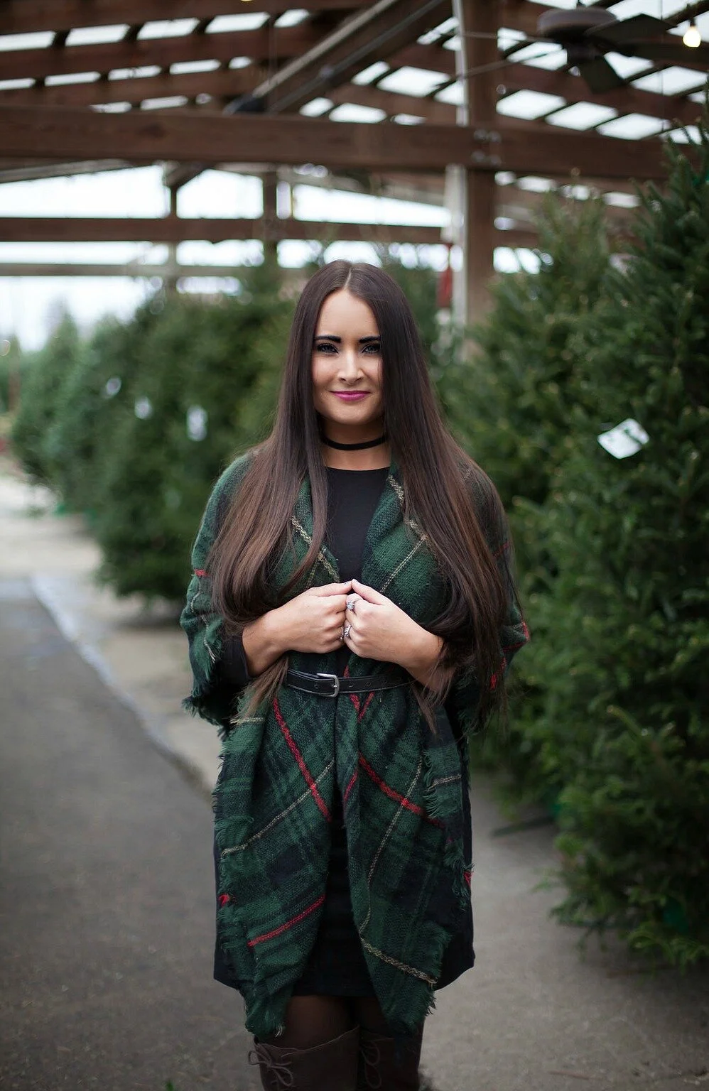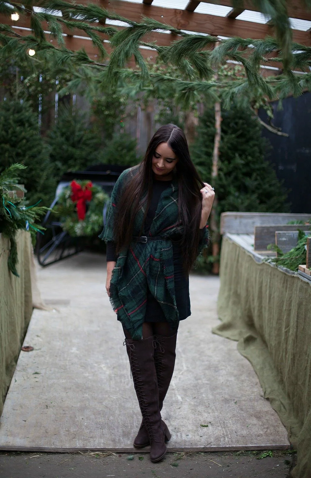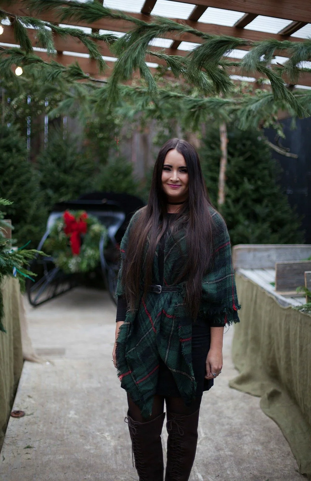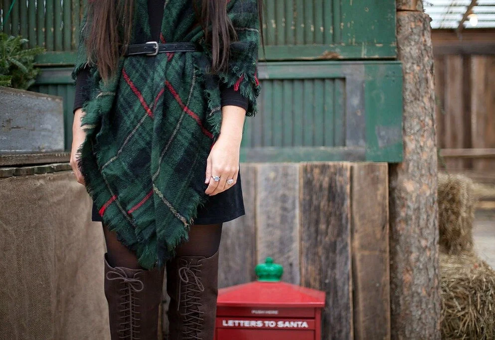 For our shop visit, I wore one of my favorite holiday plaid blanket scarves over a simple black swing dress. Wrapping a blanket scarf around you and belting it is one of my favorite ways to style these accessories and perfect for layering up in the cooler temperatures! Visit my blog post here to read more about my favorite styling ideas for blanket scarves, how to tie them, and shop our collection of blanket scarves in our online shop. I've linked my full outfit details below + added some similar options for you to shop at the end of this post!