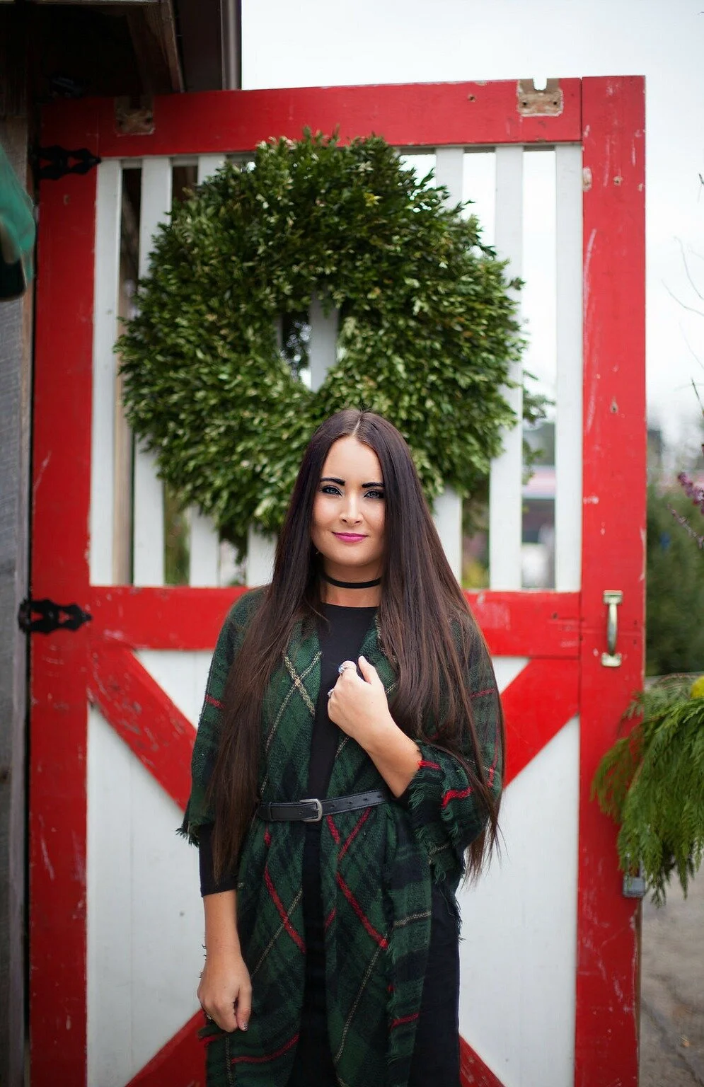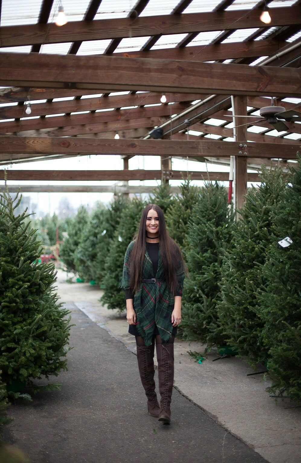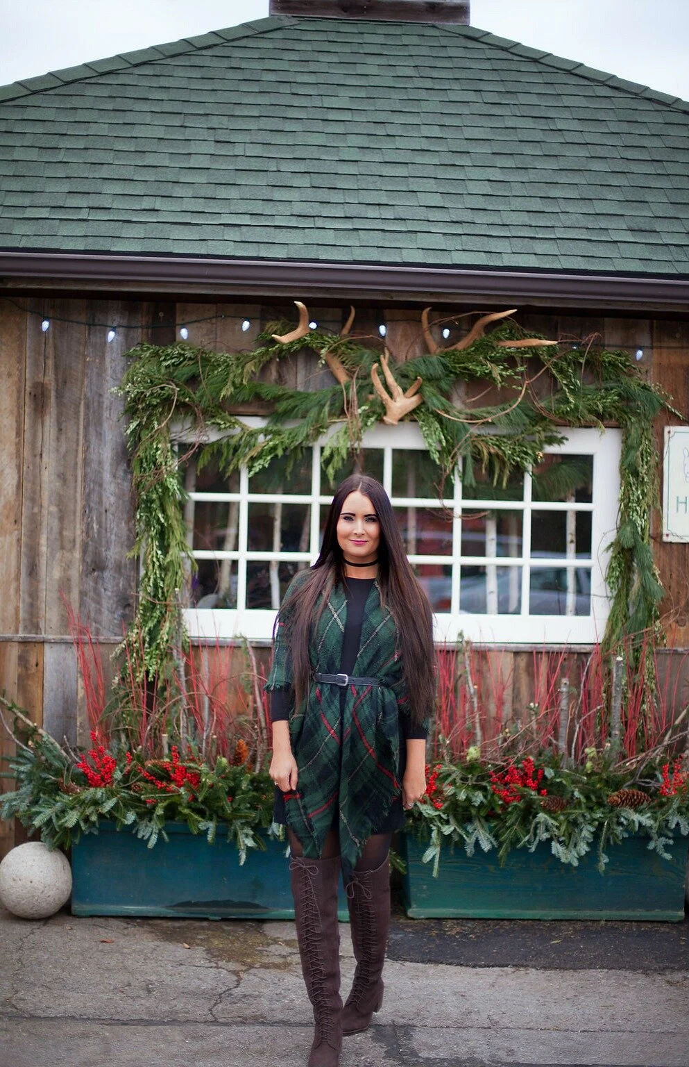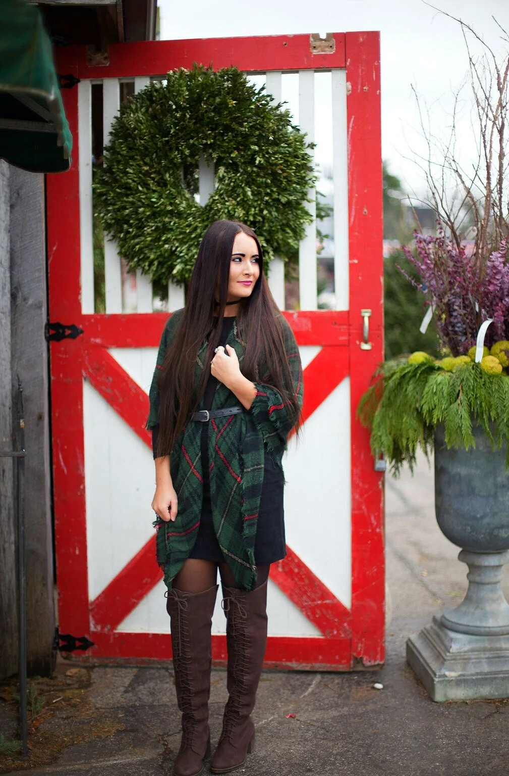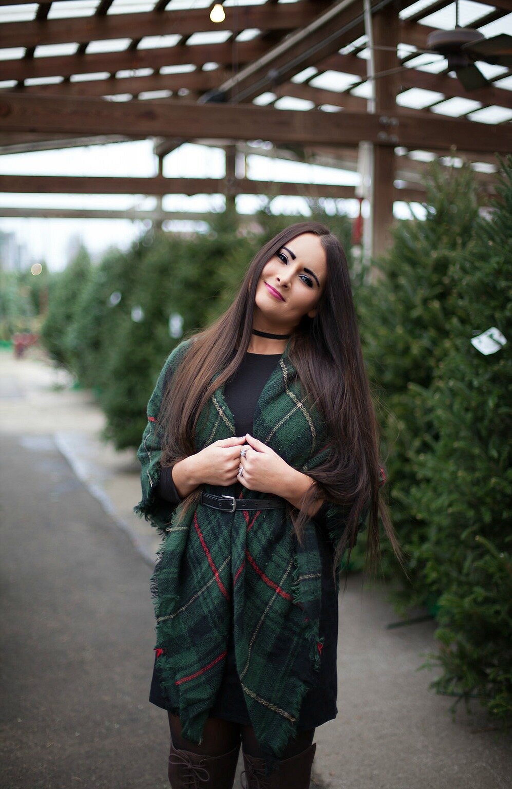 For our shop visit, I wore one of my favorite holiday plaid blanket scarves over a simple black swing dress. Wrapping a blanket scarf around you and belting it is one of my favorite ways to style these accessories and perfect for layering up in the cooler temperatures! Visit my blog post here to read more about my favorite styling ideas for blanket scarves, how to tie them, and shop our collection of blanket scarves in our online shop. I've linked my full outfit details below + added some similar options for you to shop at the end of this post!
