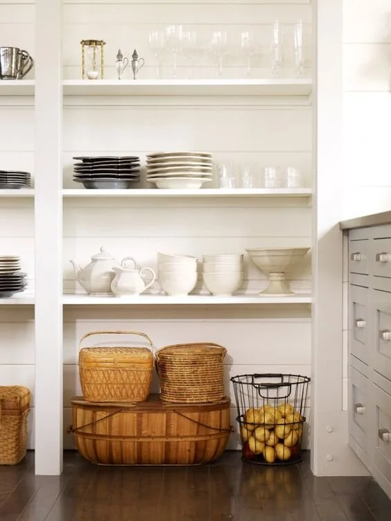 I will already have plenty of subway tile like this in the kitchen, but I love the beautiful shelf styling in this pantry. I'm planning on having a mixture of baskets, glass jars, and metal bins on all the shelves to organize and hold everything.
