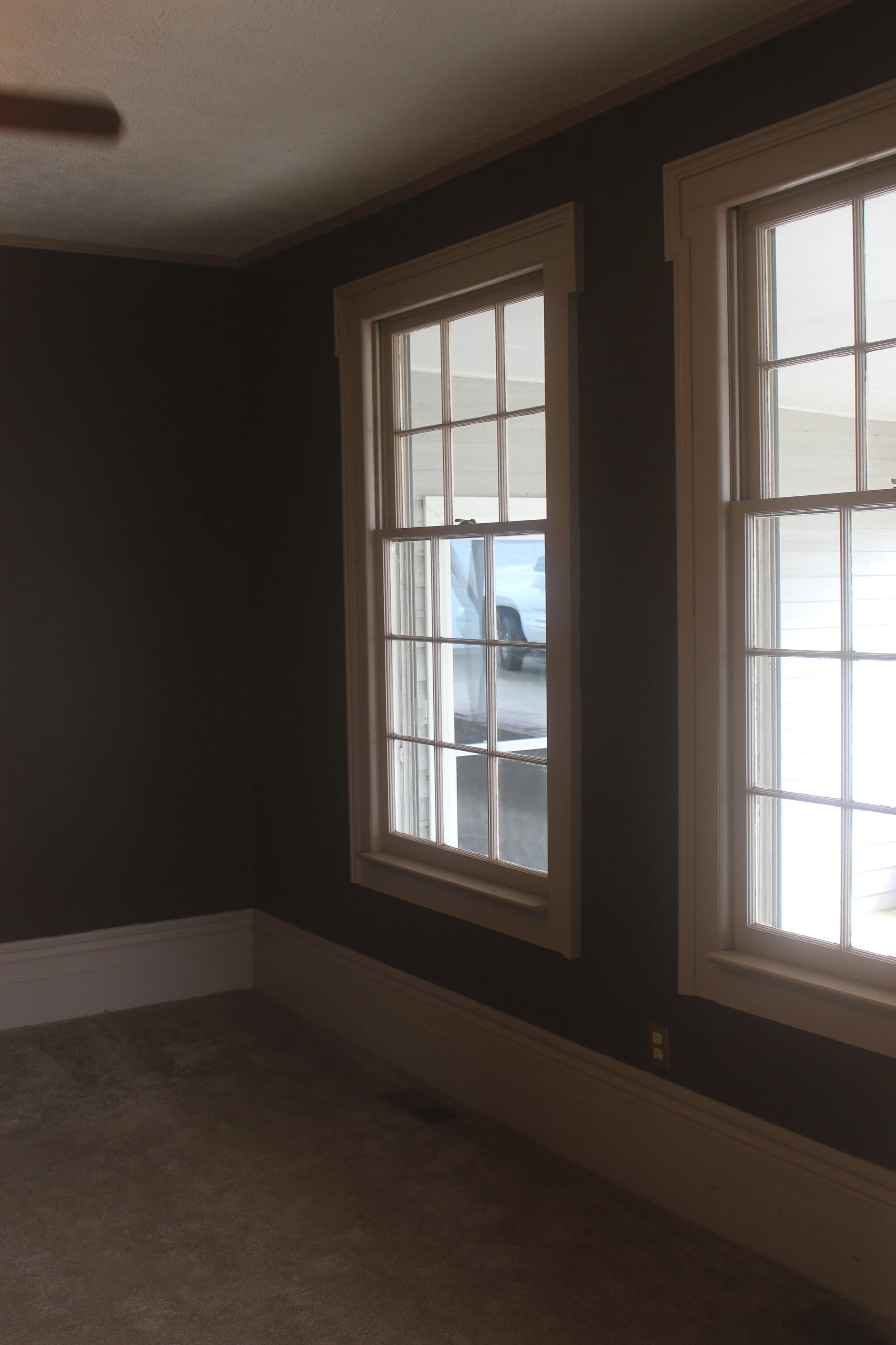 These giant windows are one of my favorite features of the house! They are this big in every room and these look out onto our side patio.