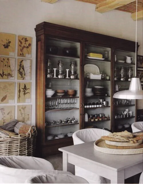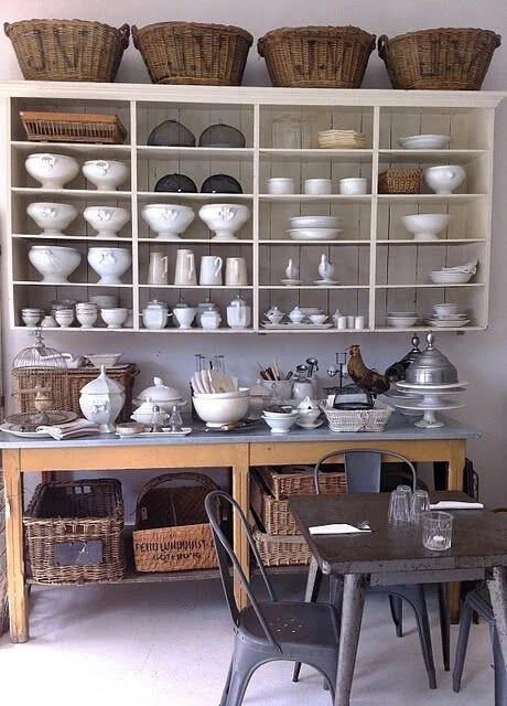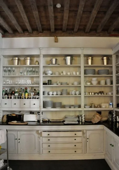 I'm going to need to be creative with the shelving in our pantry as there's no money left in our budget for real cabinets or custom made built-ins at the moment. It will probably slowly evolve as we get settled in and try different things, but I'm planning on mixing and matching different furniture pieces to create walls of shelving and storage. This large antique cabinet with open shelving built around it is very similar to what I'm picturing.