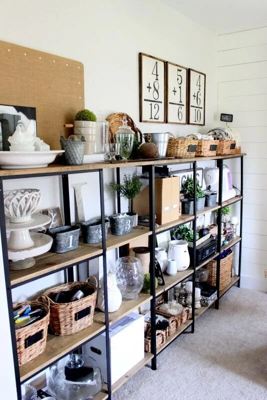 This blog shares a how-to guide to making this wall of storage using Ikea shelves and wood planks- this may be something to try for shelving.