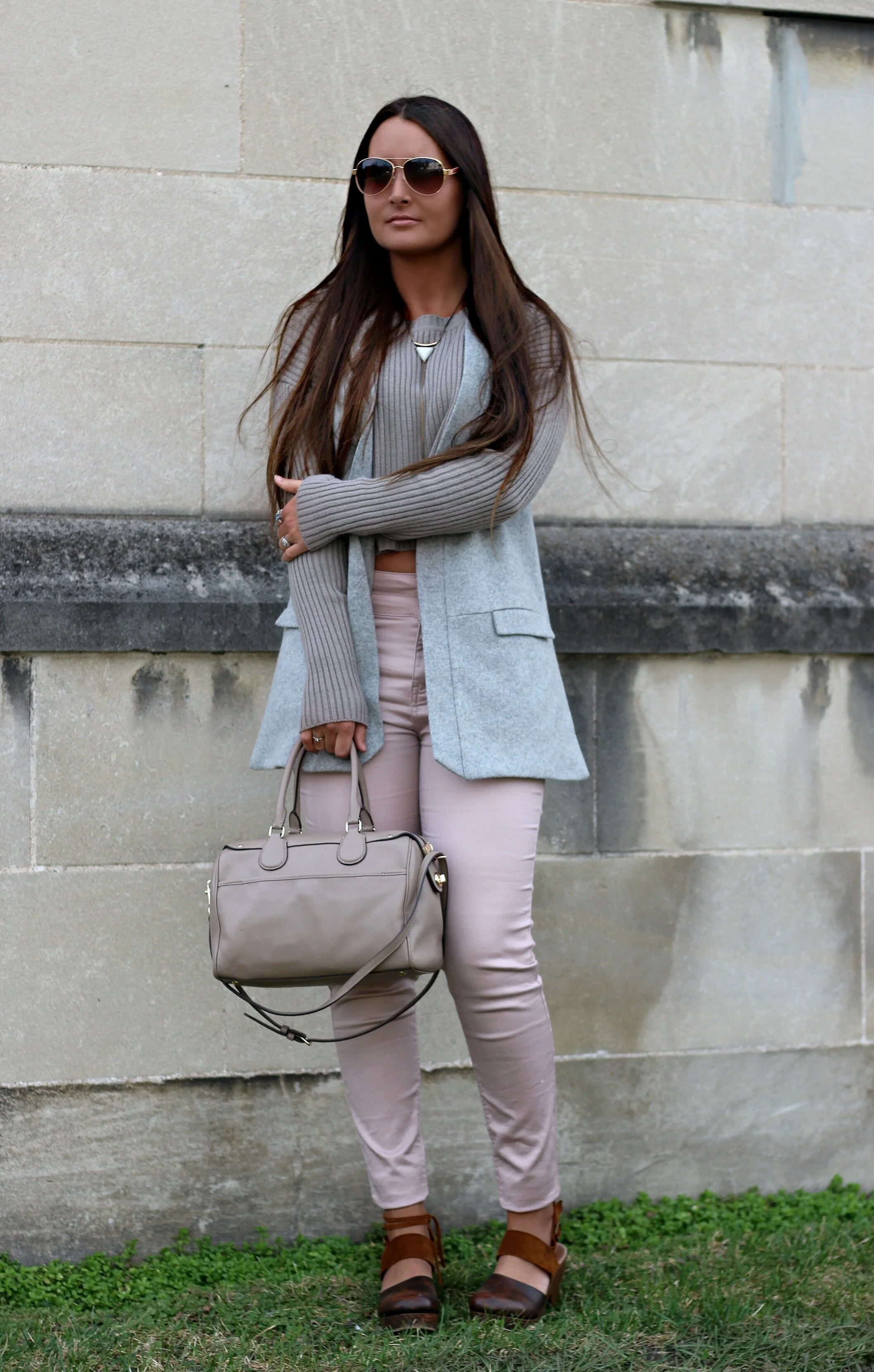 Two things I can't get enough of for spring: pale neutrals and basics. Minimal, classic pieces are all I want to wear lately and since they are so simple, it's so easy to mix, match, and layer them. I love the modern, fresh look of light tan and gray tones against super pale pastels. Usually you would steer away from wearing such similar shades but all together they create such a chic spring pallette. These pale pink pants from TJMaxx are so comfortable (lots of stretch!) and the high-waist fit makes them super flattering. I paired them with a cropped sweater to show off the high-waist cut, layered with a longer structured vest. As it gets warmer, I'll be able to transition these pants into spring by switching out my sweater, vest, and clogs for a flowy blouse and some wedges. I'm hoping spring is here to stay, but in Kentucky we can never be too sure!