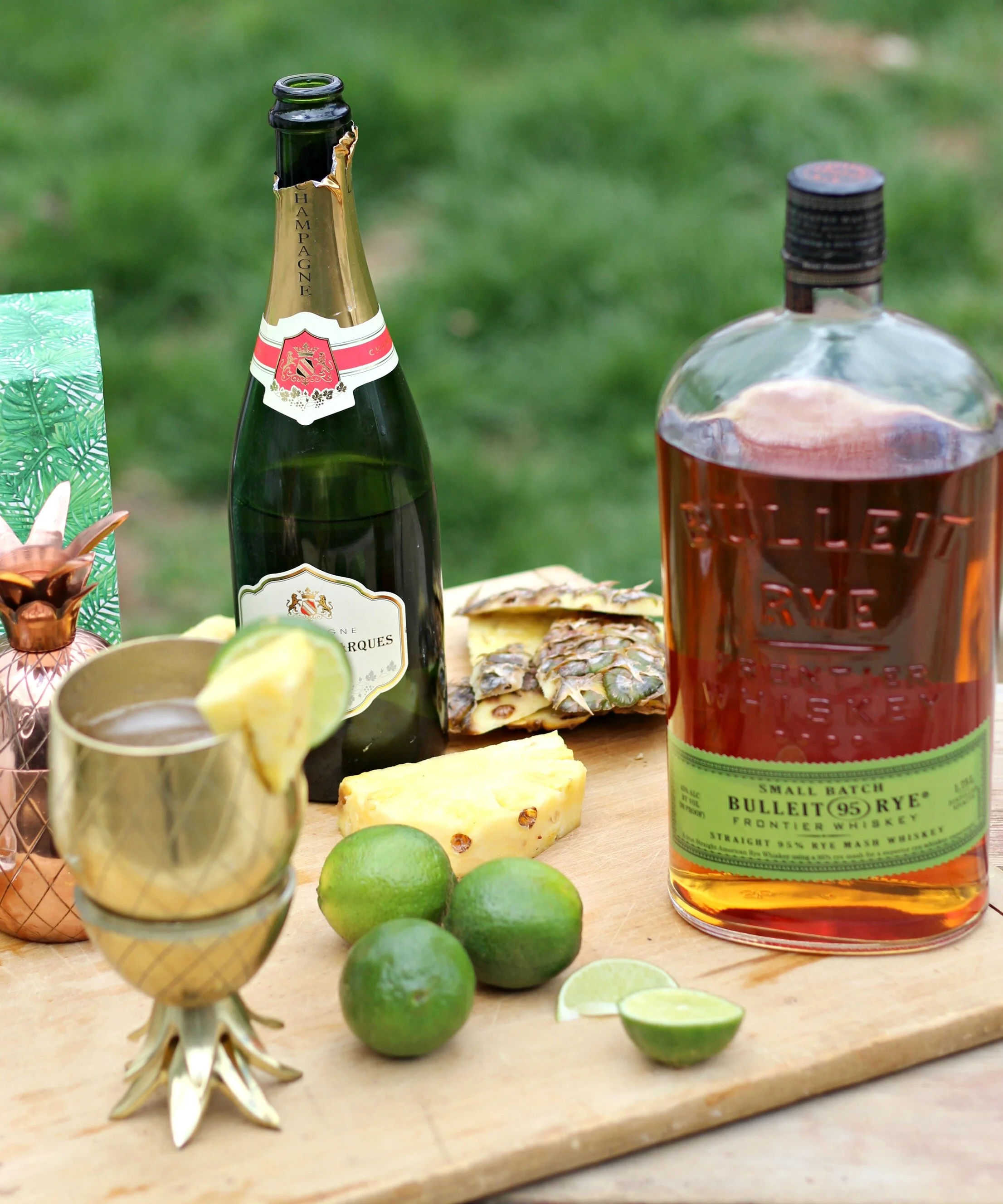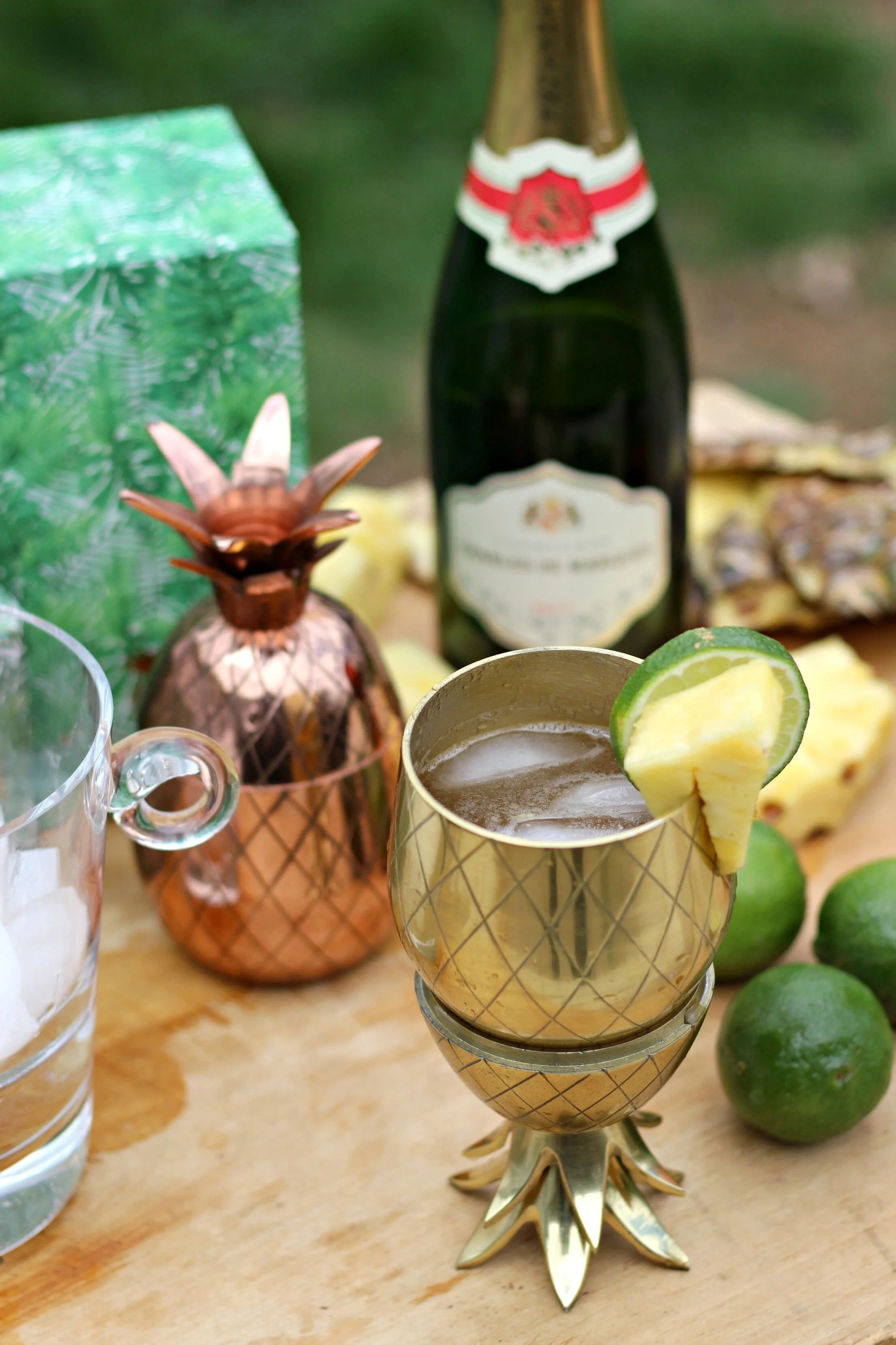 Now, my favorite part of hosting a party is the cocktail. Being a good Kentuckian (I grew up on a horse farm right down the road from the Woodford Reserve Distillery) I love to try and mix a good bourbon cocktail that we can all enjoy. One of my favorites is a Pineapple Ginger Sparkling Bourbon (I call it the “Masters” at my house because that's my favorite time to drink it)!