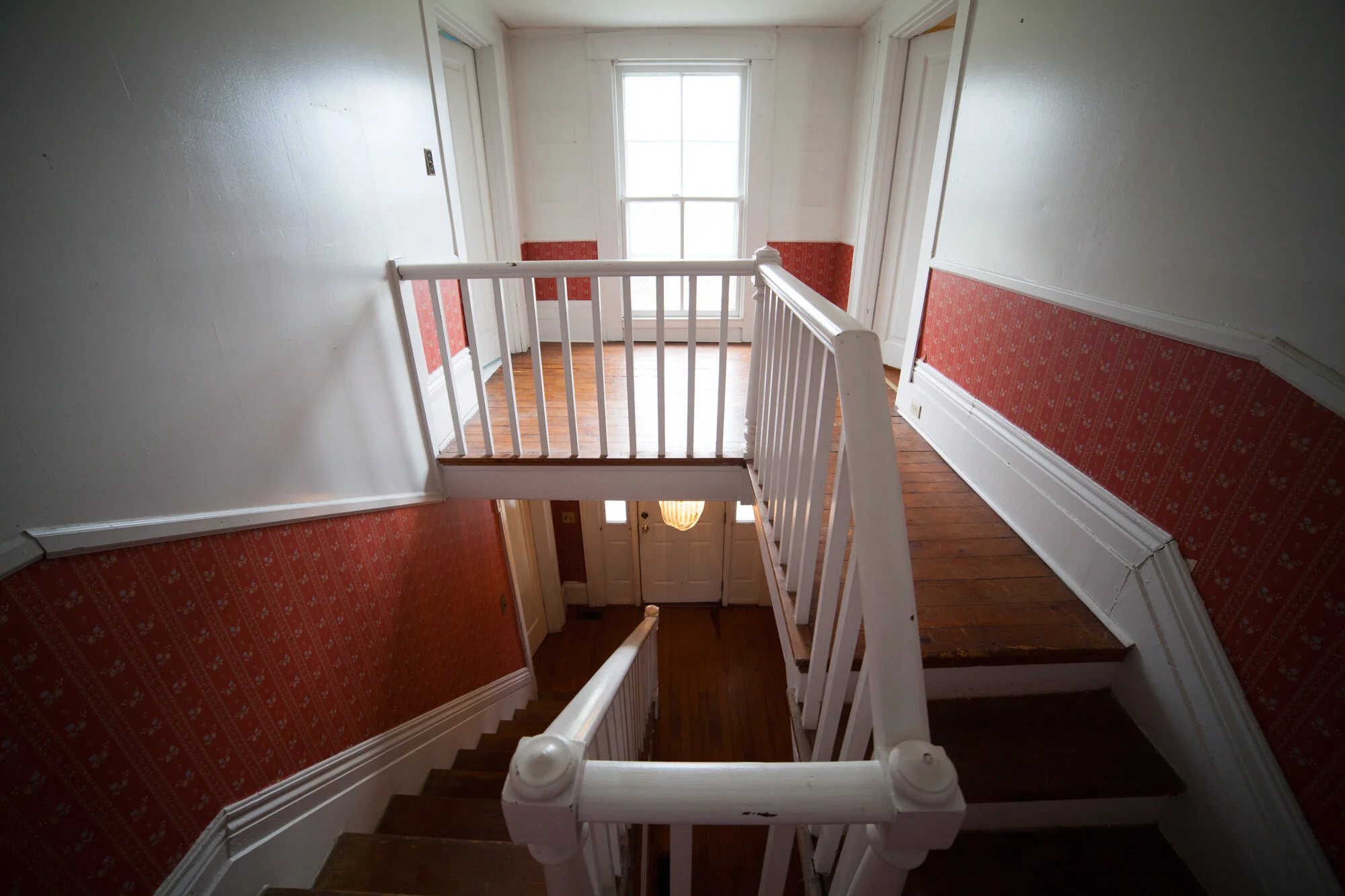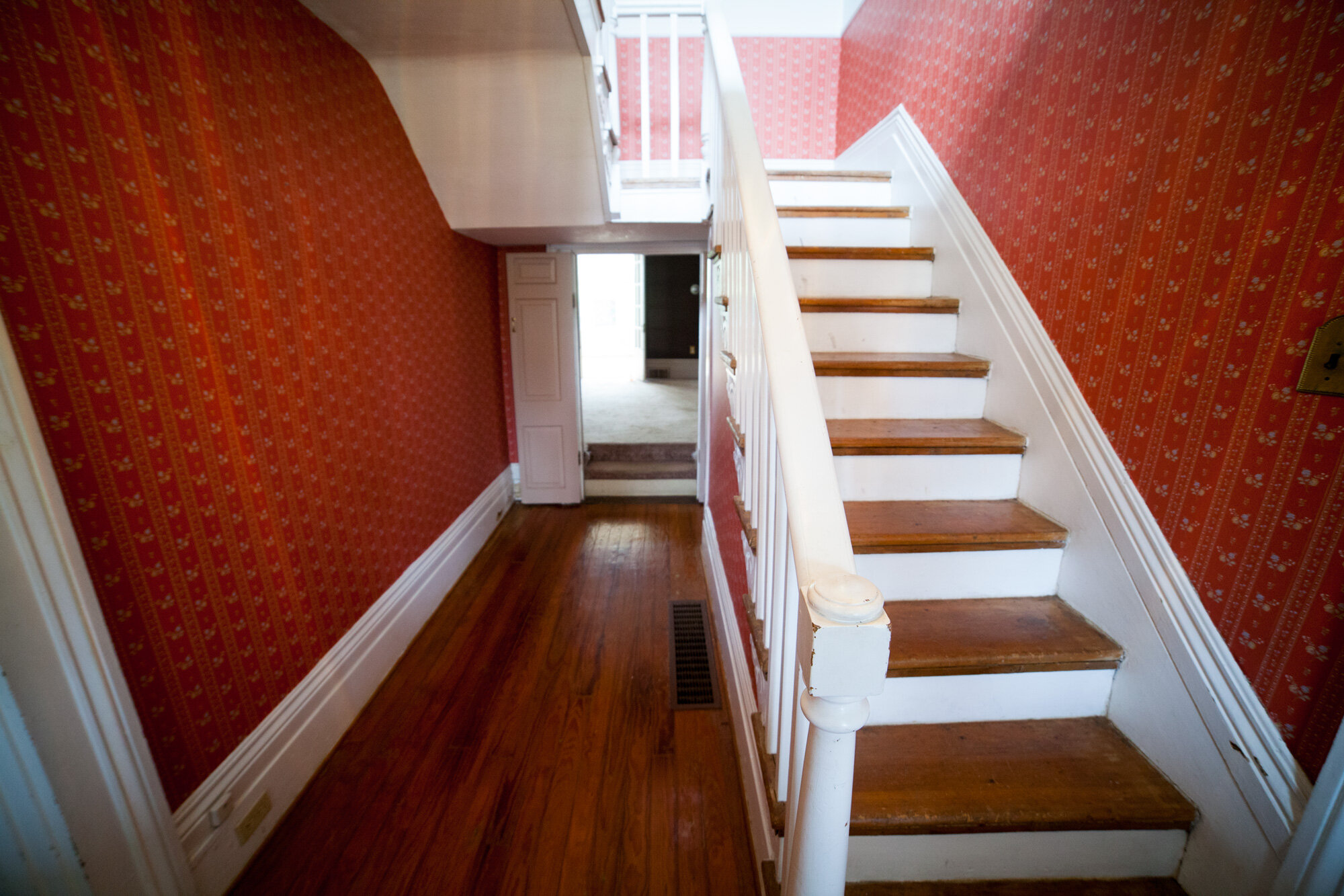 Here's the view from the top of the stairs. I just love the big landing up here with giant window that overlooks Main Street. I can already tell that these will be some of of my favorite nooks and crannies to decorate! Here are my plans for the entryway/staircase area: