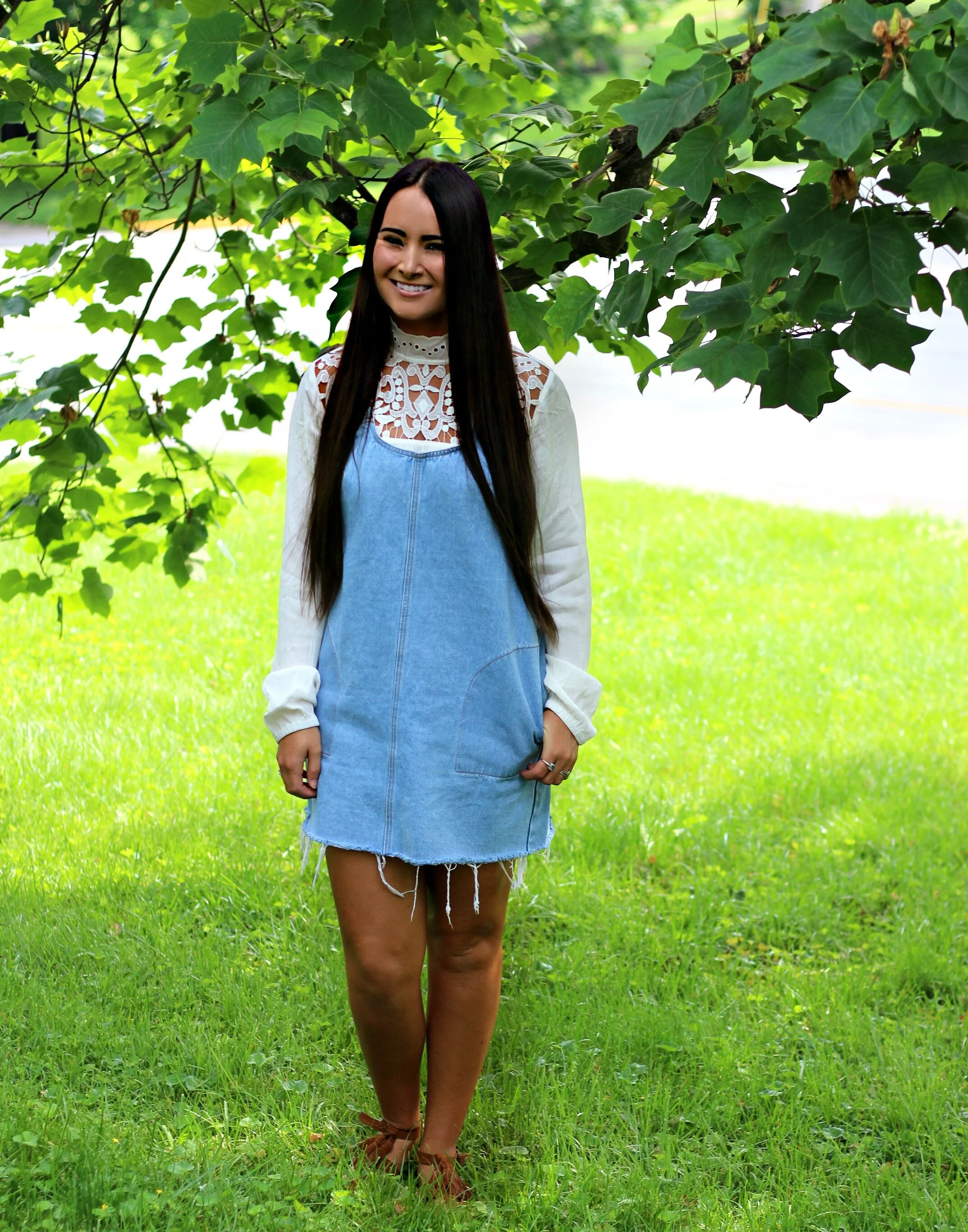 Hello again! I feel like it has been forever since I have blogged and I'm excited to get back into my routine this week now that our big move is behind us. We still have a lot of unpacking, cleaning, and decorating to do, but we survived the bulk of our renovation (including an entire week of living in the house DURING renovation- I would not recommend that). I hope to share more on the progress of the house this week, so more on that later. I was thrilled to actually get dressed today in something other than painting clothes. I LOVE the easy, breezy style of a white blouse for summer. Mock necklines are becoming super popular lately and are also so flattering! I fell in love with this gorgeous white blouse from the Who What Wear line at Target- it has so many beautiful details and such a pretty silhouette. I love to mix up styles so I thought the contrast of denim overalls or a jumper would be so cute with this super feminine blouse. The entire outfit has a very 70's/Marsha Brady vibe, which I love. Last but not least, these cute tassel sandals totally fit the boho vibe and are so comfortable for all day wear. Definitely the perfect summer sandal that you can dress up or down and wear with just about anything! Hope you all have a wonderful Memorial Day weekend, and check back later this week for plenty of fixer upper updates!