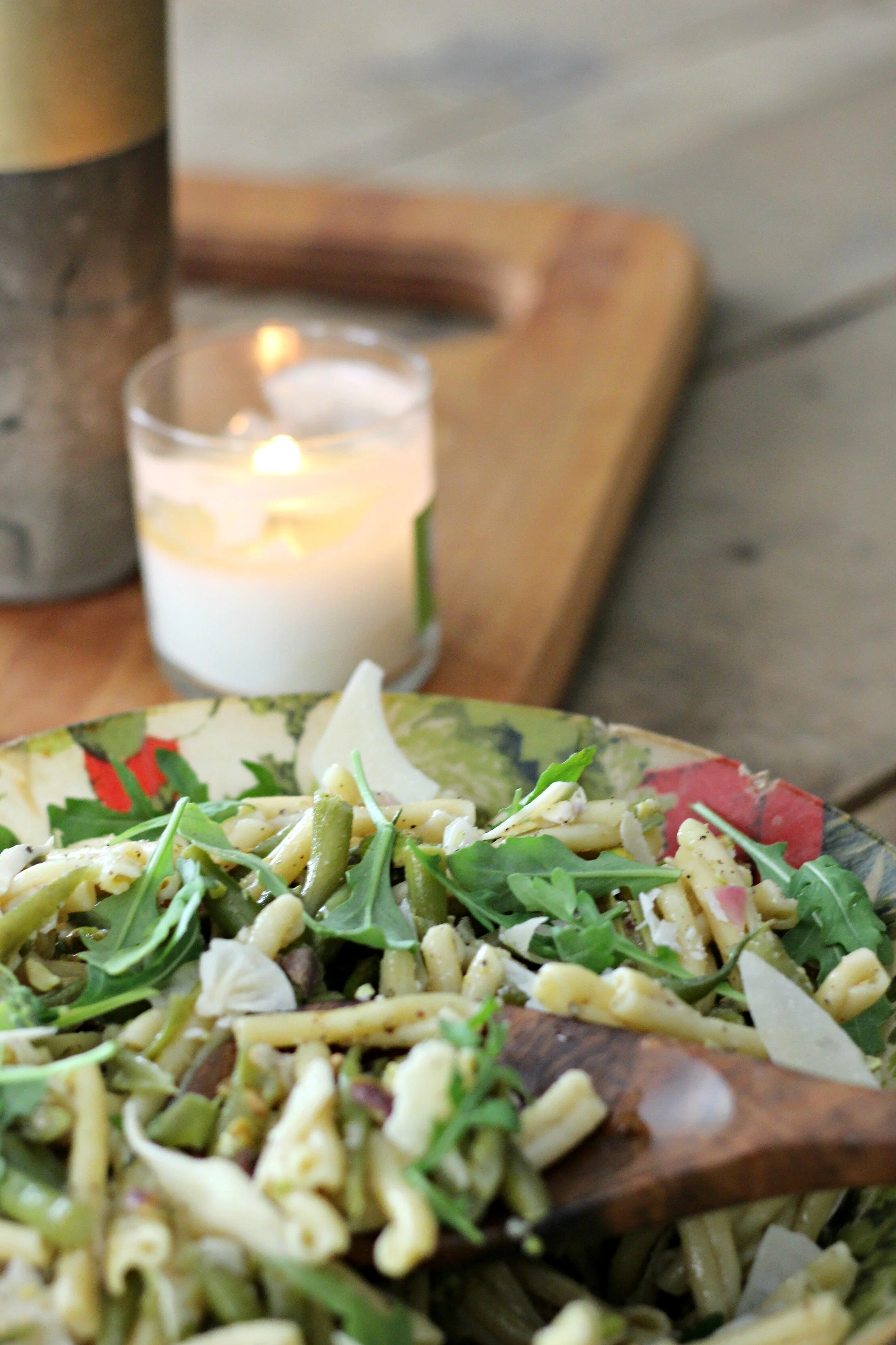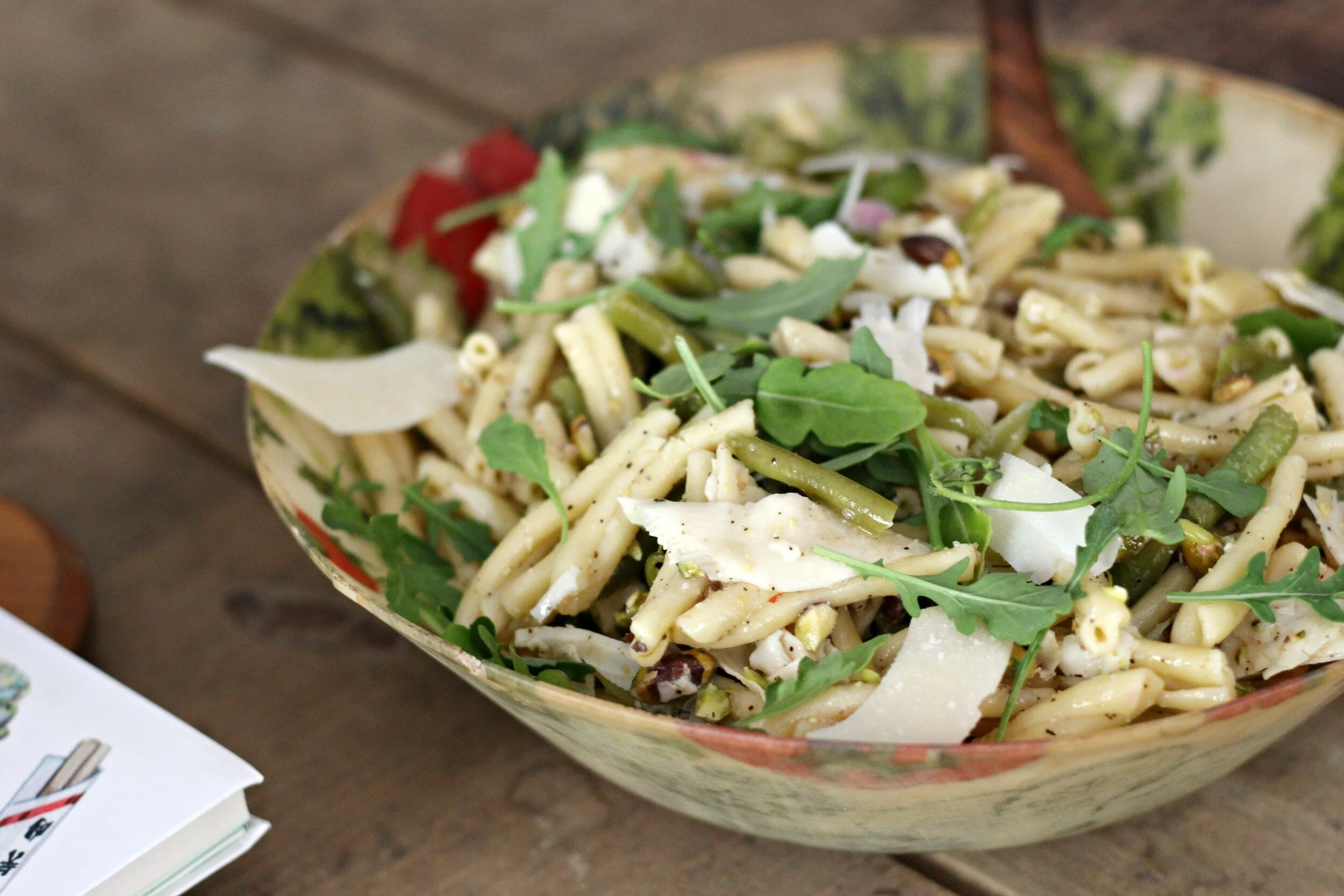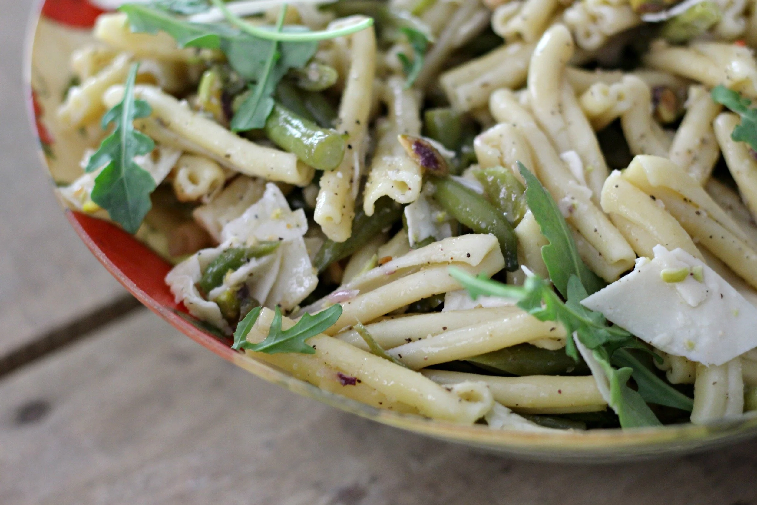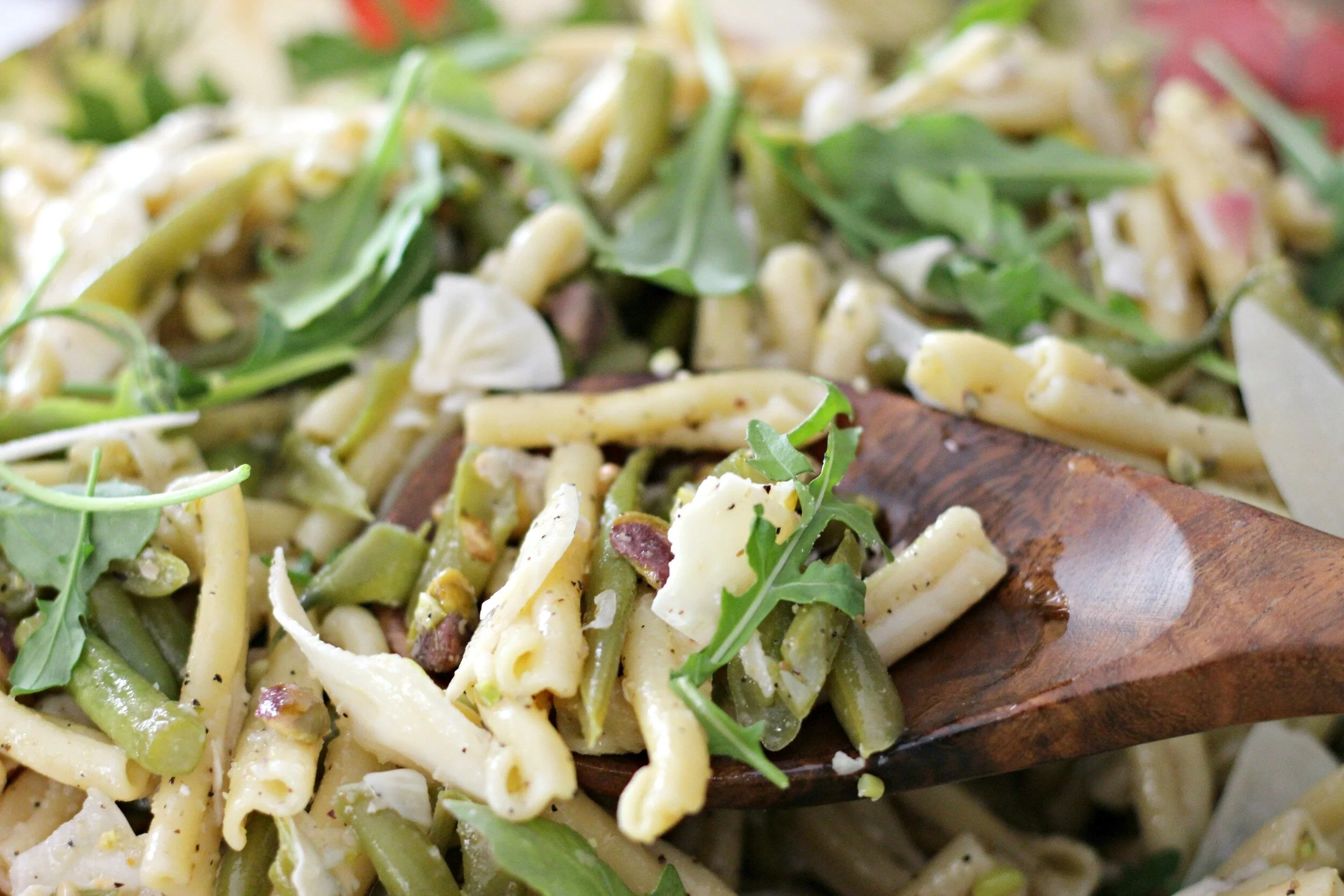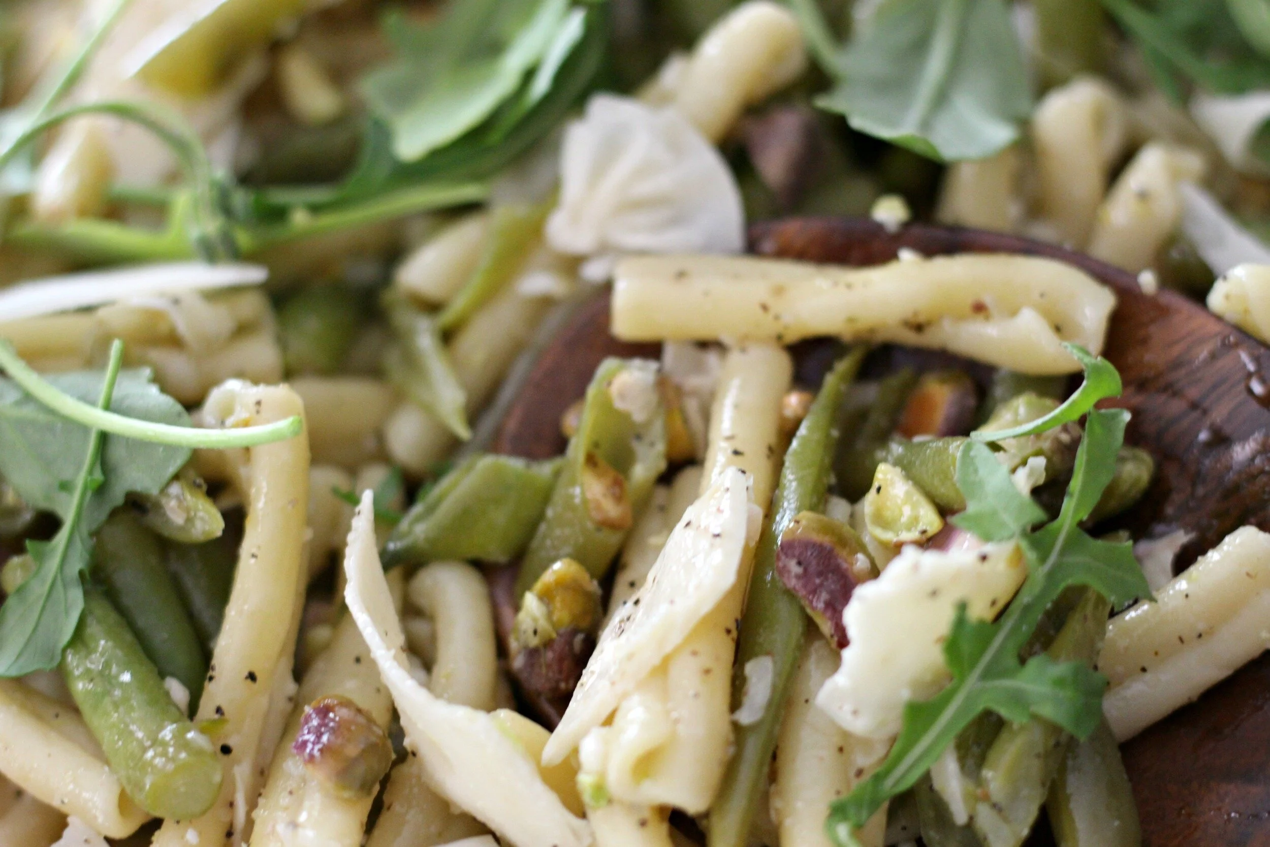 Yum! The oil, vinegar, and spices add just the right amount of flavor while still keeping this dish super light and fresh tasting. I LOVE this "casarecce" pasta and it is one of my new favorites for any kind of pasta dish. It has a slightly firm texture but still really soaks up all of the flavors of the dressing. I especially like the crunch that the green beans and pistachios add, as well as the contrasting bright, peppery flavor of the arugula. The lemon zest adds just the right touch of citrus without being super overpowering. I hope you love this dish as much as we did- plan on getting plenty of requests for it after you share with your friends!