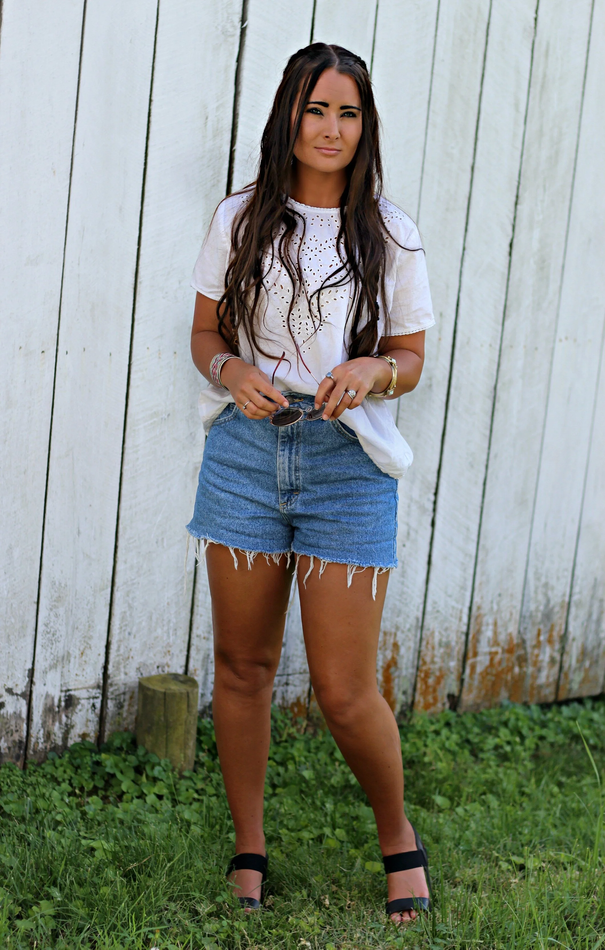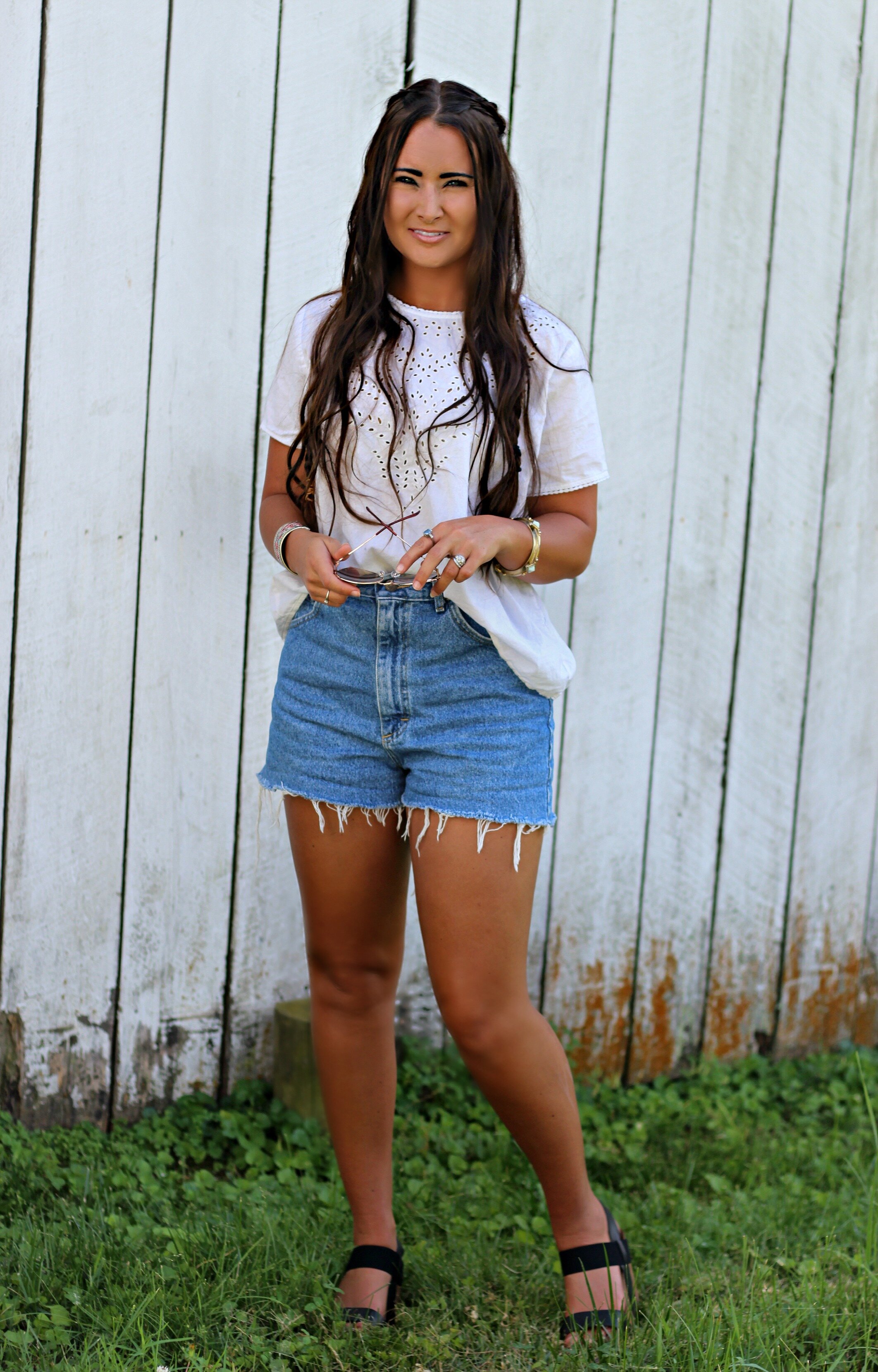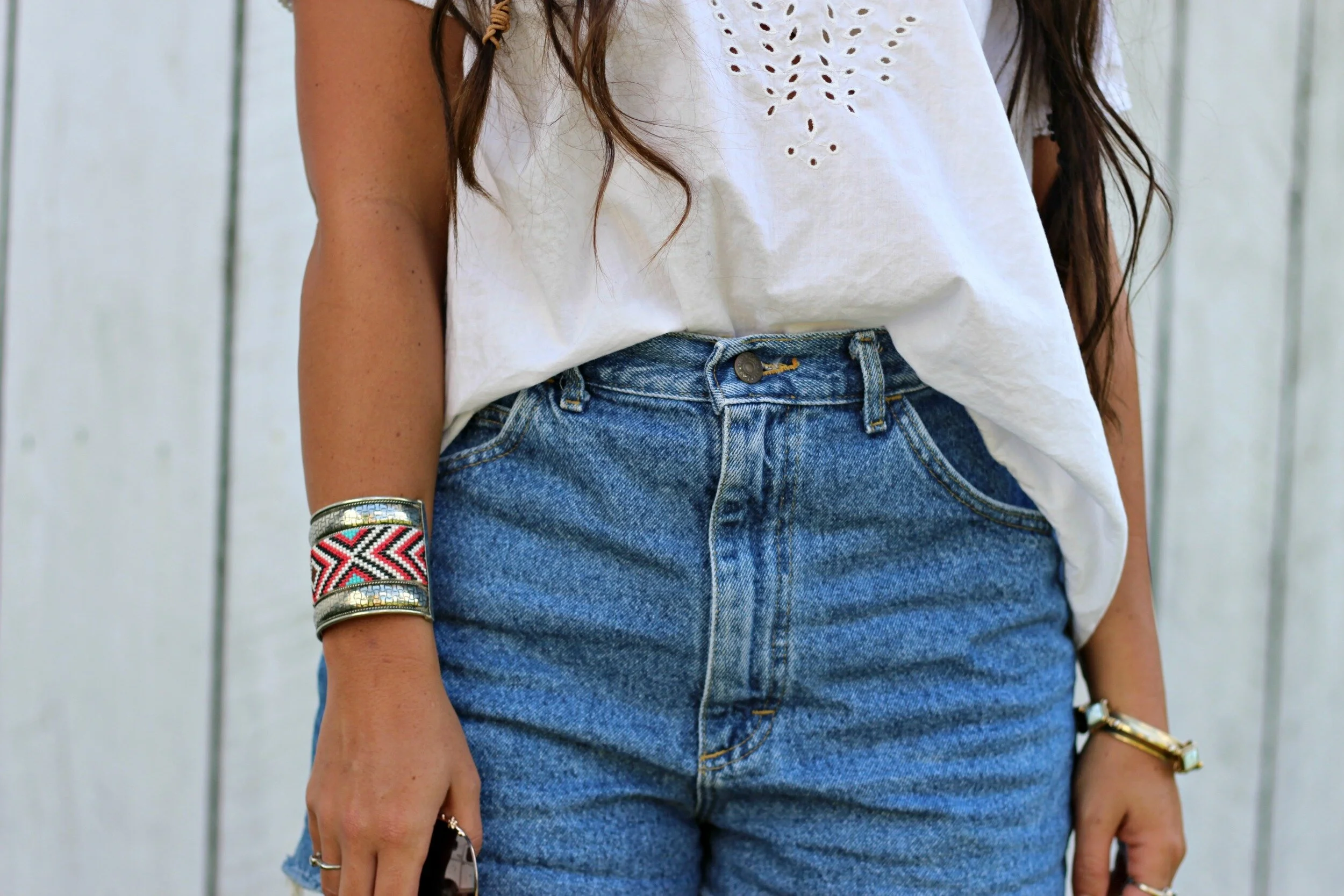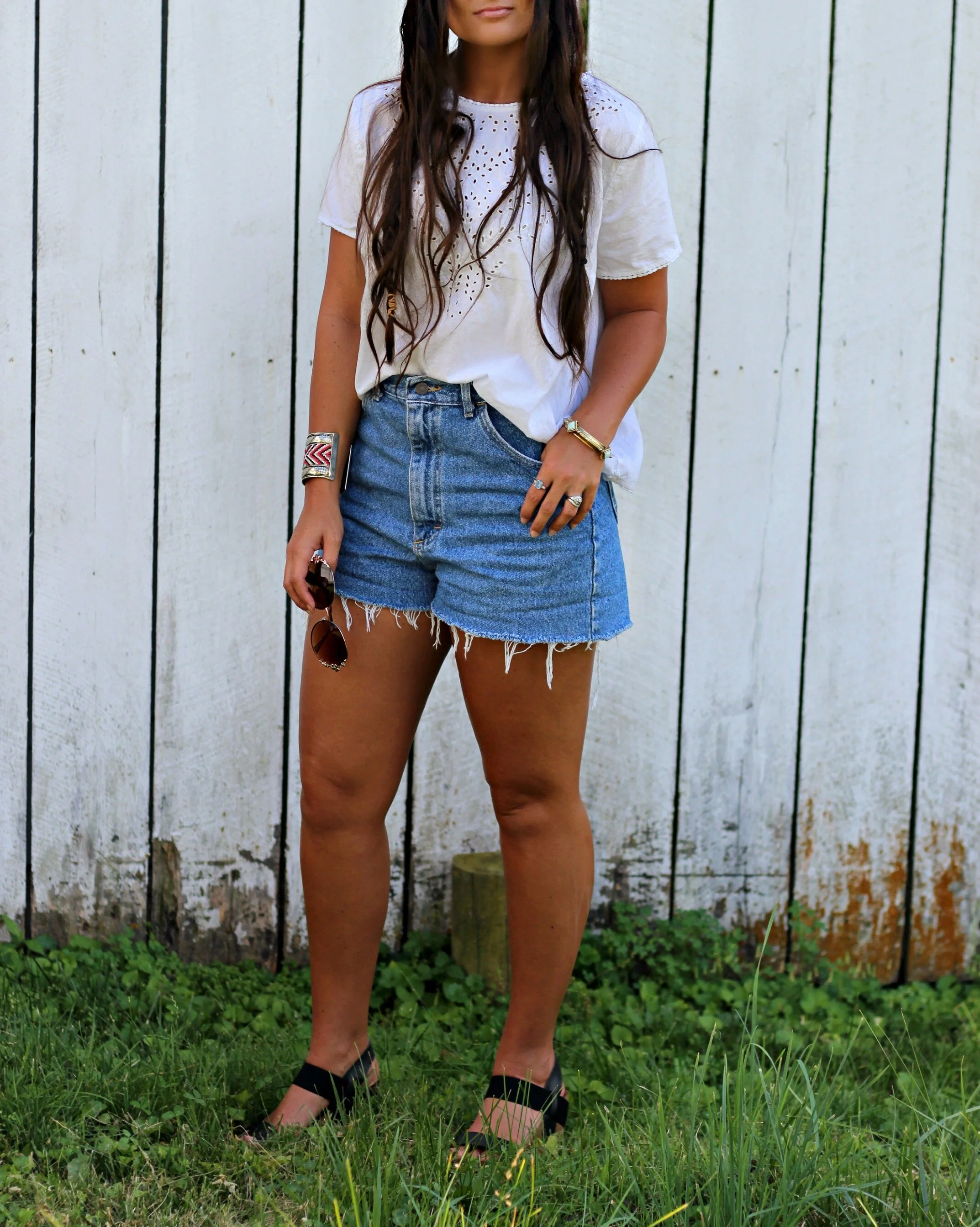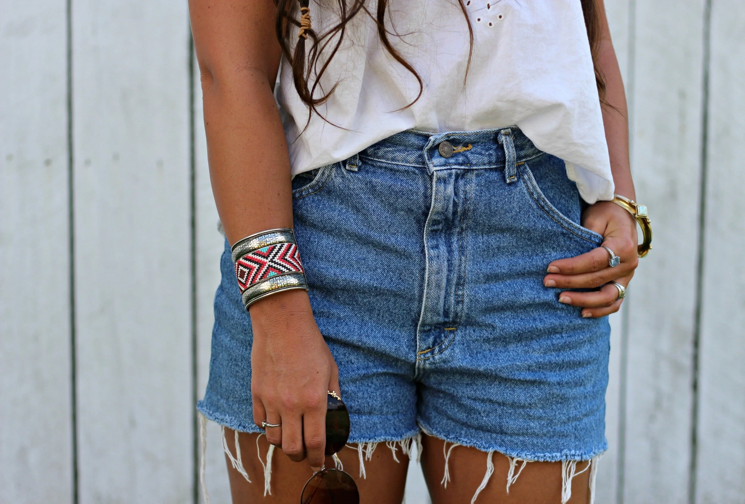 2. Vintage denim cut-offs- these have been my go-to for years and my secret is that I make all my cut-off shorts from vintage jeans that I usually find at the thrift store! If you want the true high-waist cut and perfect fit, this is the only way to go! Here is one of my favorite tutorials for making your own cutoffs- just simply cut off at your desired length (slightly at an angle) and then throw them in the wash to get the frayed effect.