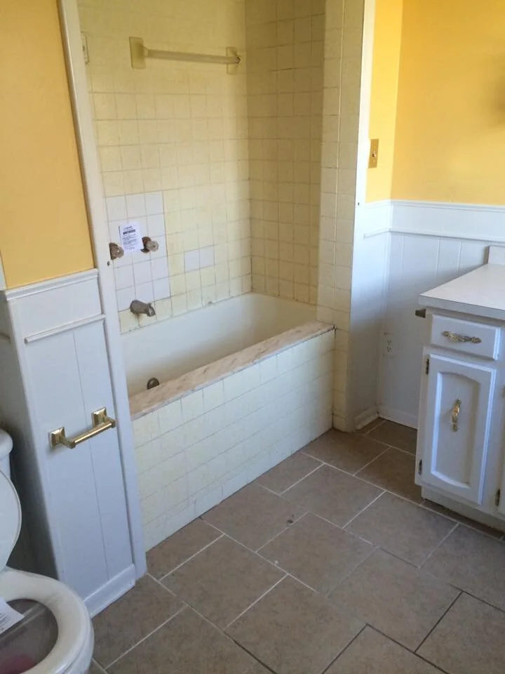 The tub ledge that leads into the shower was super tall and took quite an effort to step over! By converting this space into a walk-in shower we were able to take advantage of the space better, push the walls back a bit more, and remove that awkward feature.