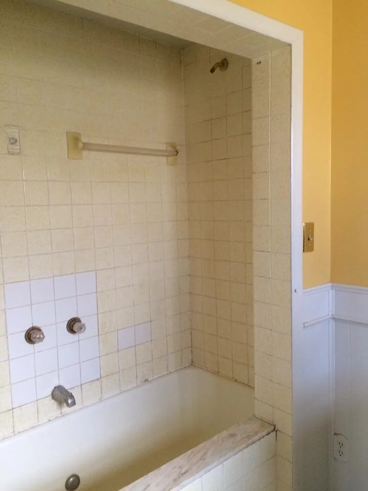 Here you can see the old tub/shower that was very outdated and not in the best shape.