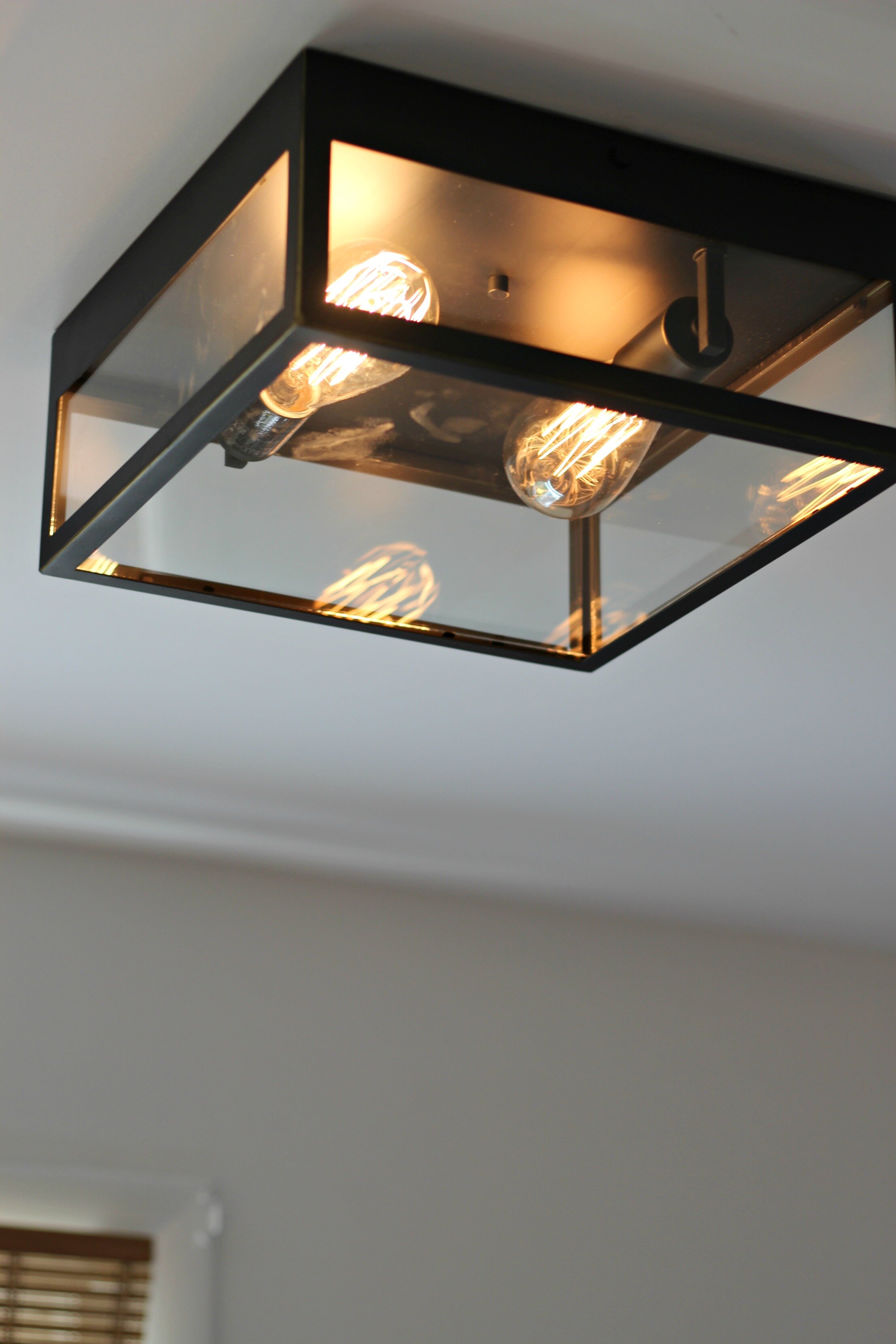 Here's a close-up of our ceiling light that I used in several different rooms throughout the house. This super-affordable flush-mount option is from Lowe's and it looks even better in person!