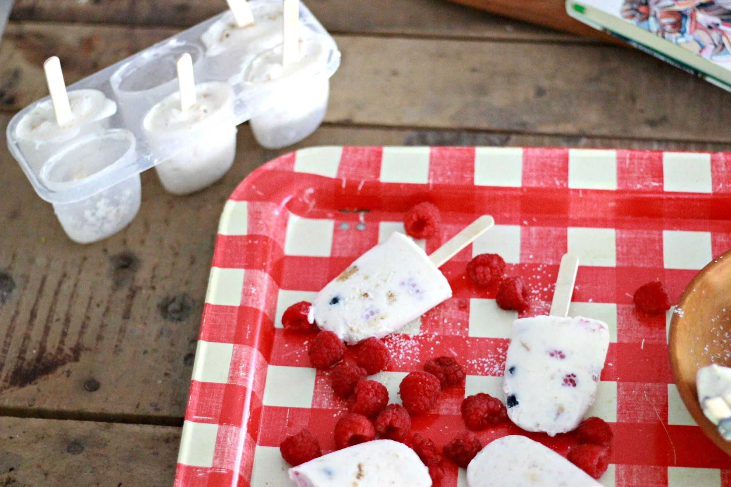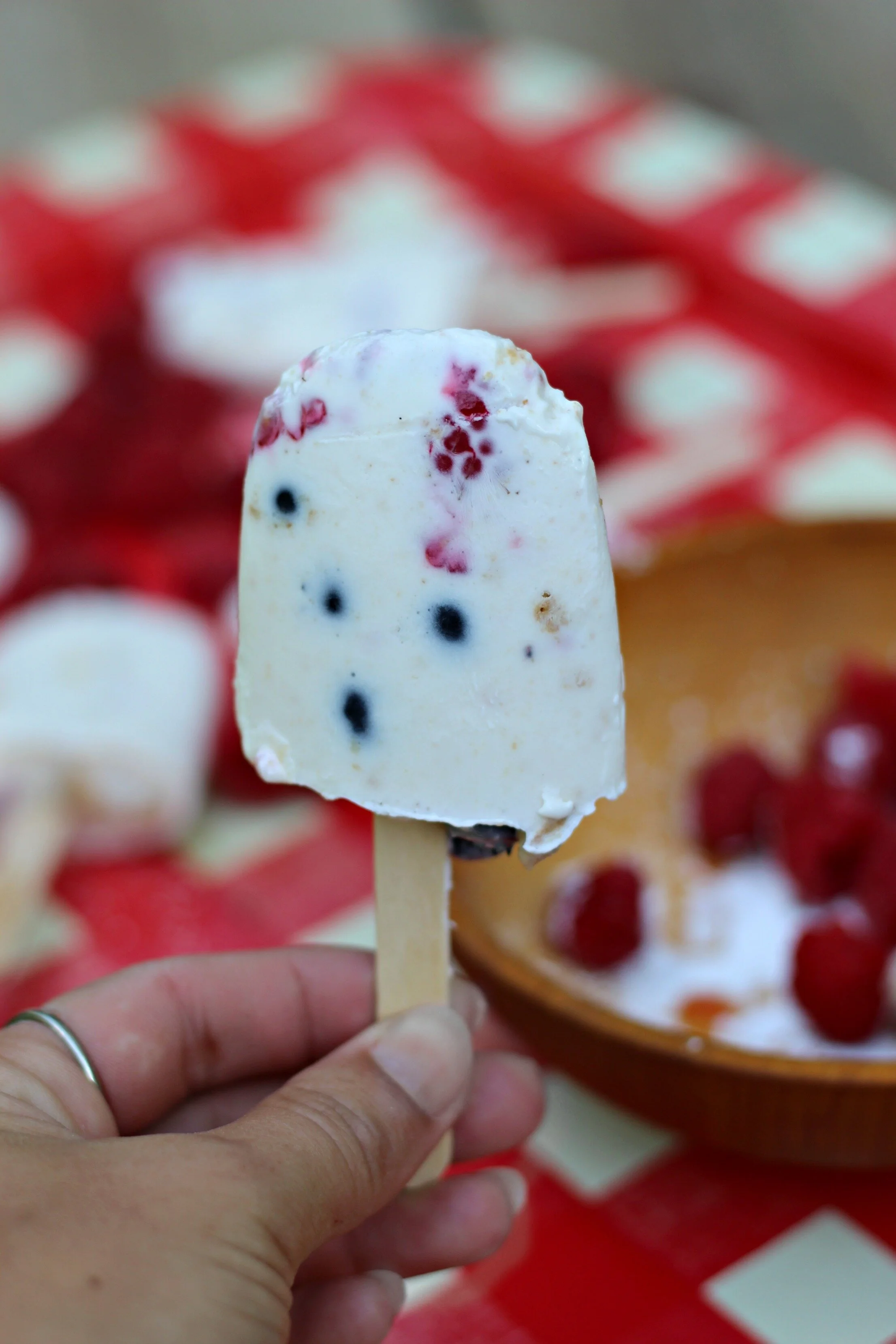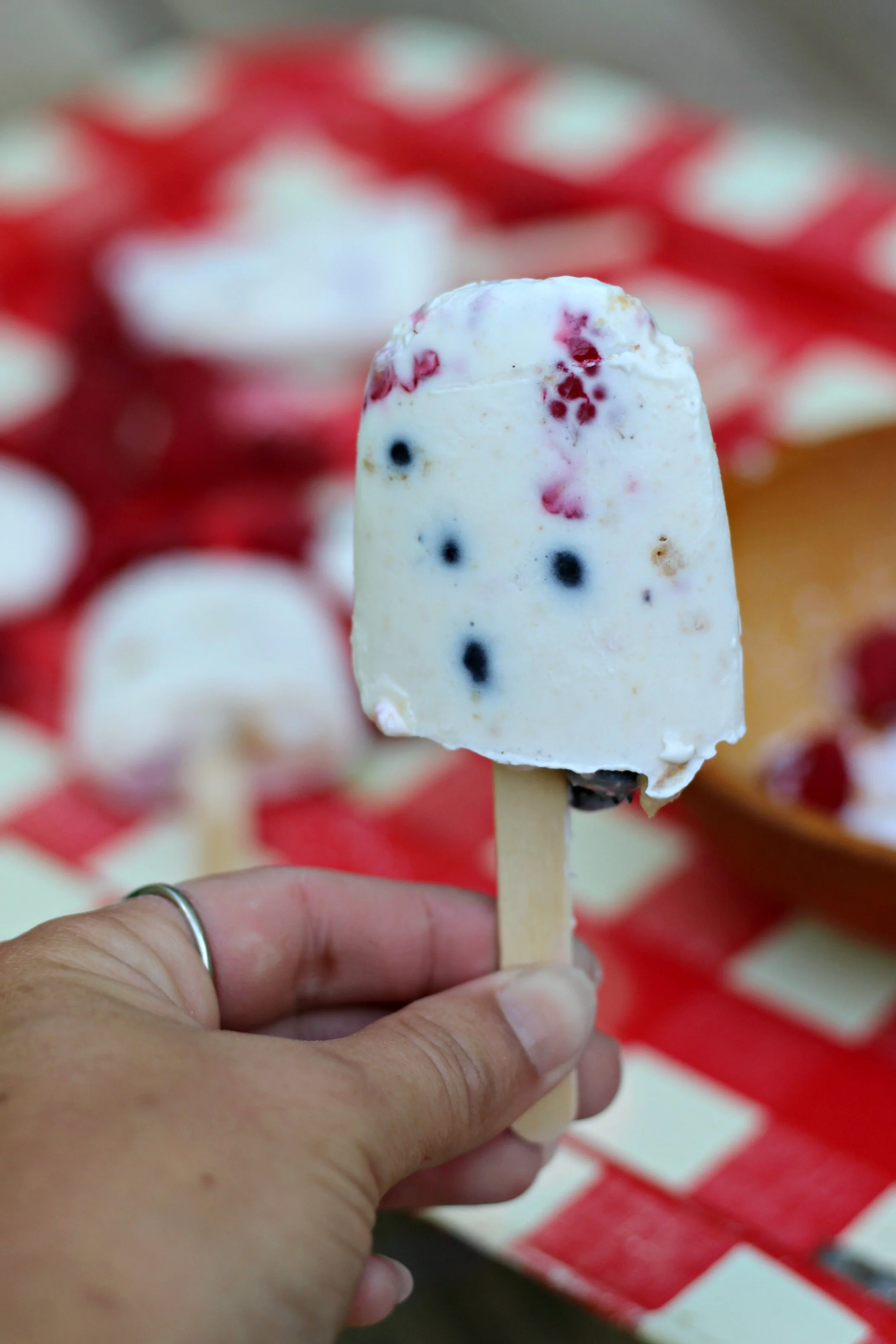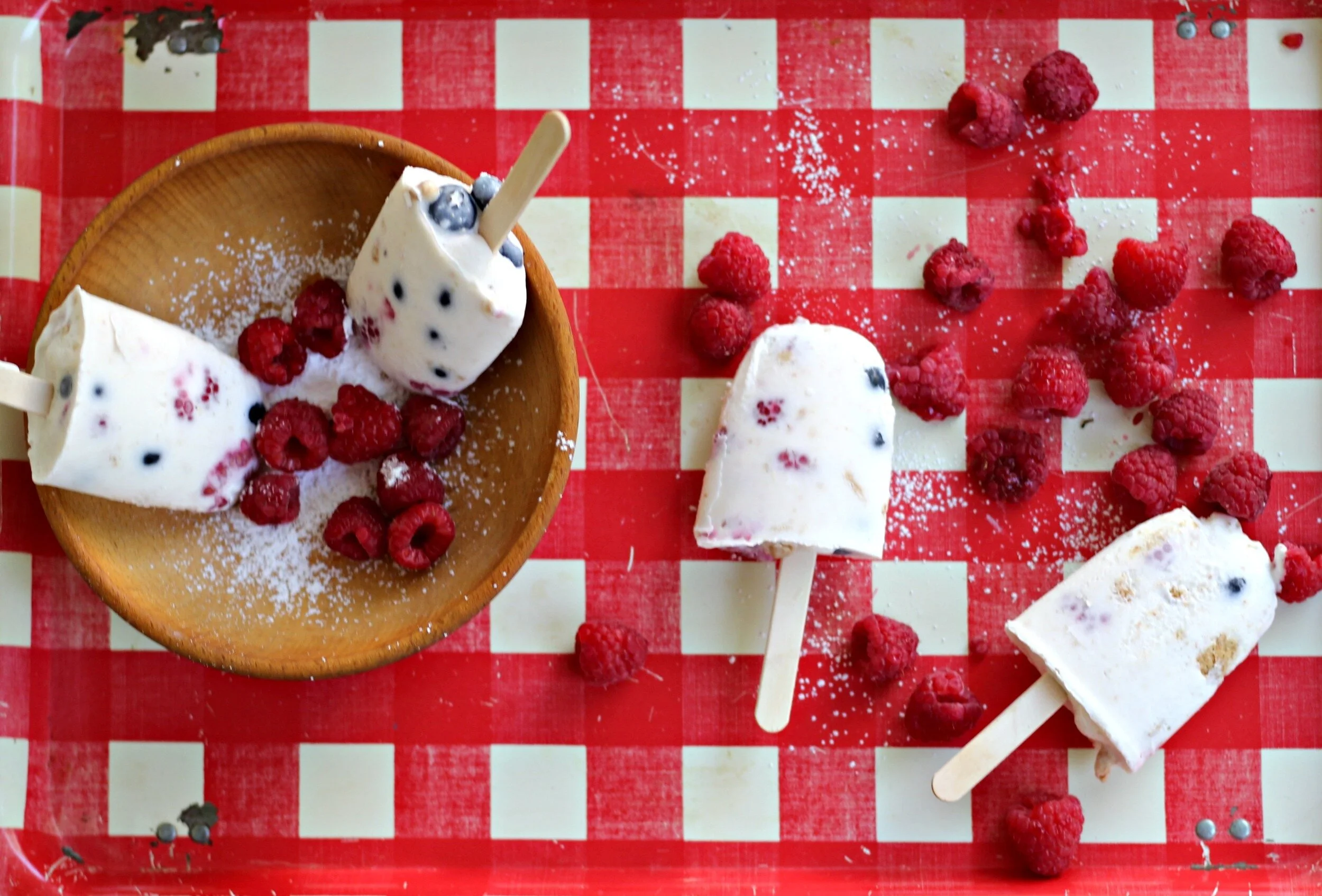 Even though I am not a huge popsicle or icecream fan, I AM a huge fan of cheesecake, so these were a winner in my book!  They are so rich and creamy, melt in your mouth, and the fruit adds the perfect amount of brightness.  I also love the little bit of crunch and contrasting flavor that the graham crackers add.  I can't think of a cuter dessert to serve at your 4th of July cookout or pool party!  Enjoy and have a wonderful holiday weekend!