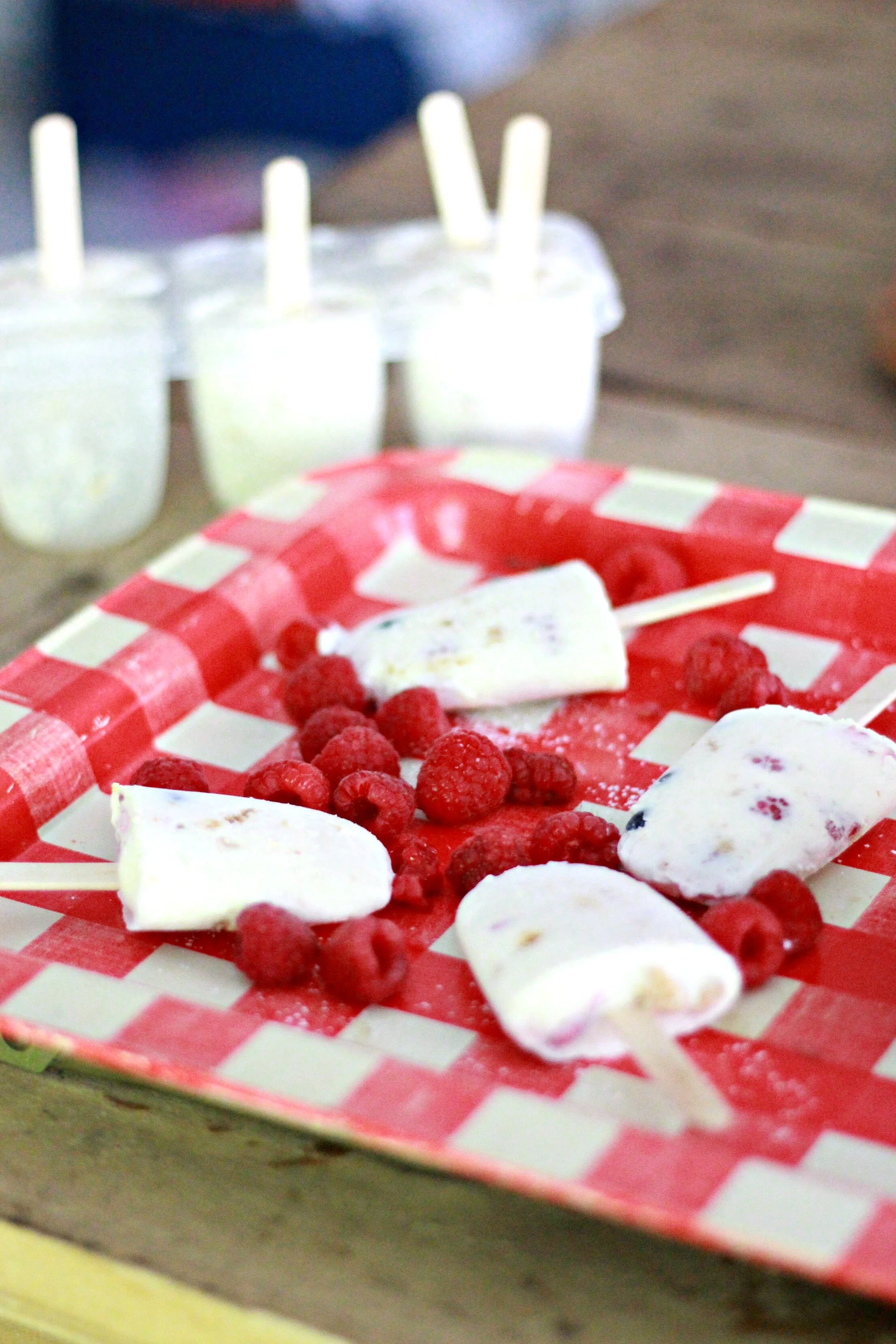 I'm kicking off the 4th of July weekend a little early by making the most quintessential summer dessert, popsicles!  Even better, these popsicles are perfectly patriotic: filled with red, white, and blue!  These are a dessert that your entire family will enjoy and you can easily whip them up for an entire crowd! There are only a few ingredients and just a couple of steps, then you let your freezer do the rest!  You can find the full ingredients list and instructions below: