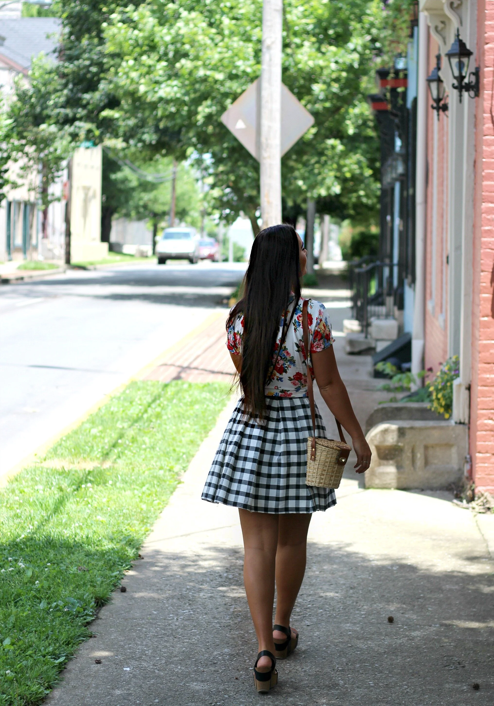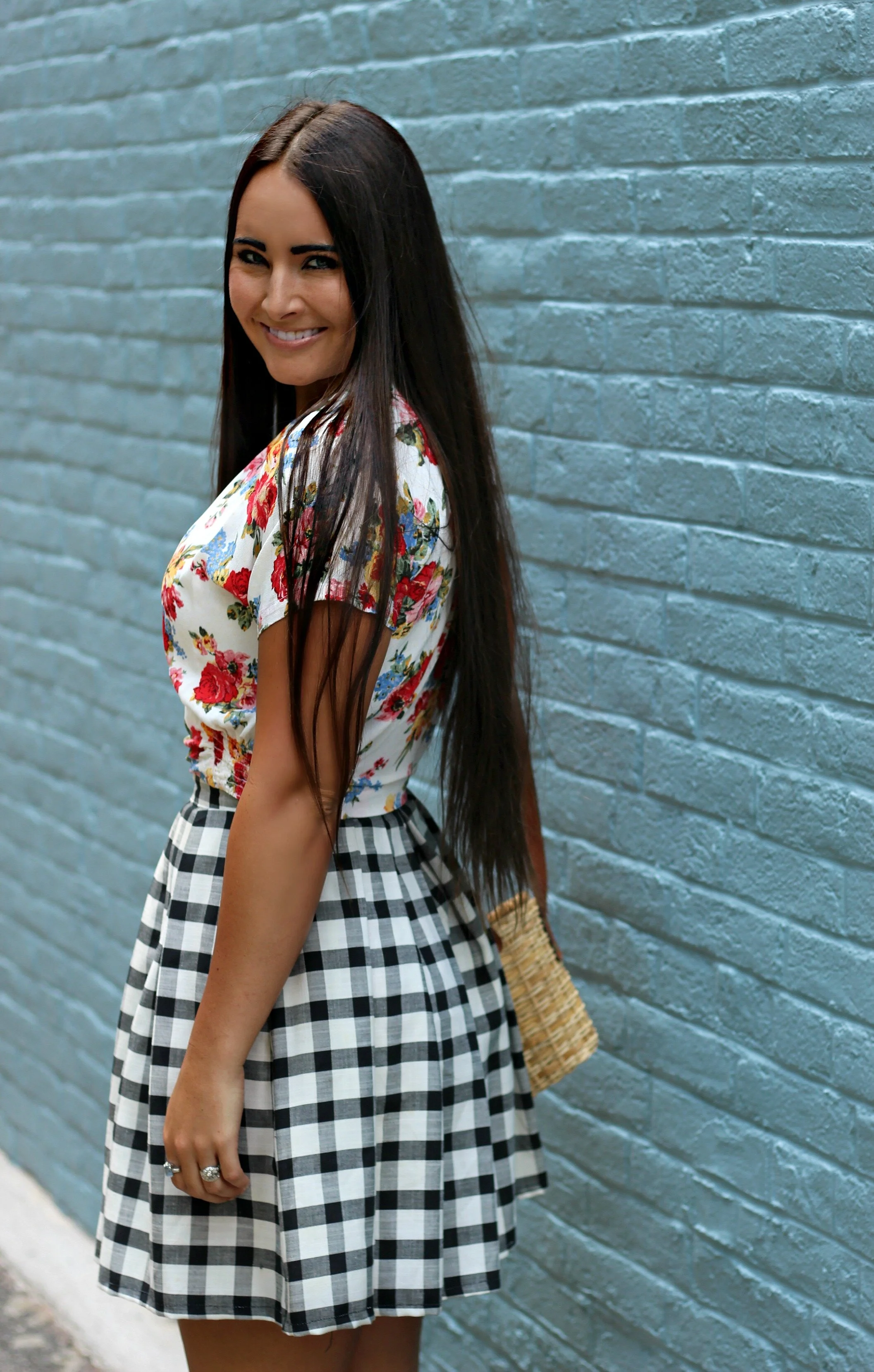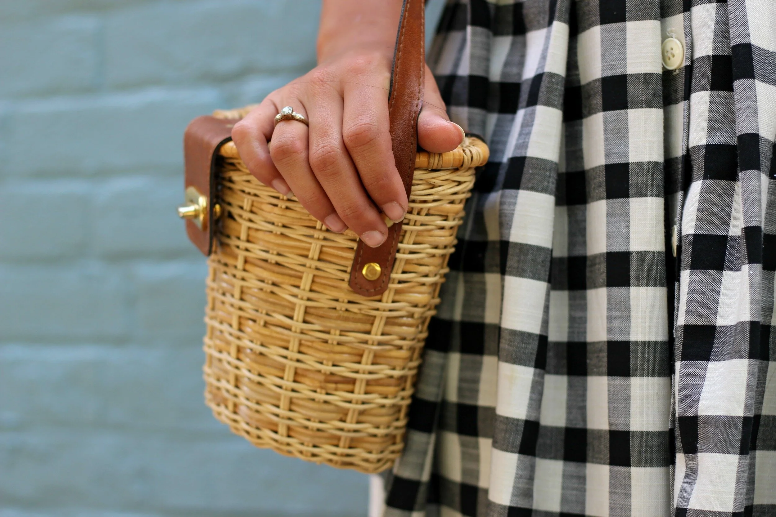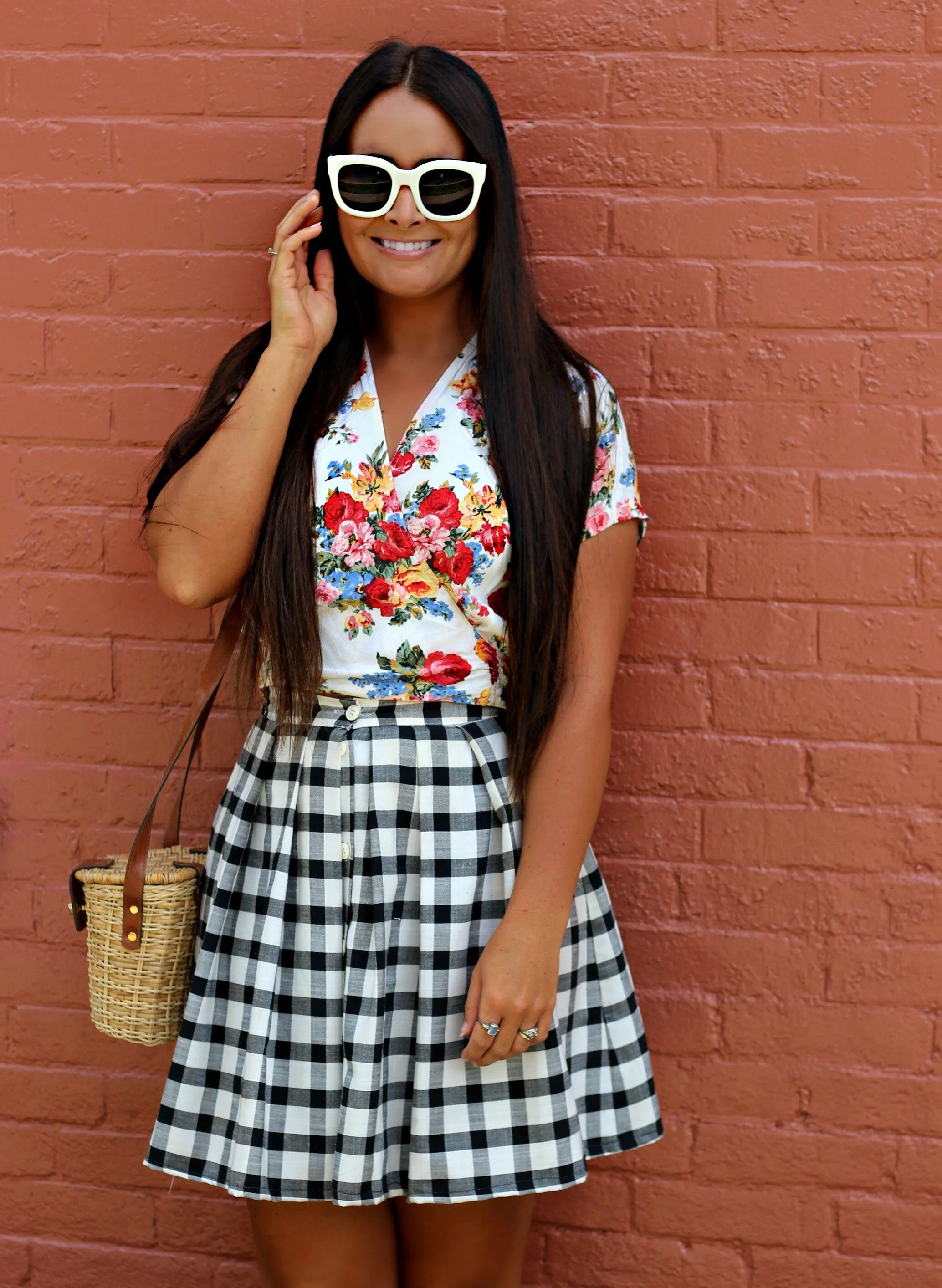 Gingham, bright florals, and basket purses are the epitome of summer to me, and this outfit just happens to include all three! All these items are vintage finds that I have had for years and will probably still wear for years to come. Gingham is basically a neutral to me (especially when it's black and white) and I love to mix it with different prints and bright colors. When mixing prints, I always pay attention to scale: the gingham is a very large, chunky geometric print and the floral is small and dainty so the two can work together instead of competing with each other. I love this guide from Who What Wear with plenty of tips and pattern-mixing inspiration. This site also has a great collection of pattern-mixing outfit ideas. Just remember as long as YOU love your outfit and wear it with confidence, no one will question if you are truly "matching" or not!