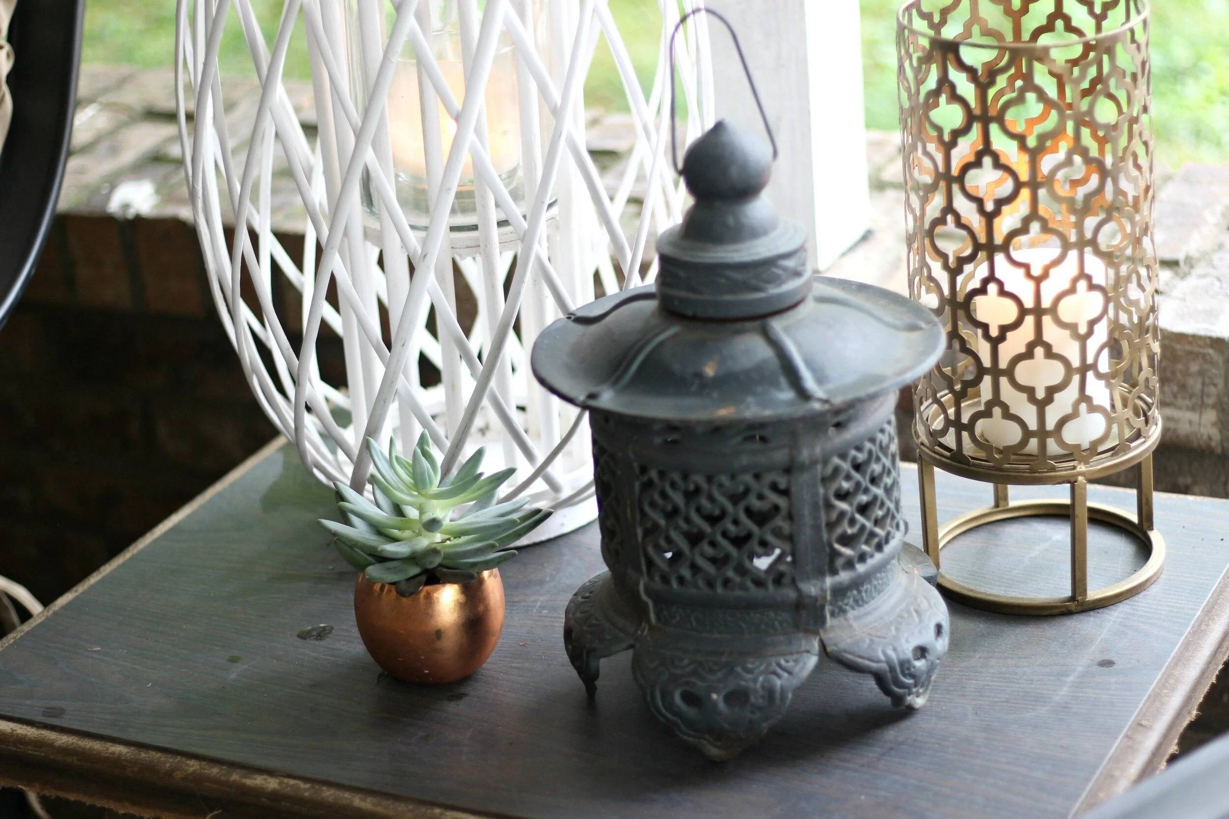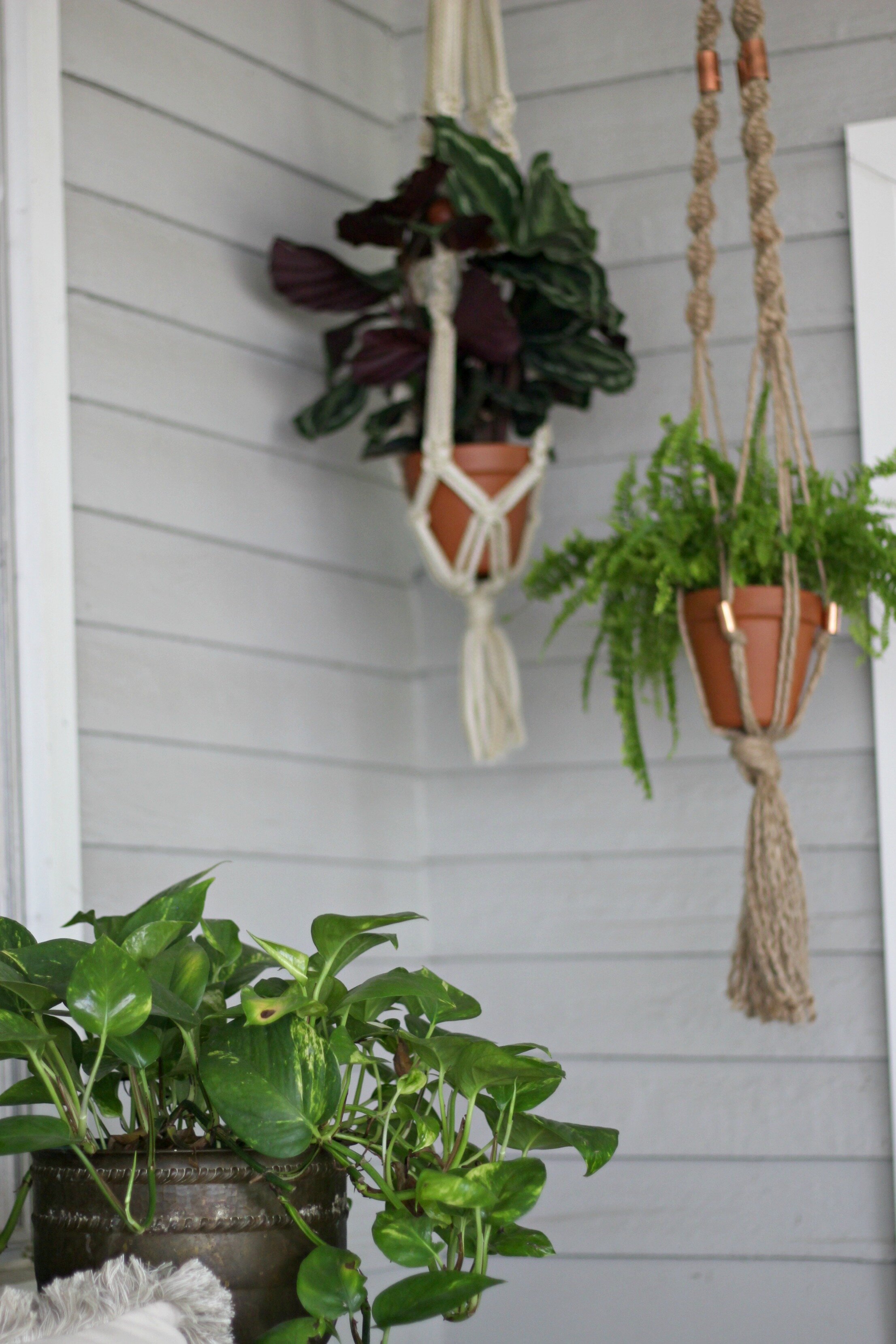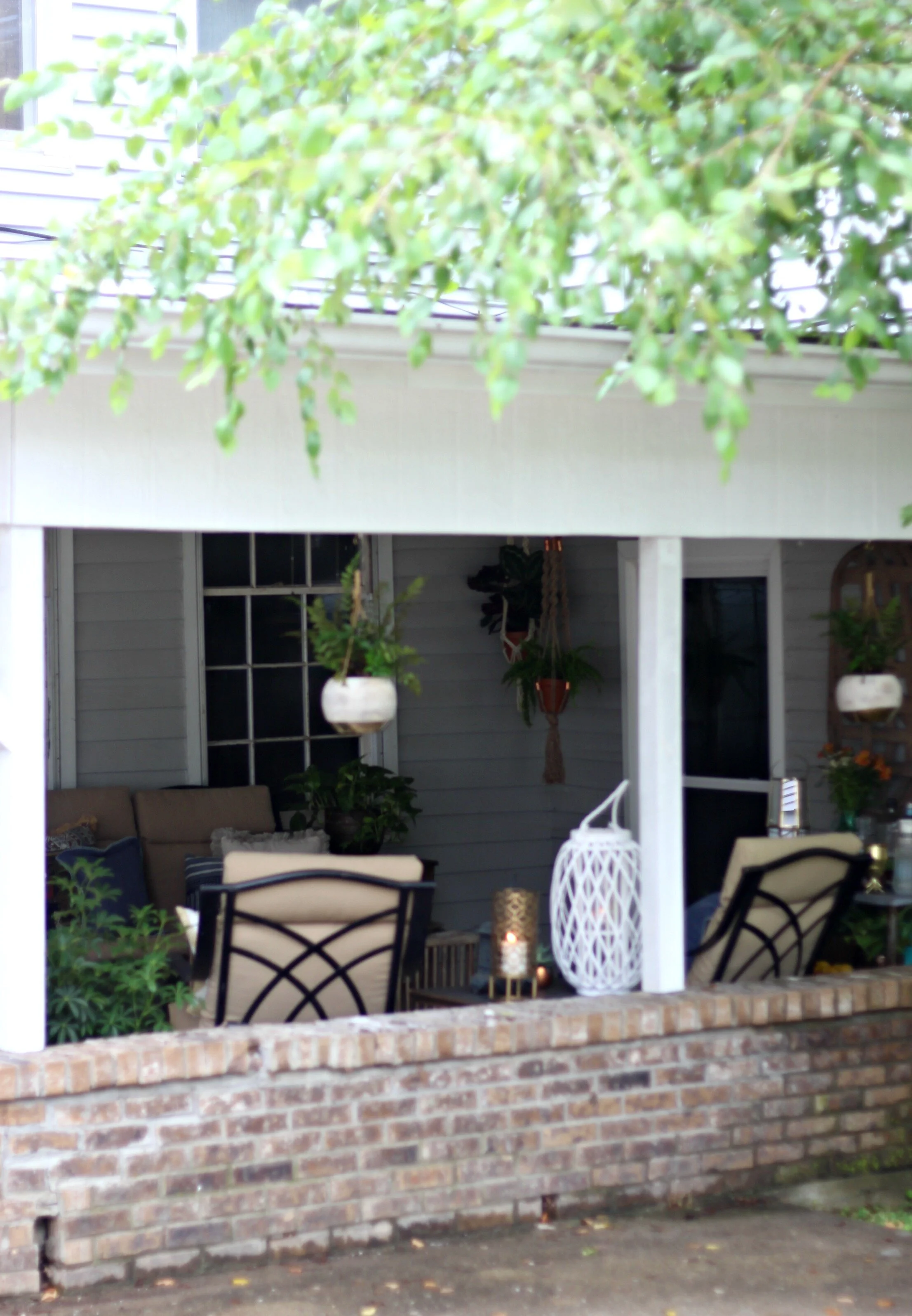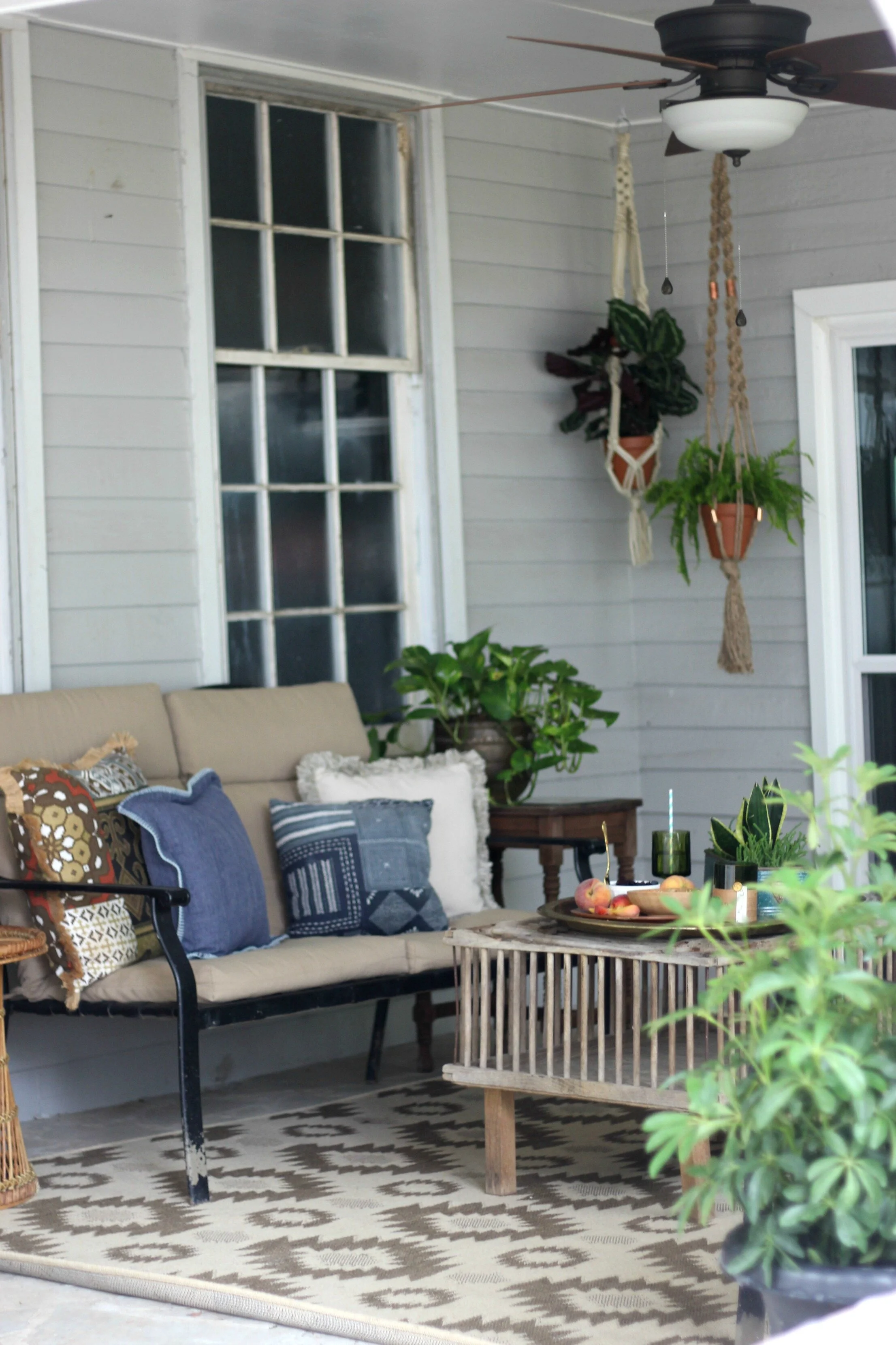 7. Planters: I love having an eclectic mix of planters. I have tons of vintage brass planters (mostly found at garage sales) but also like mixing in new planters like these gold-dipped ones from Target. I also love the texture that these vintage hanging macrame planters from Street Scene Vintage add to the space. I get most of my plants from Lowe's or local greenhouse, Pemberton's. For me, plants are a must for a porch and I would choose this to splurge on above anything else. These are really going to make your porch feel perfectly styled, bright, and like a space straight out of a magazine.