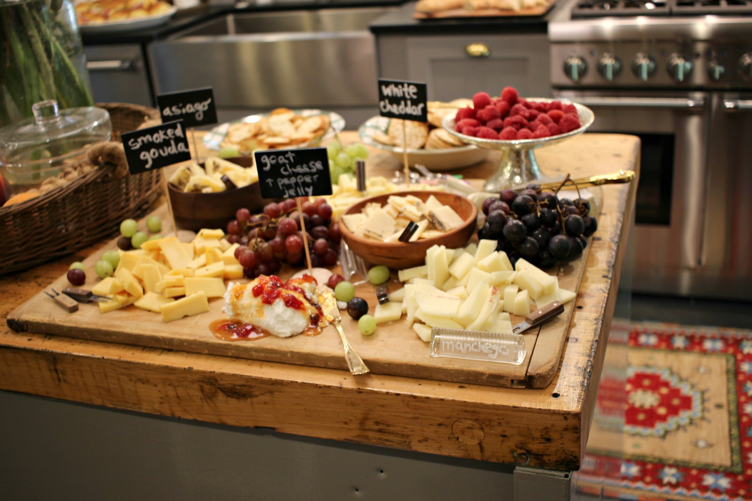 cheese + fruit plate with two types of crackers (seen above- check out my easy charcuterie for a sample shopping list. I usually buy everything at Trader Joe's for these including the crackers!)