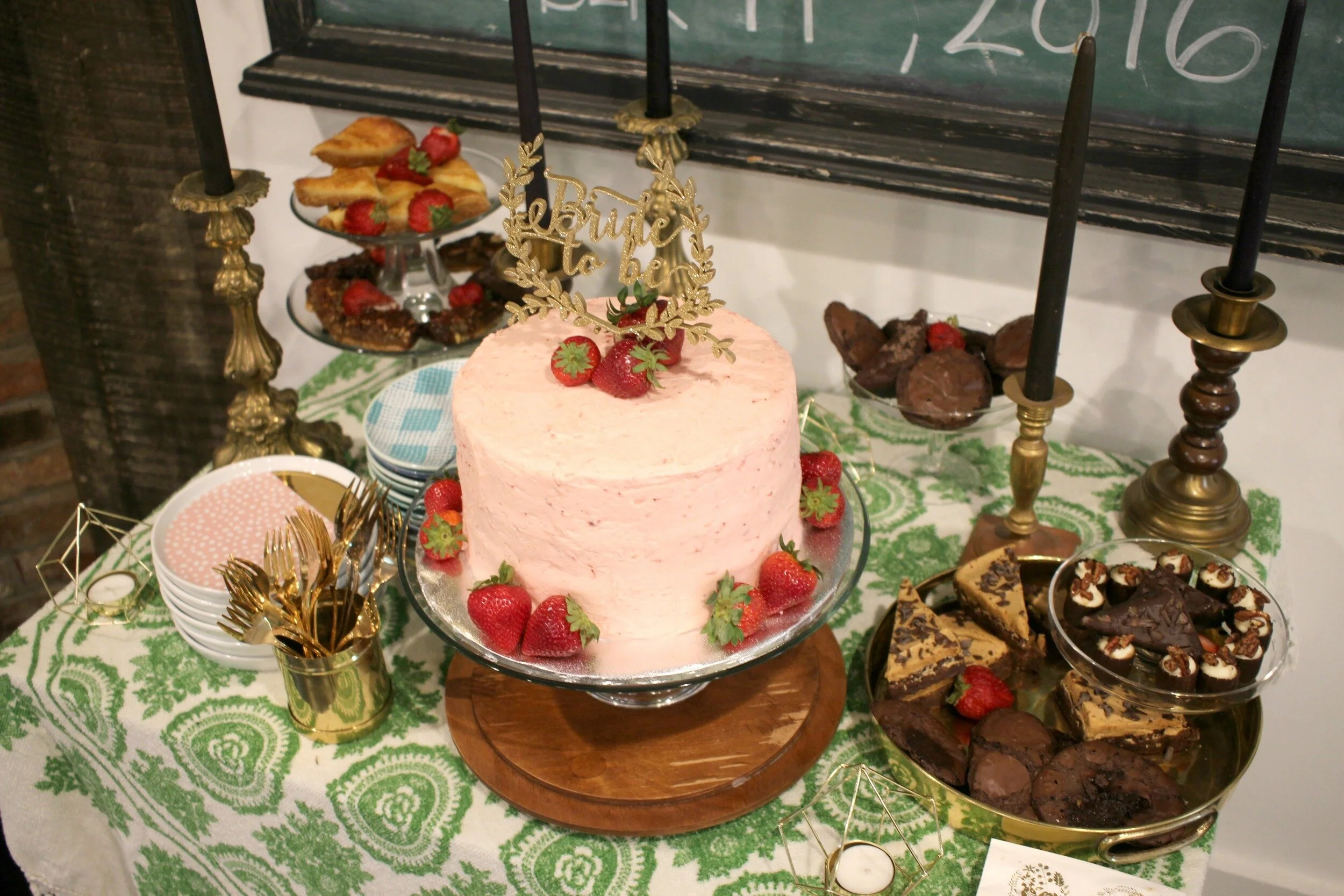 My friend RaAnn makes this amazing fresh strawberry cake and it was the star of the shower (it is SO delicious)! I found the cute toppers on Etsy (here and here). All the other bite-sized desserts were from local Versailles caterer Sweet Lilu's. They were all so yummy and Sweet Lilu's was so helpful and extremely affordable!