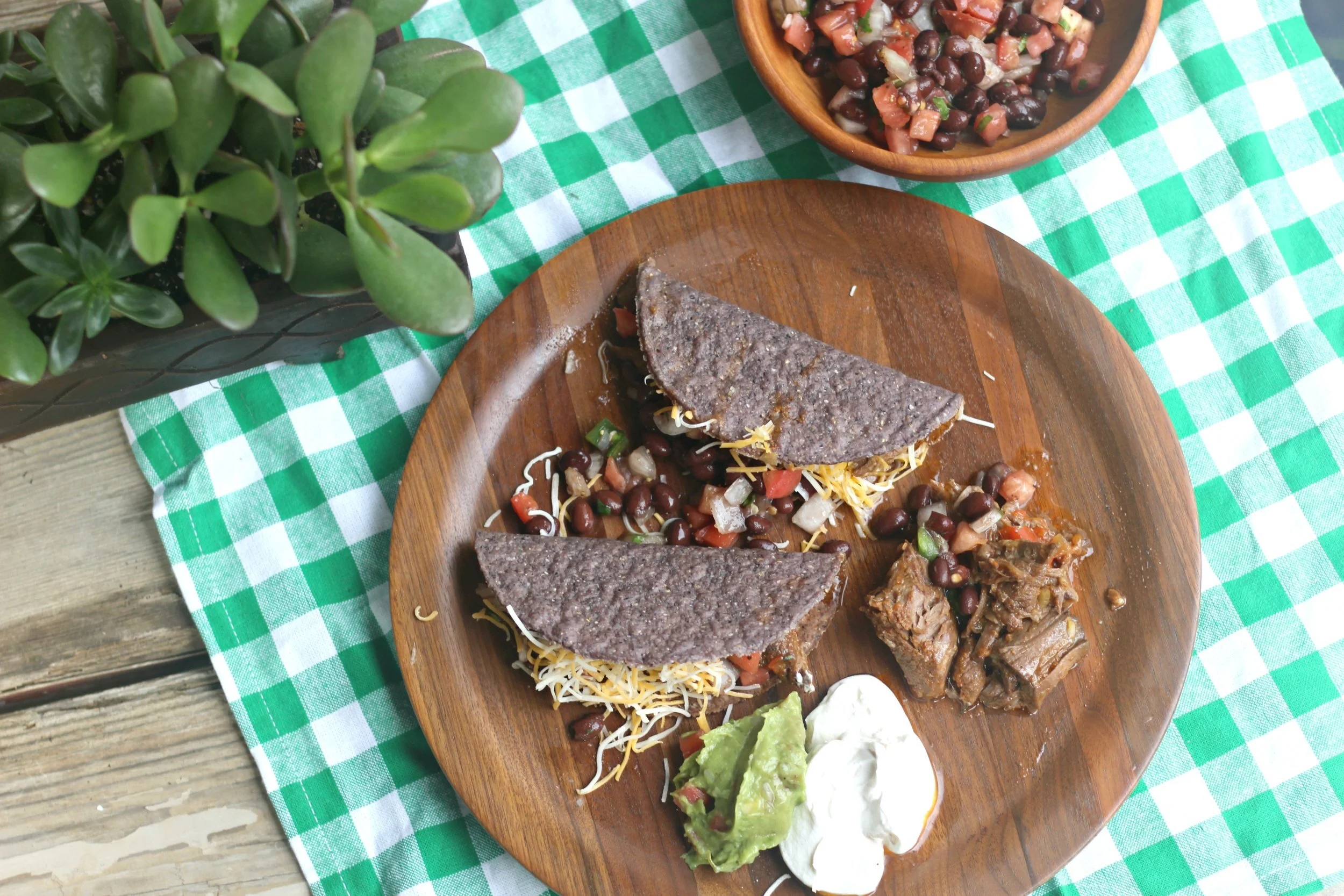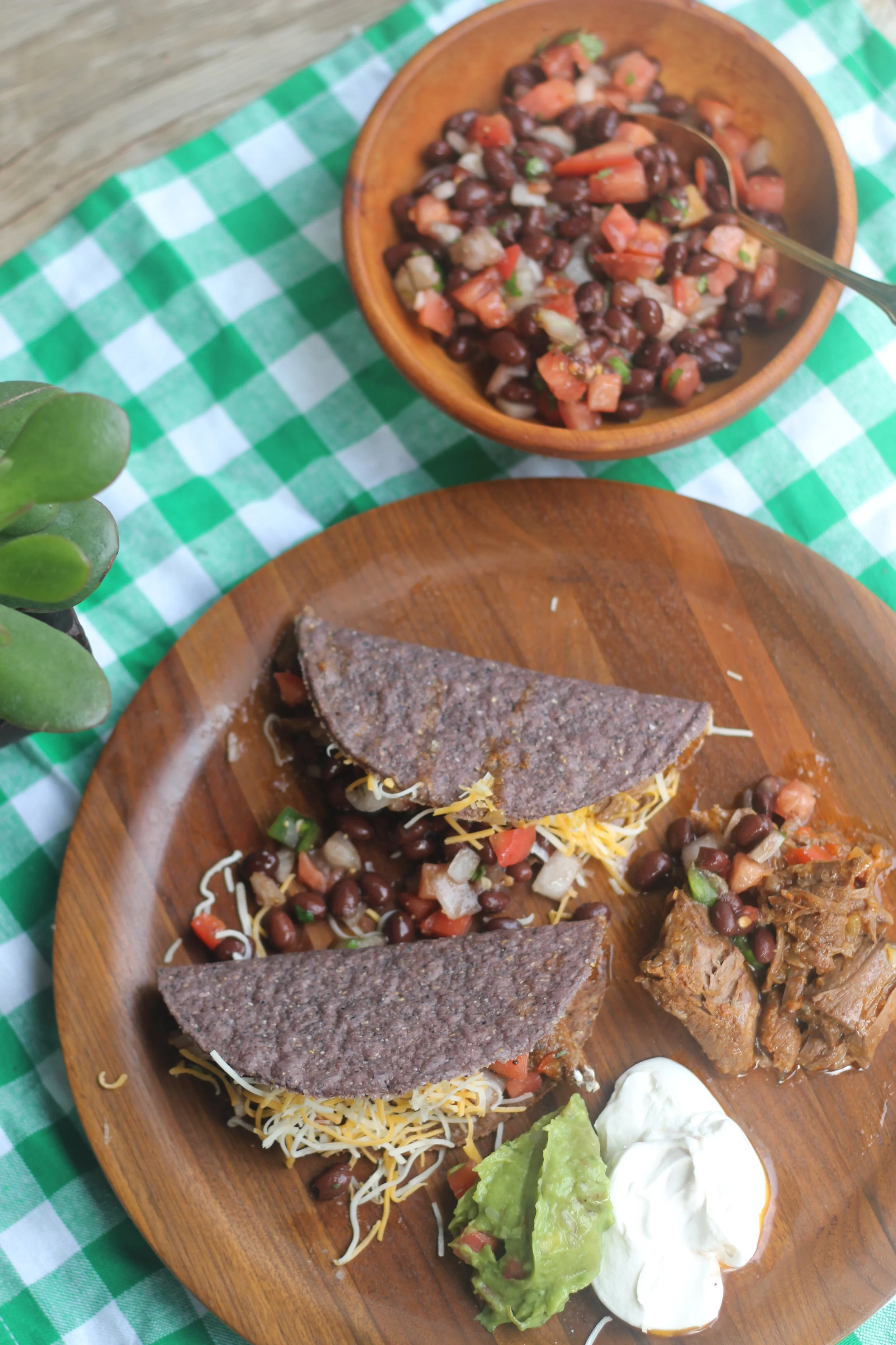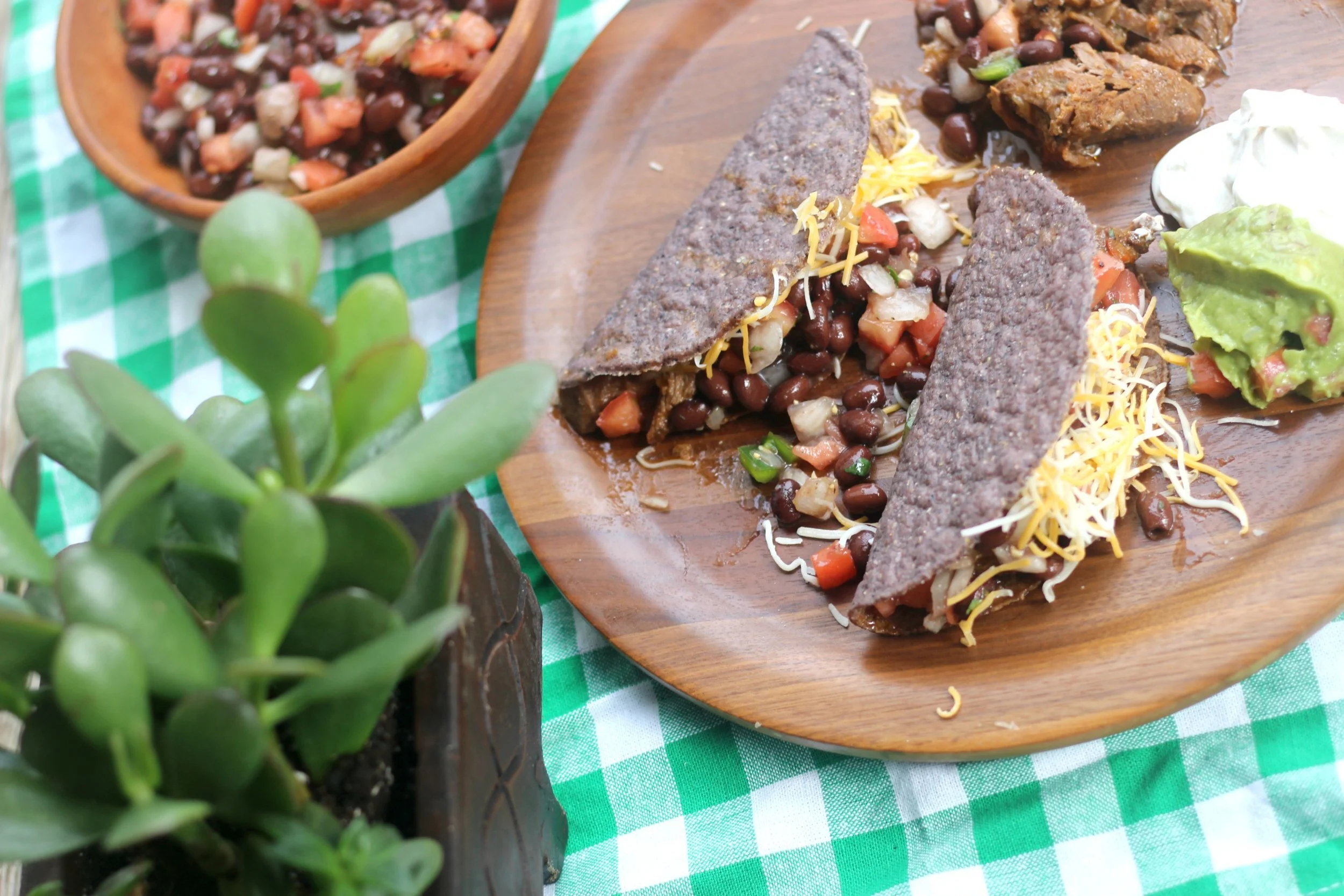 I love making this type of pulled beef in the crockpot (it's kind of similar to my favorite crockpot roast beef) because it is the most flavorful, melt in your mouth, beef that you can imagine. While the beef slow cooks all day, it can slowly soak up all the spices, juices, and amazing flavors. By the time it's done cooking it will easily fall apart when you start shredding it. The super simple and fresh salsa adds the perfect cool and bright topping to the warm beef. I went ahead and piled my tacos up with ALL the toppings, because tacos just are not meant to be anything but completely overflowing!