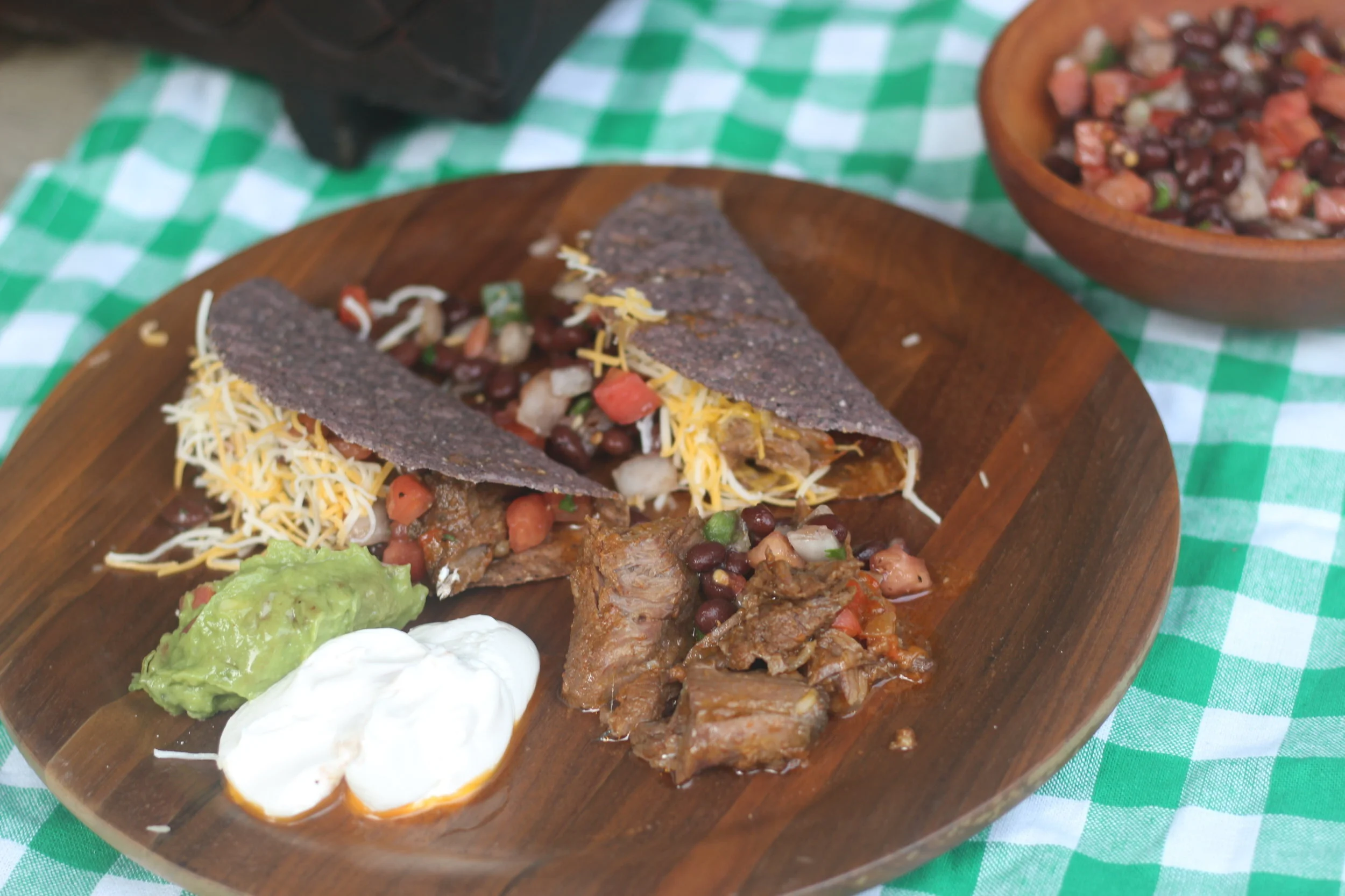 7. Assemble your tacos with the beef, salsa, and toppings of your choice!