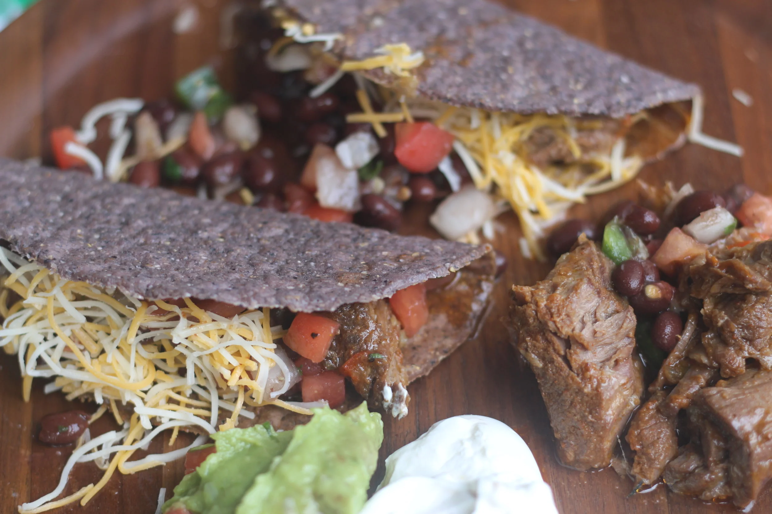 Let's celebrate taco tuesday with one of my new favorite (and super easy) recipes! I just tried making this crockpot pulled beef for the first time last week and it was a huge hit in our house. My husband still has not stopped talking about it and requested that we have it again the next day (...and the next). The best part about this recipe is that you can customize it according to your diet- cutting carbs? Just serve it over lettuce as a taco salad and eliminate the shells. You can also serve it on lettuce wraps for a little crunch! Another option is to skip the lettuce altogether and just make a layered taco bowl. If you are avoiding dairy, you can just eliminate the sour cream and cheese toppings and stick to salsa and fresh guacamole. Whatever option you choose, I can guarantee putting together taco night doesn't get much easier than this. Here's what you need to get started: