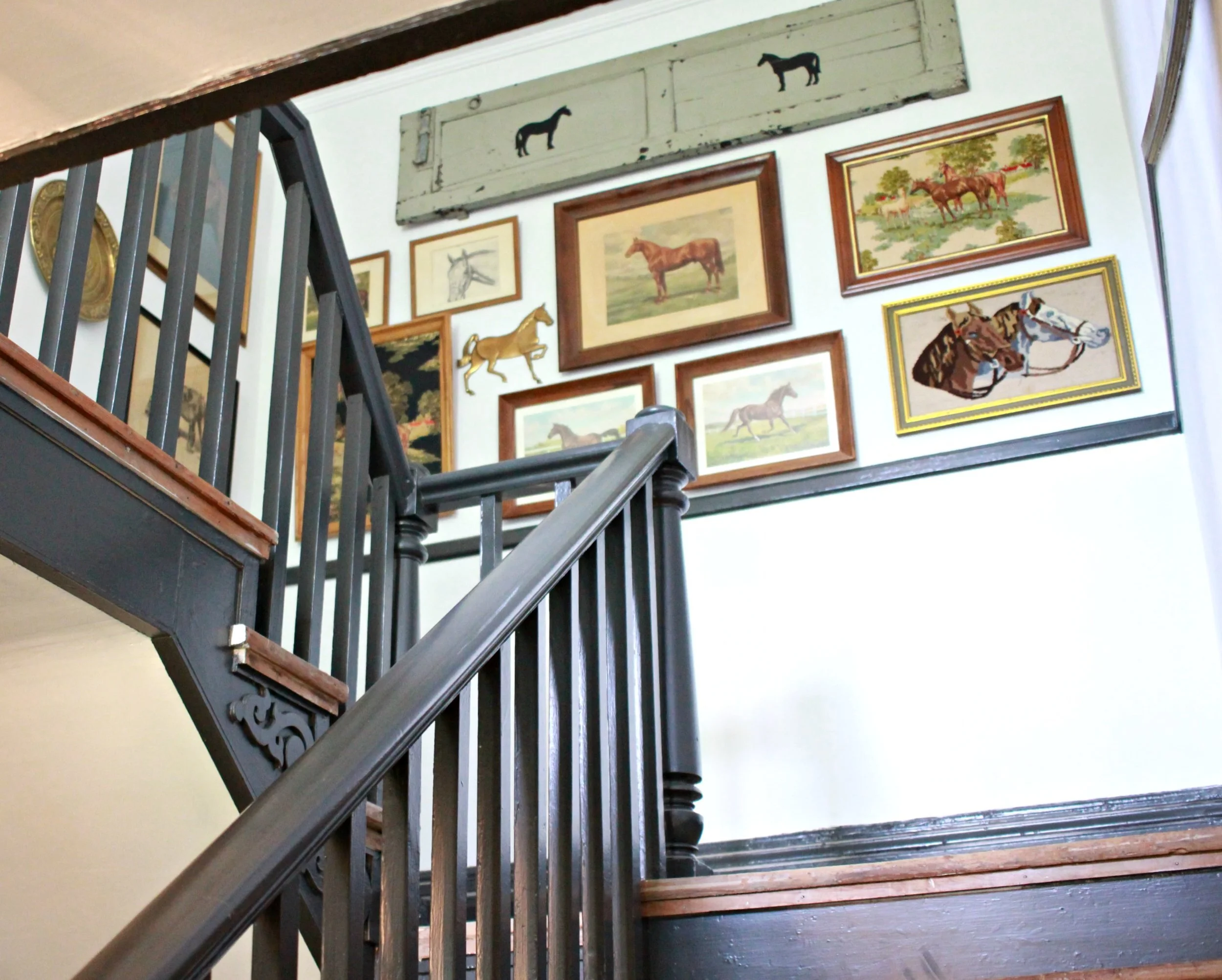 My favorite part of the entryway is the equestrian-themed gallery wall I created. I have such a large collection of vintage horse prints and I wanted to make a statement wall by clustering them all together. It's the perfect focal point for this entryway and really sets the tone for the overall style of the entire house.