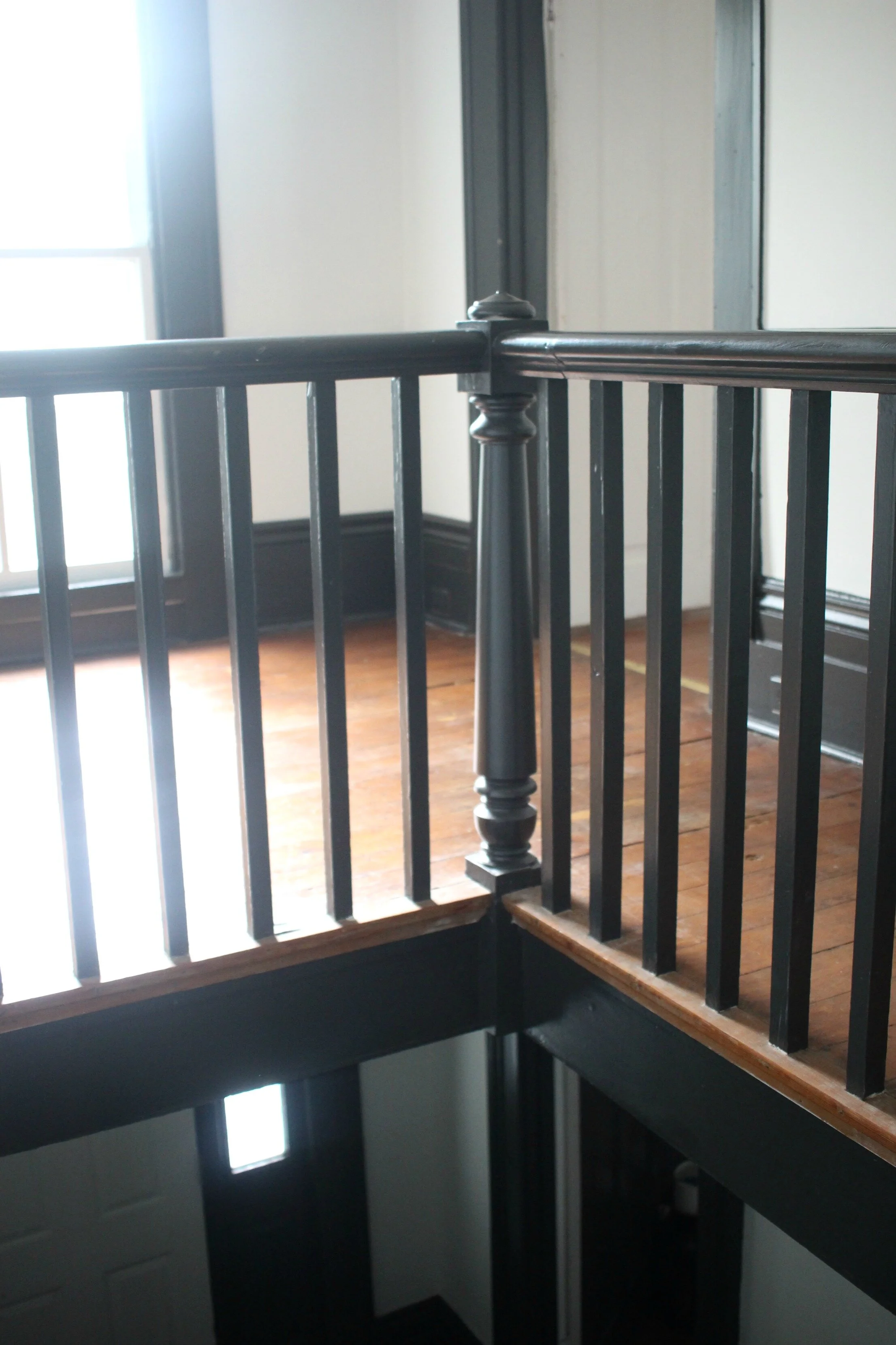 This area both upstairs and downstairs has original wood floors. They are in rough shape but I love them anyways! I think they add so much character to the space and I would rather have old beat-up floors than cheap-looking new wood floors any day!