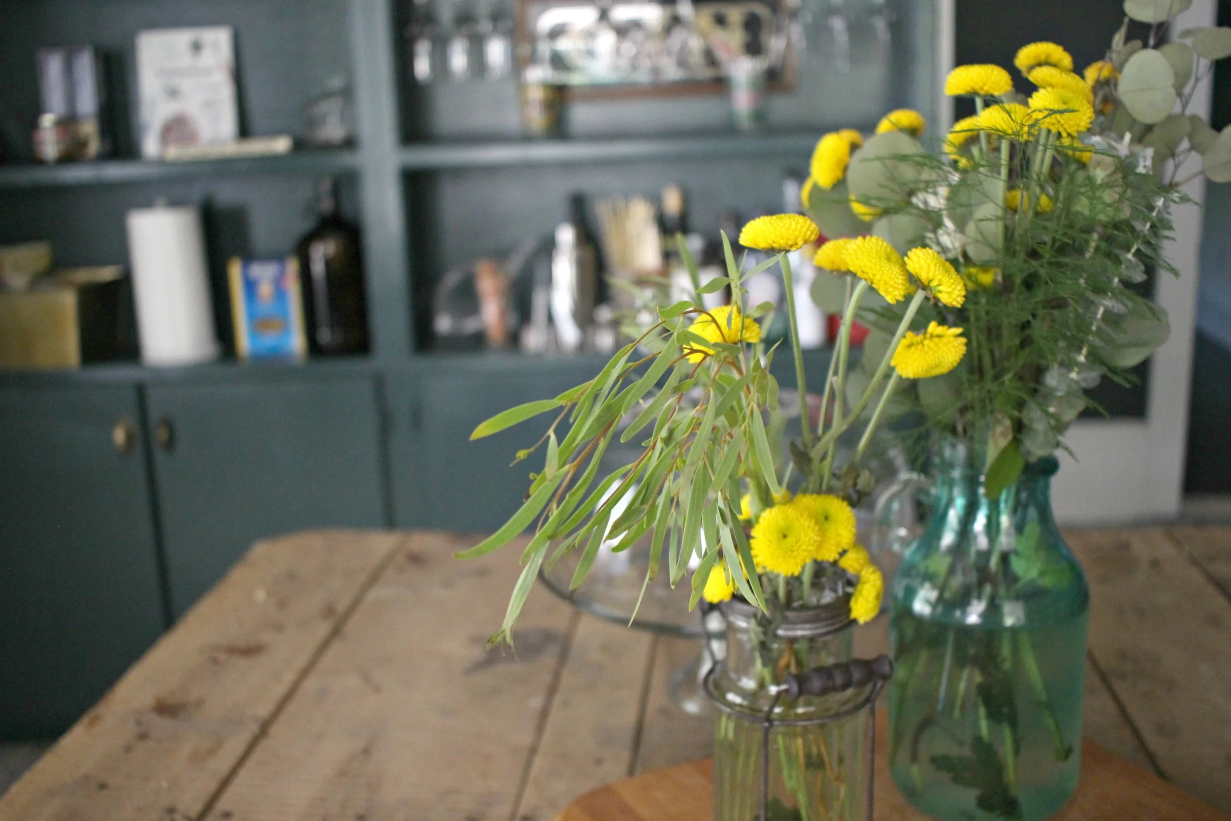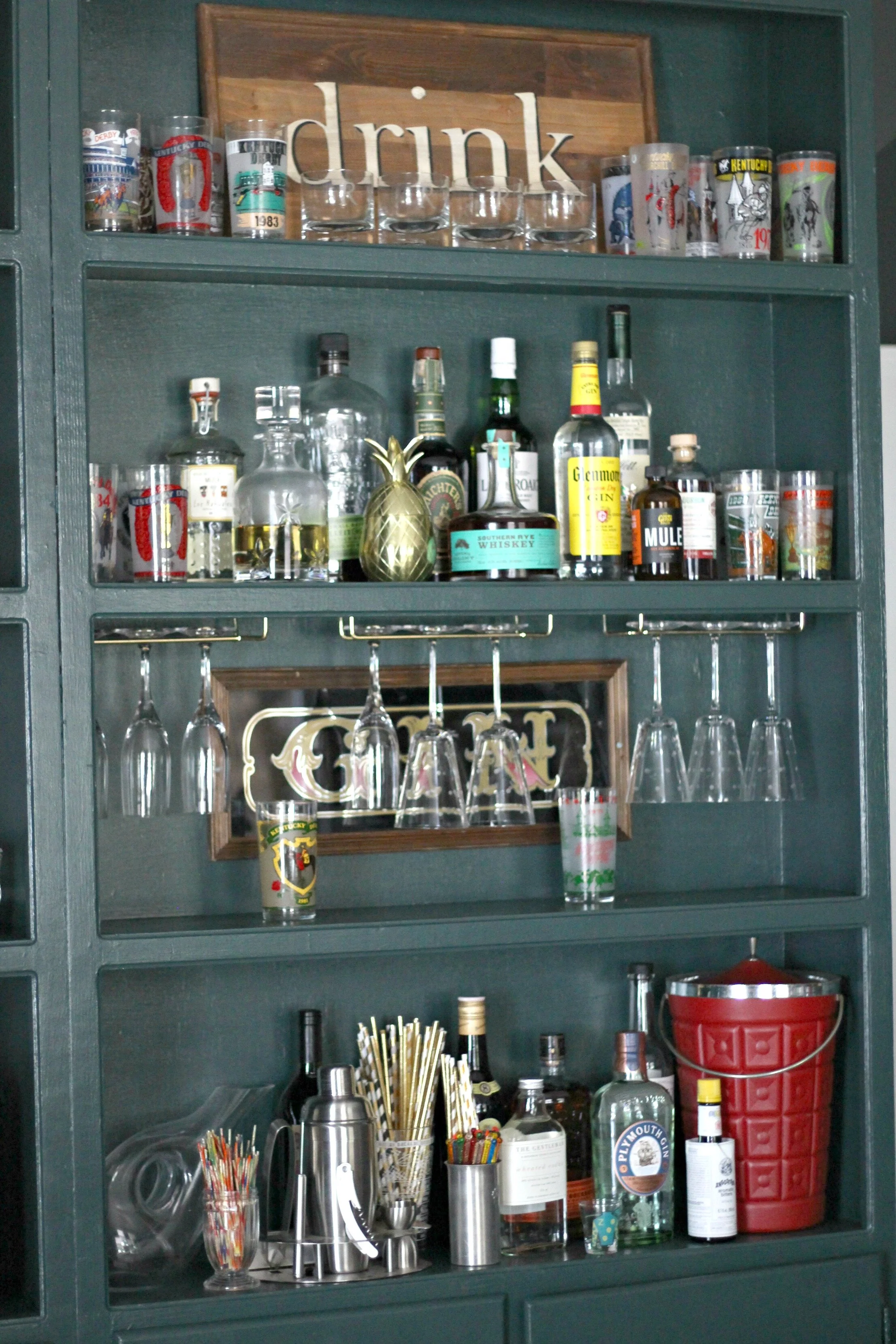 We've set one side of the shelves up as a bar/drink storage and the other side for food storage. I still have a lot of space to fill on these but I'm having fun styling them (and looking for unnecessary "cute" food items to display on all the shelves).