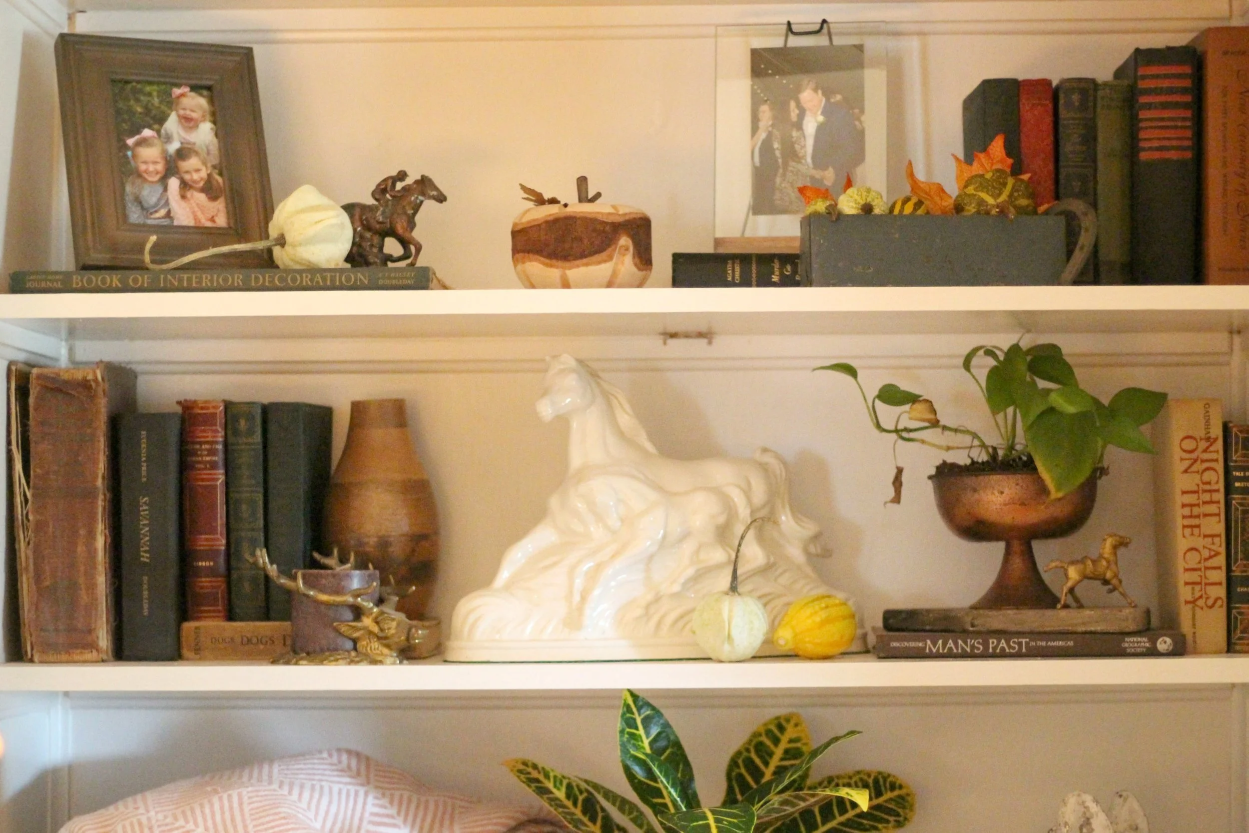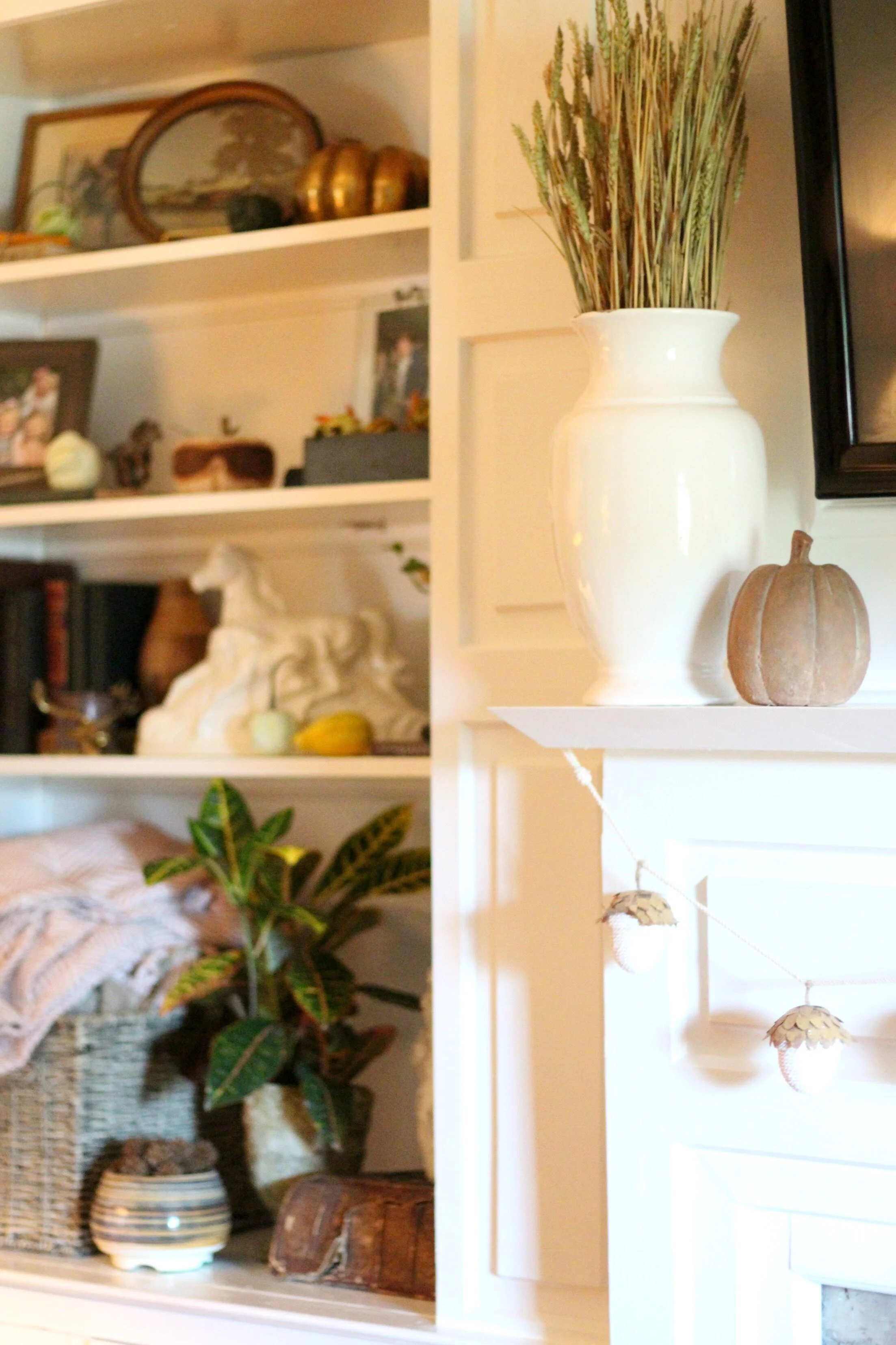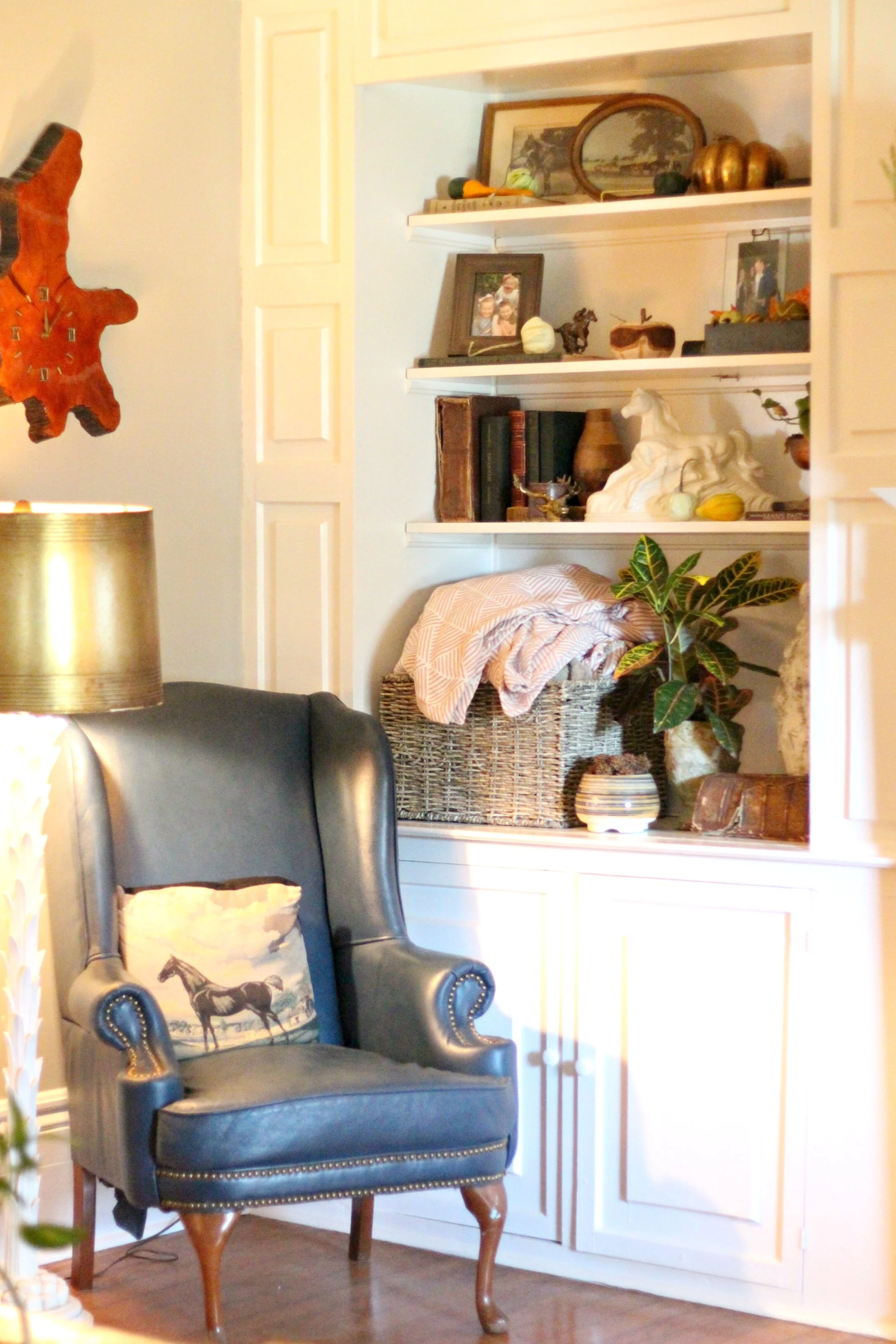 It's officially fall at our house and the weather outside finally feels like autumn too. After a busy summer of moving and finishing up our renovation, I could not wait to start decorating for the first holiday season in our new home! I may have started a little early (as soon as September 1st hit!), but I just love the extra coziness that fall decor adds to a home and I couldn't wait any longer. As always I collect things throughout the year for my seasonal decorations as I'm out thrifting and shopping for the store so that I can have a good amount of decor without spending a ton of money! I also can't help but grab a few things at Target every year because they have the cutest seasonal home decor (and always the best garland and wreaths!). Last year I gave a rundown of my entire seasonal decorating process with tips and tricks (including storage, shopping, and more) that you can check out here. The first room up on this year's fall home tour is the living room, which should always be the coziest and most comfortable room of the house! Our living room is a mixture of traditional and rustic elements with lots of texture and equestrian themed trinkets and pictures. I love that the neutral color scheme and overall style allows me to easily mix in my fall decor without having to change a thing! I always start by adding in a few pops of fall color: fall wreaths, knit pillows, some bright plants, and colorful gourds and pumpkins. But sometimes the most simple and natural decorations make the biggest impact, like my vases of wheat bundles on the mantle and the neutral pinecone garland. Whatever your decor style, I hope you can get some ideas about how to incorporate a little fall coziness into your own home. I've linked all my decorations and favorite items below for you to shop (have questions about something that's not linked- just ask!).
