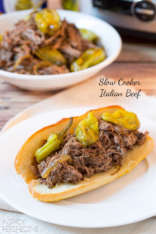 Another super easy recipe that makes the most flavorful and juicy Italian beef- perfect for sandwiches or on its own. I also add a bit of balsamic vinegar for a little more acidity!